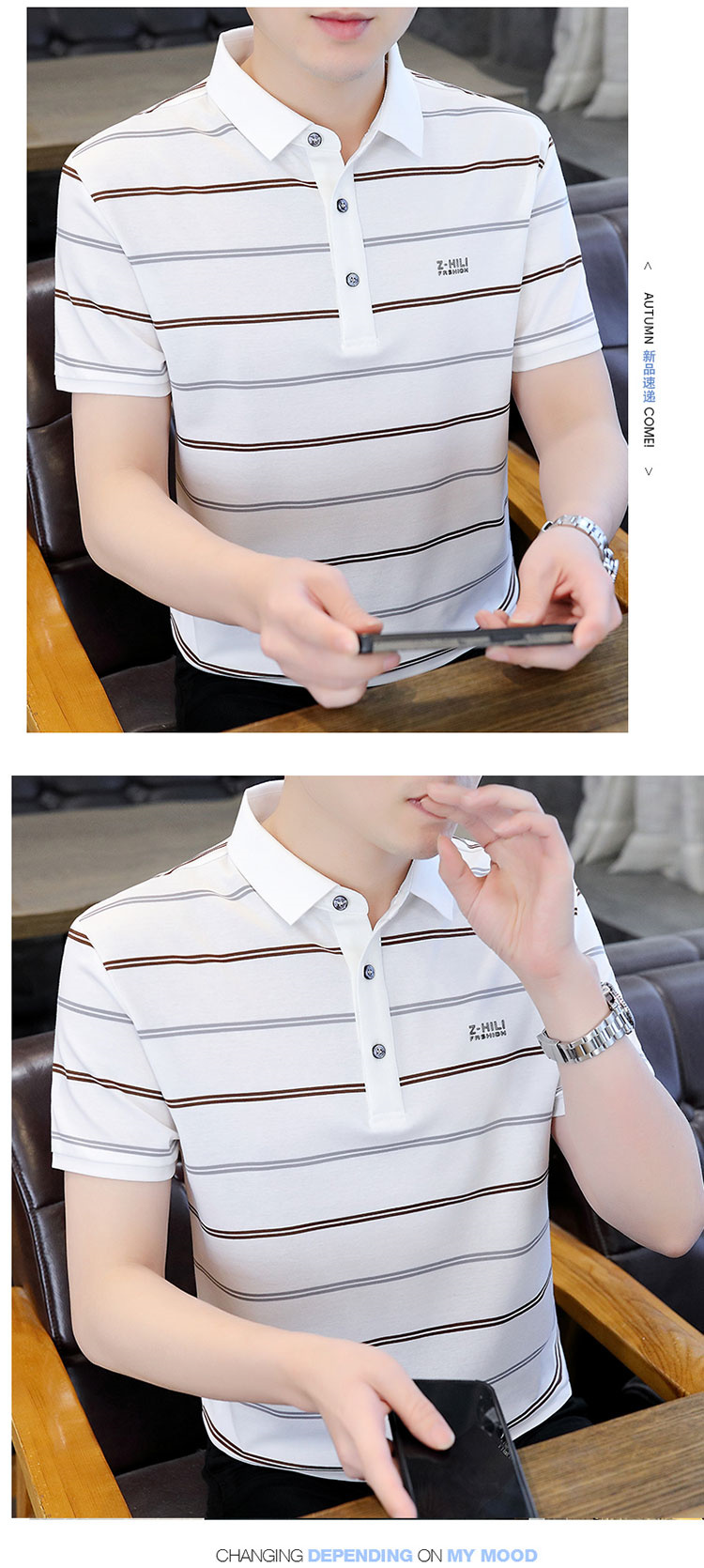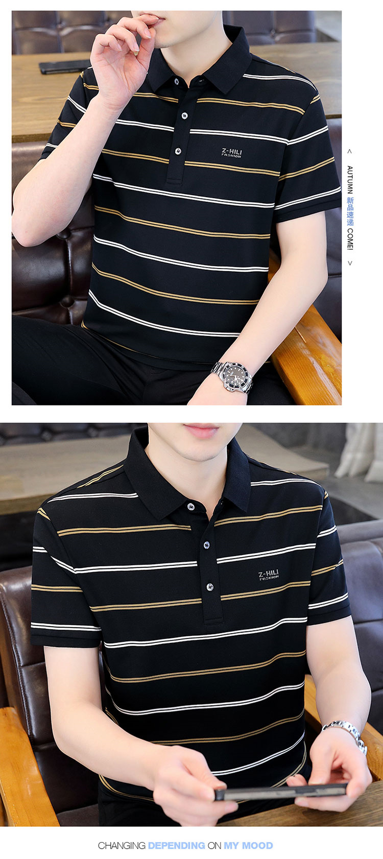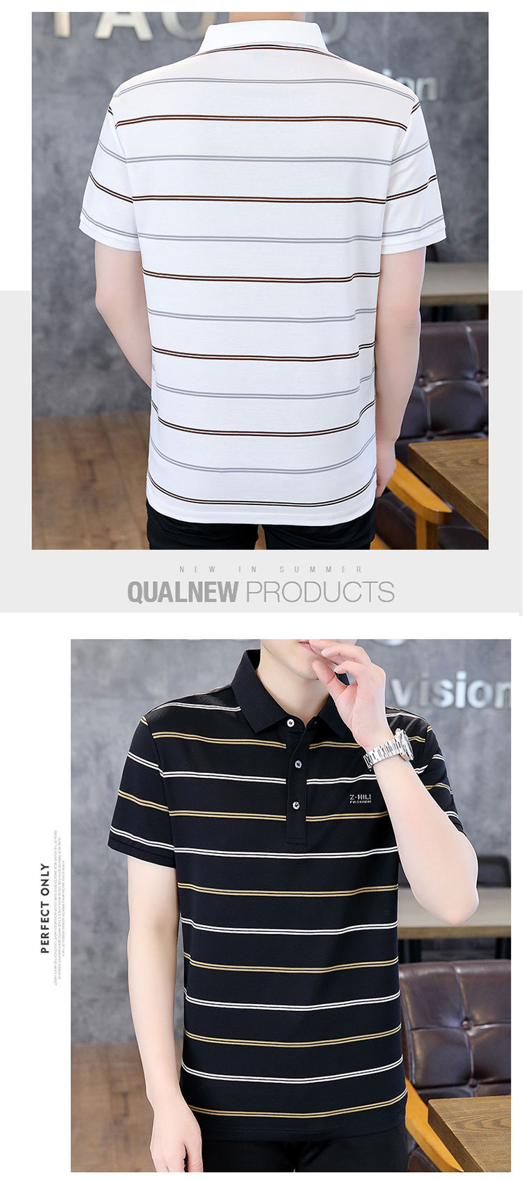 珠地丝光棉男士polo衫2024夏季高端商务衬衫领短袖t恤条纹上衣服