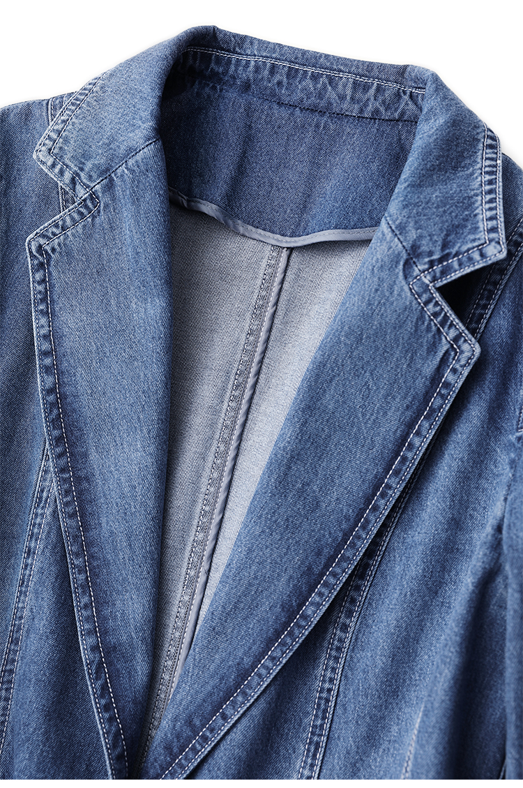 轻奢时尚水洗牛仔蓝 显瘦一粒扣牛仔西装薄款 通勤优雅西服外套女