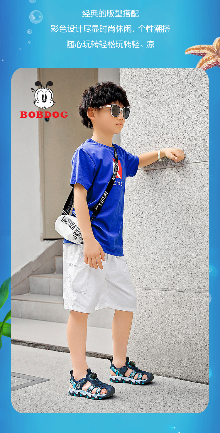 巴布豆女童包头凉鞋夏季2025新款儿童透气小女孩防滑防踢运动凉鞋