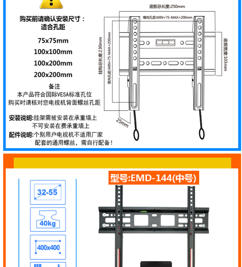 荣耀智慧屏X1-55/65寸电视挂架华为智慧屏V65/75平板液晶壁挂支架
