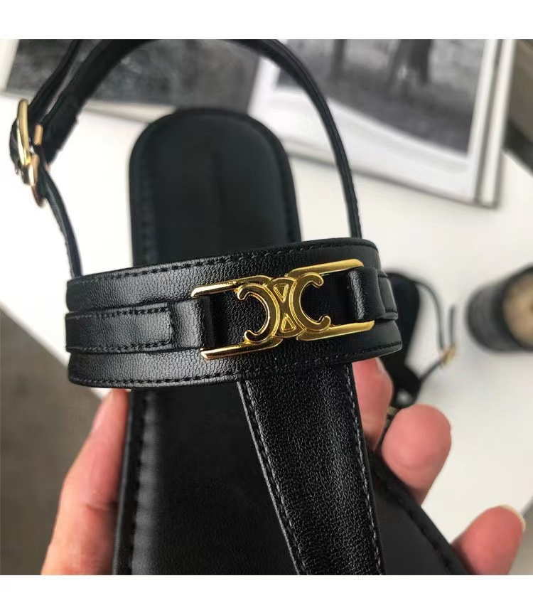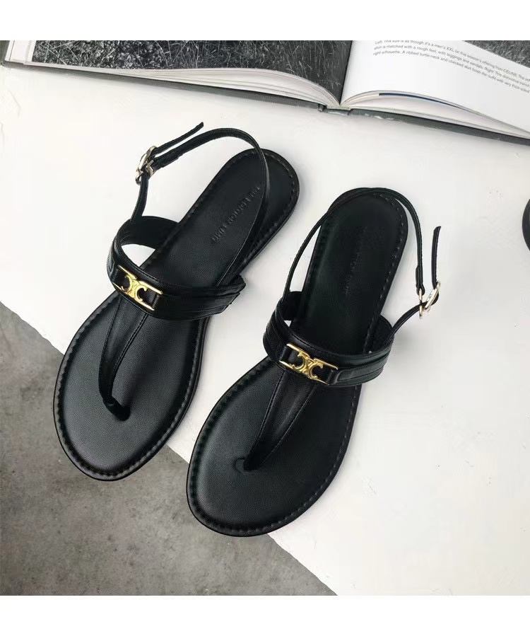 真皮2025夏新款夹脚趾平底小香风c家海边度假罗马时装休闲凉鞋女