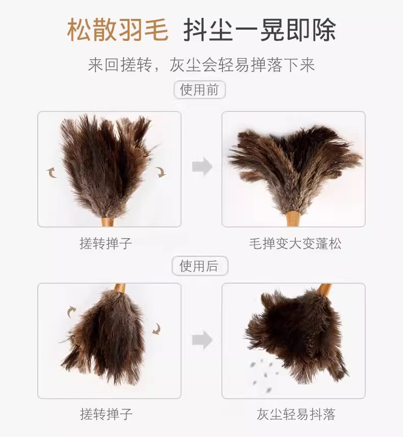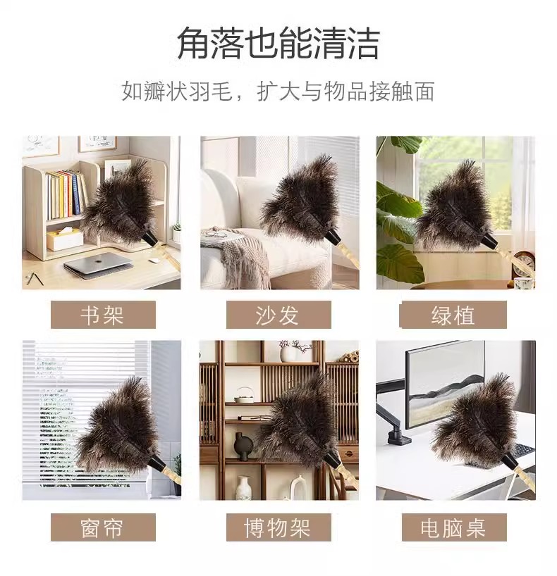 鸵鸟毛掸子家用除尘扫灰神器静电除尘密不掉毛鸡毛掸子静电除尘掸