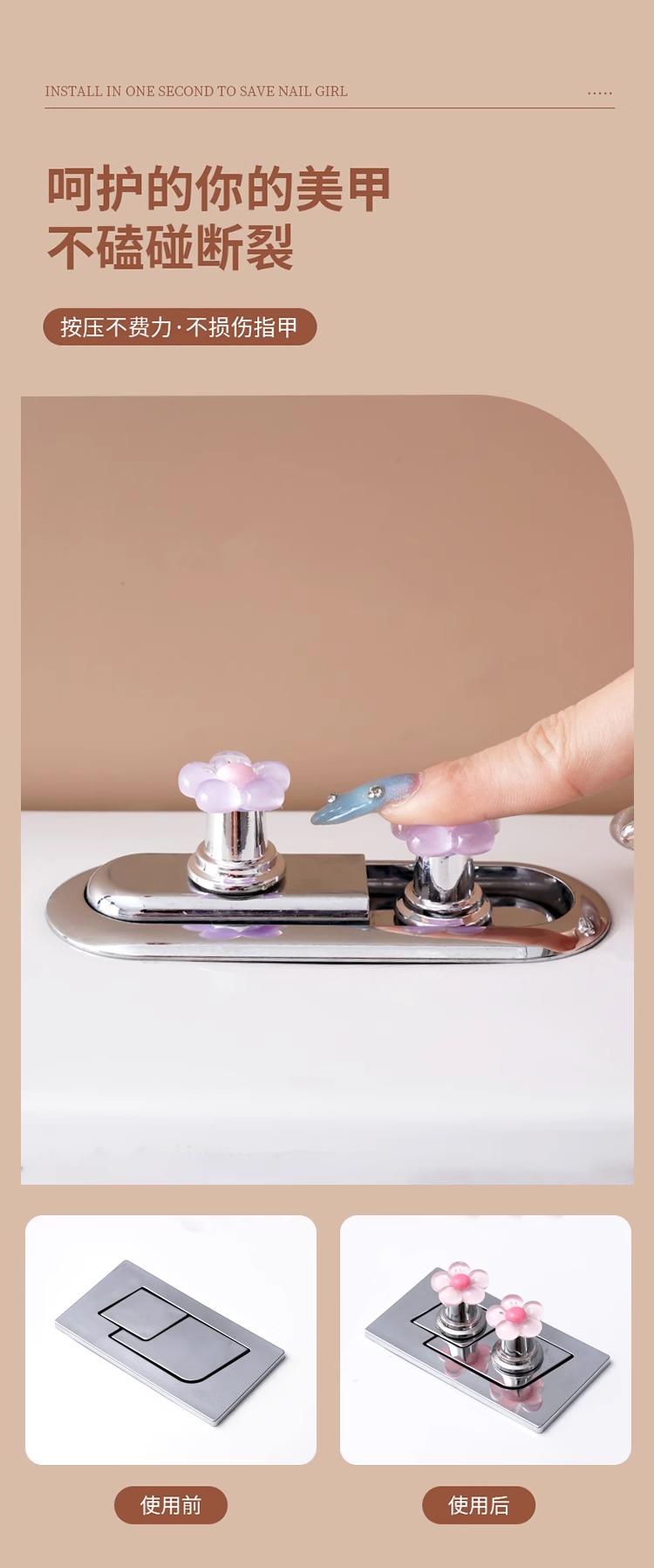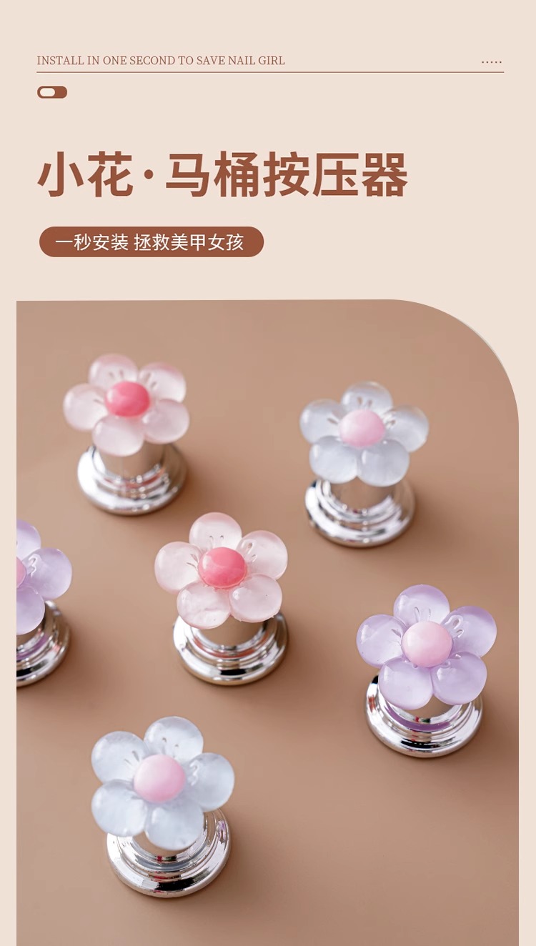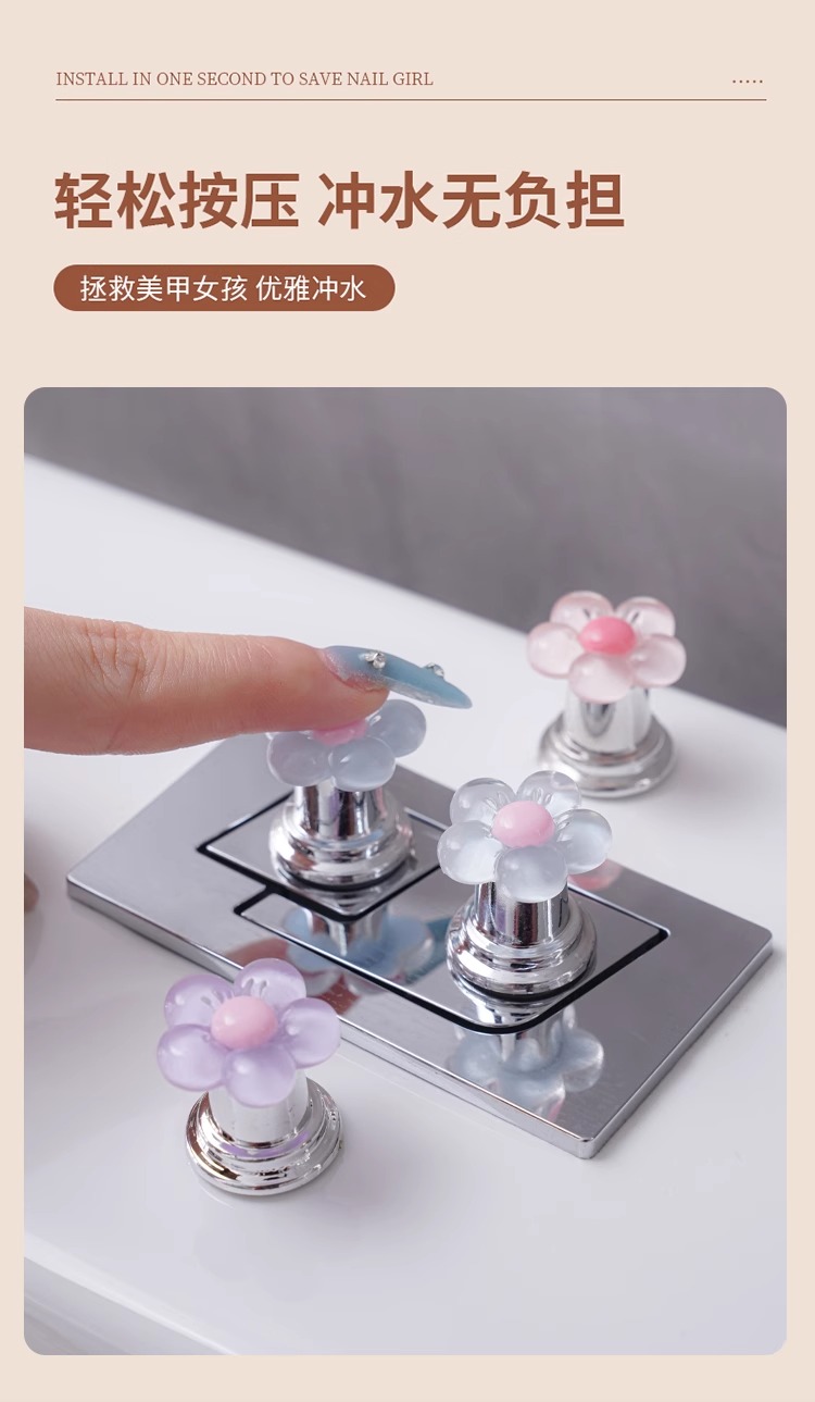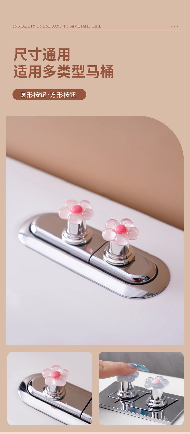 可爱花朵马桶按钮美甲专用卫生间水箱开关按键通用按压器提盖冲水
