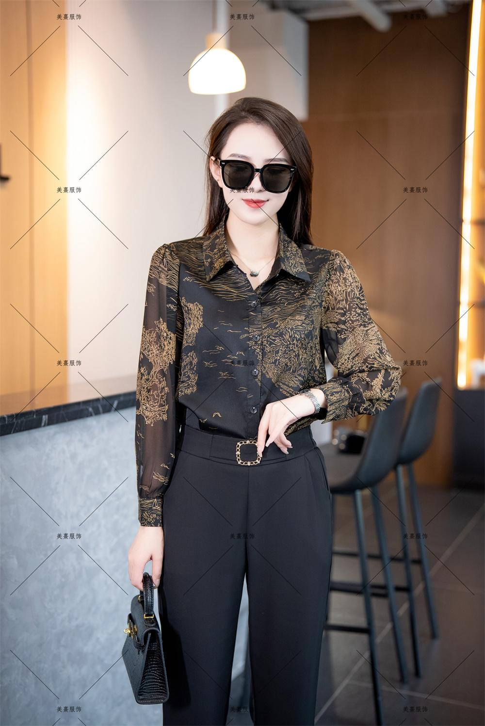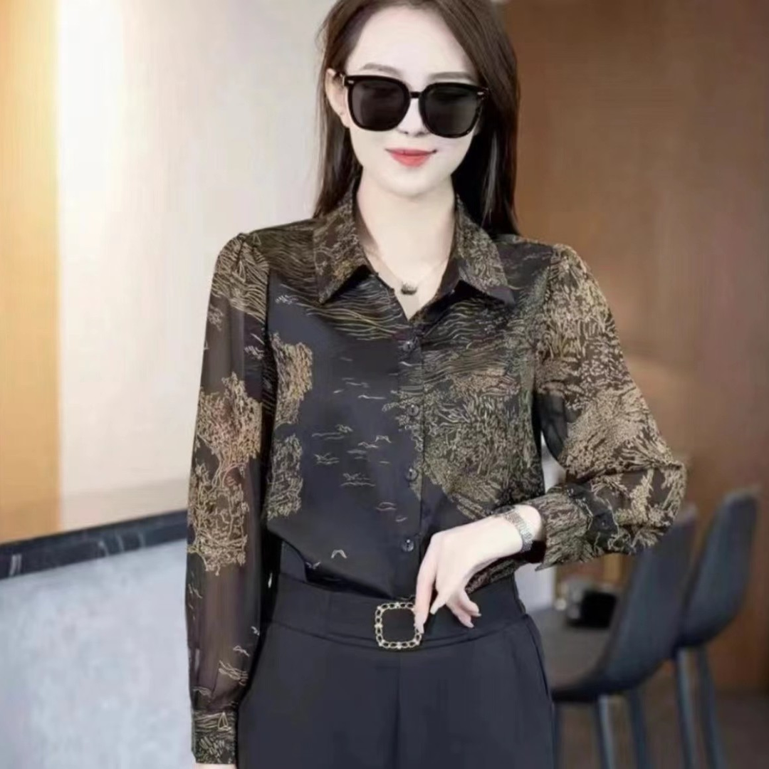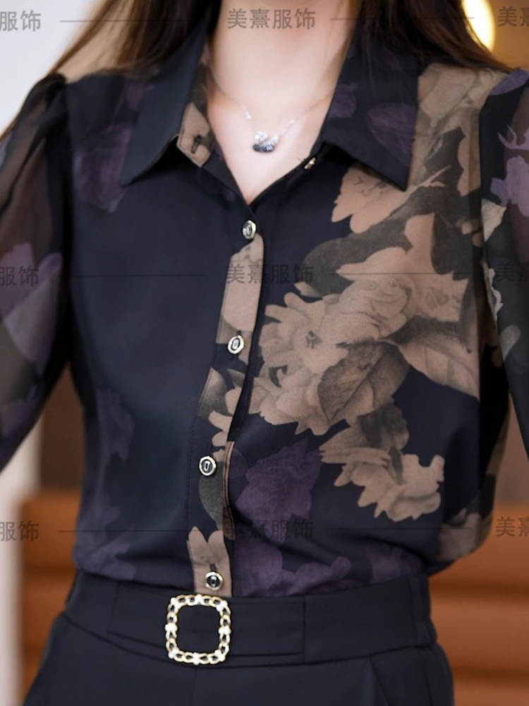 2025早春女装新款印花女士衬衫长袖上衣轻熟法式小众洋气质衬衣潮