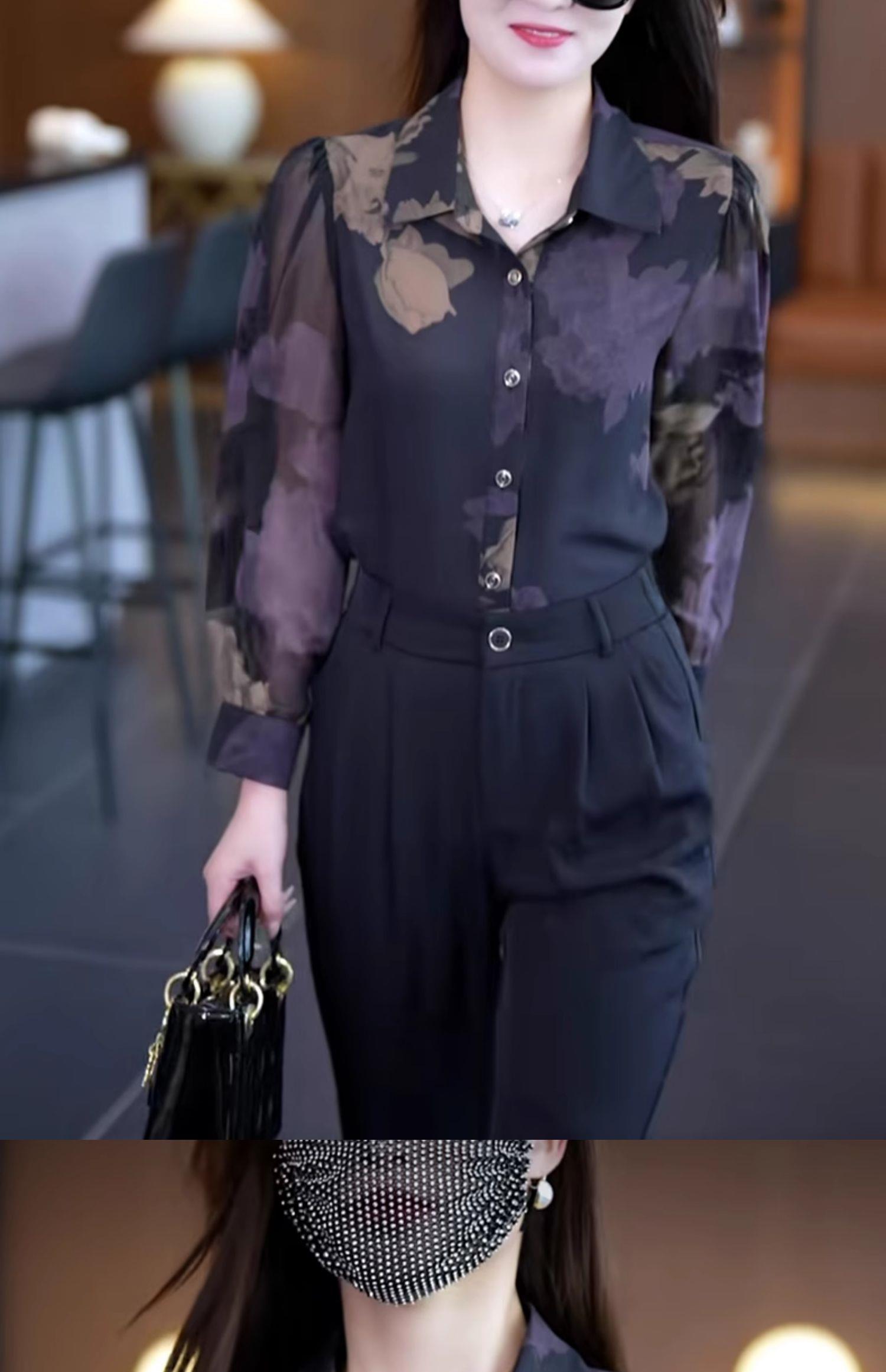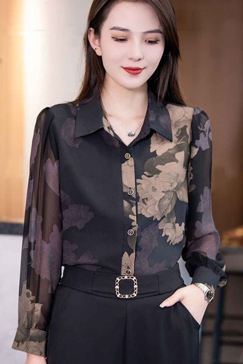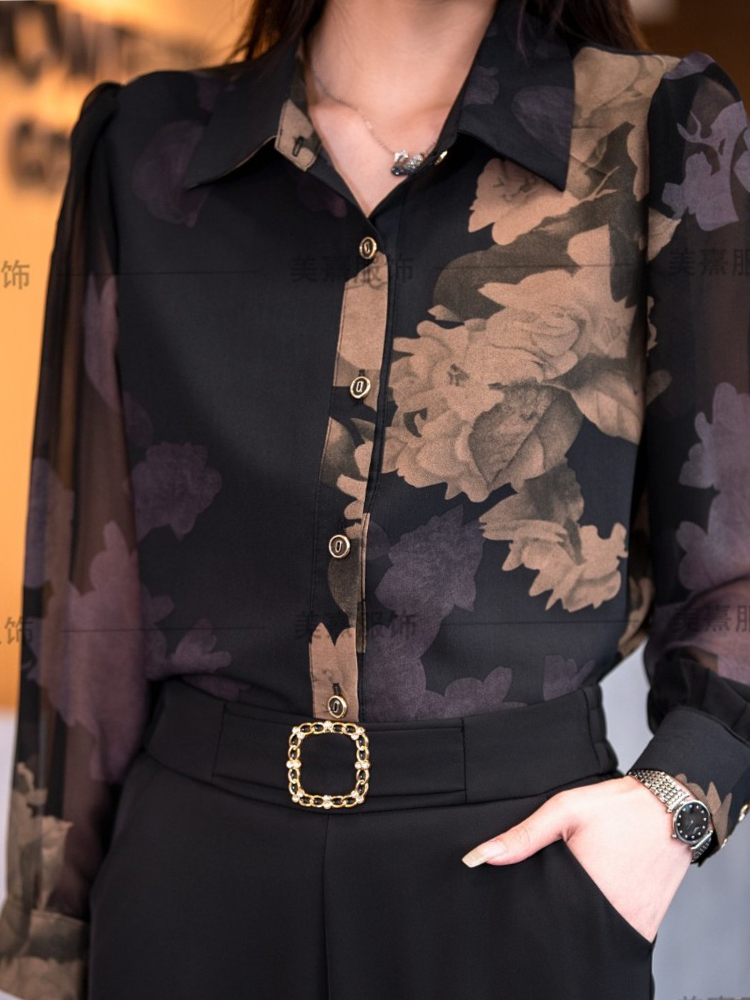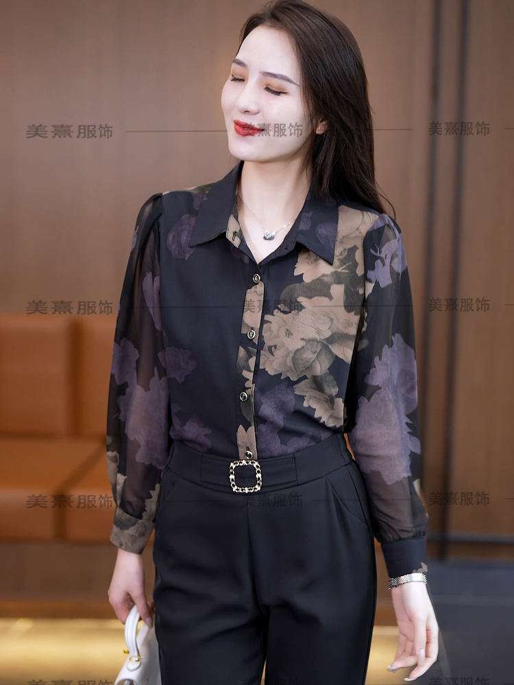 2025早春女装新款印花女士衬衫长袖上衣轻熟法式小众洋气质衬衣潮
