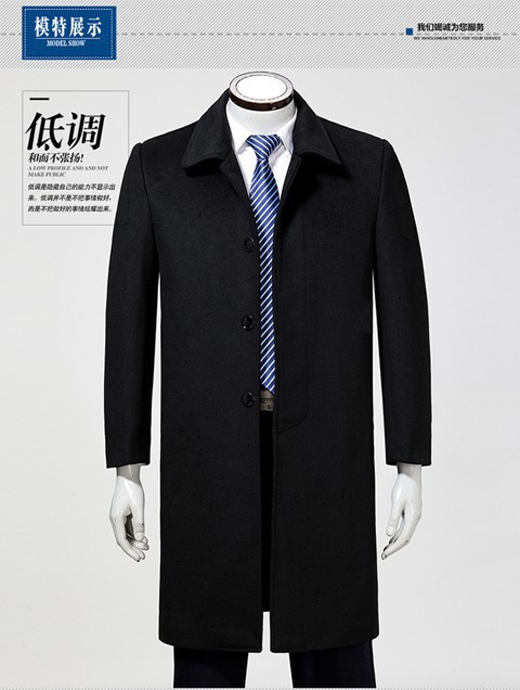 中年男士呢外套加厚秋冬款长款风衣过膝款商务休闲羊绒大衣