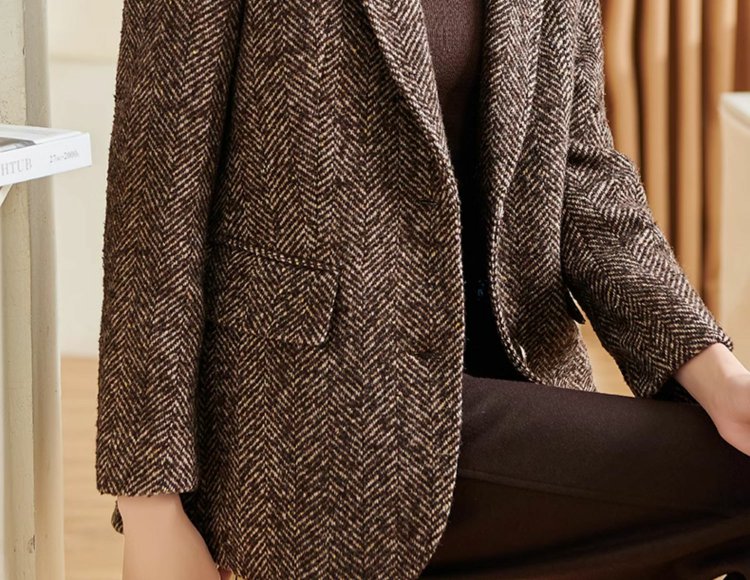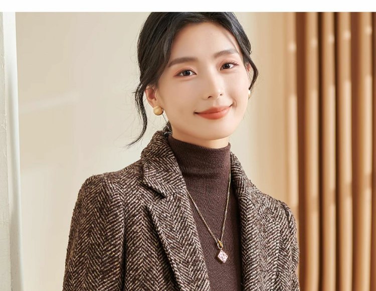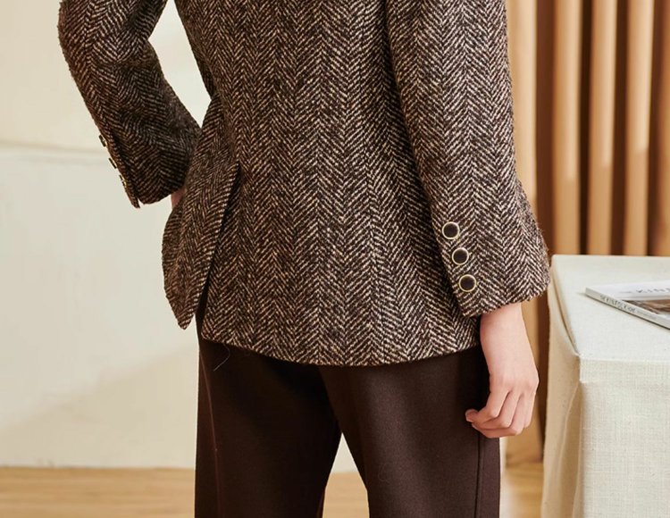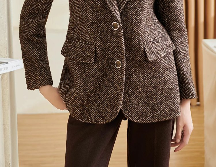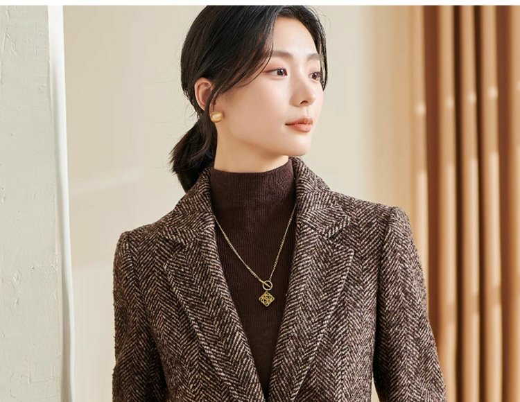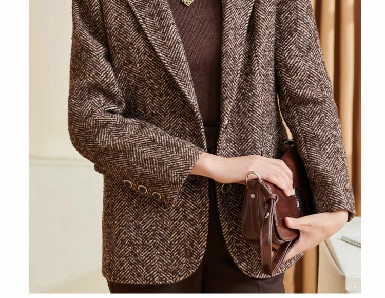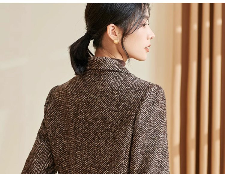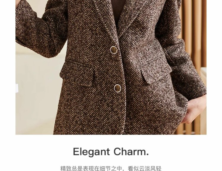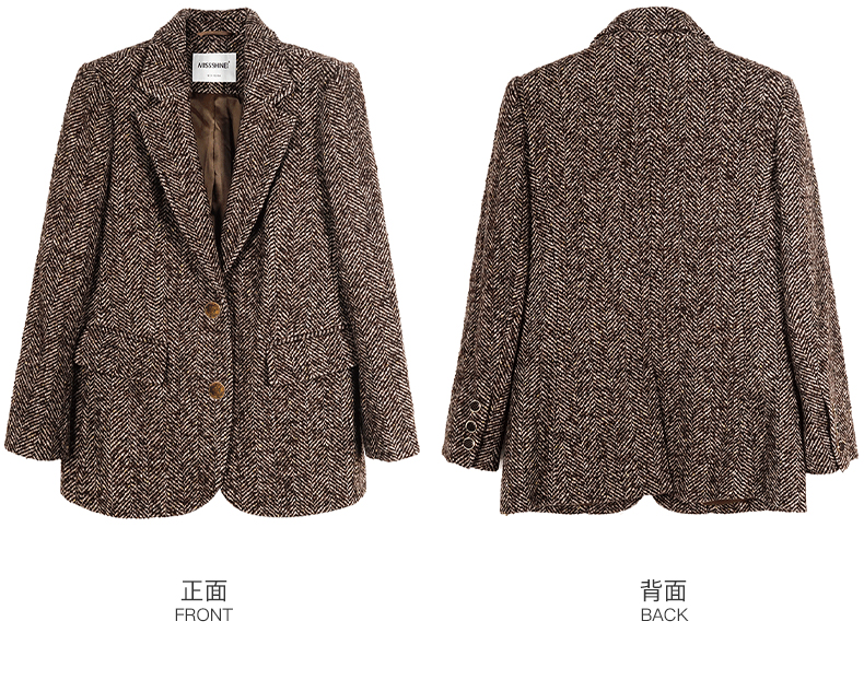 米思阳2023冬季新款轻奢质感西装外套混纺夹花羊毛呢子西服女3659