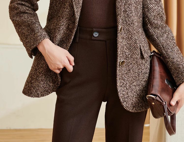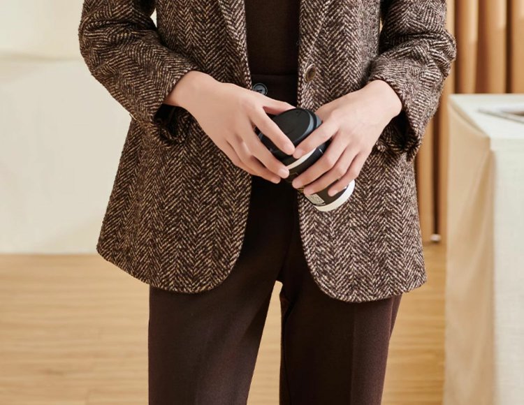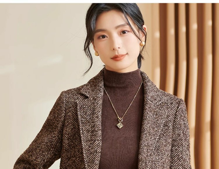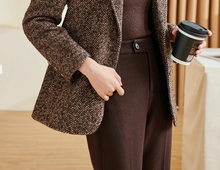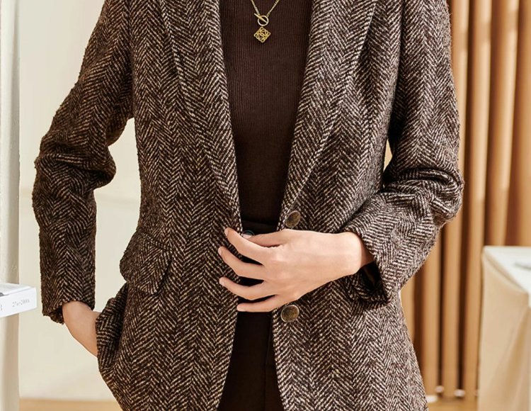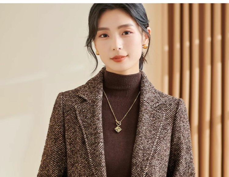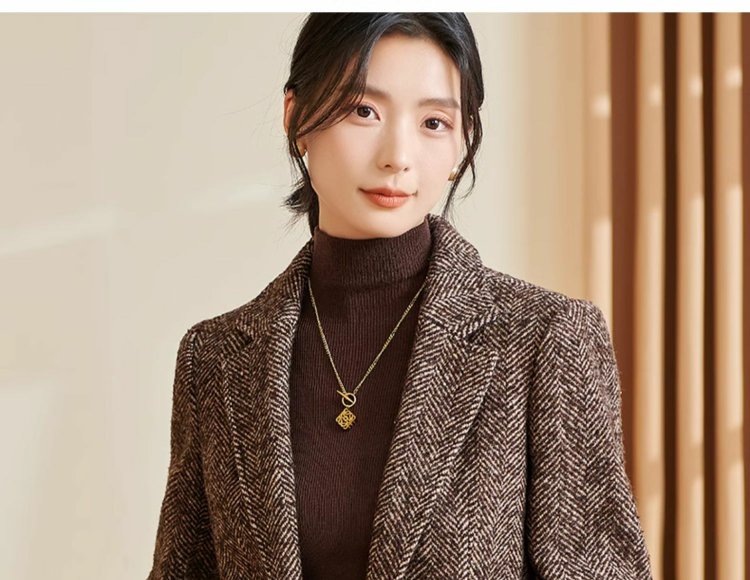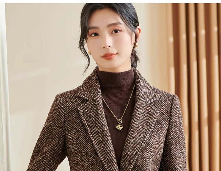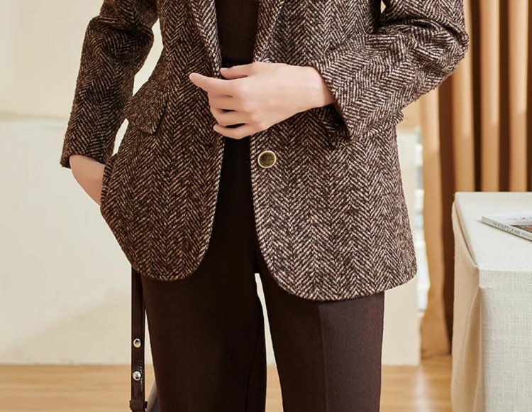米思阳2023冬季新款轻奢质感西装外套混纺夹花羊毛呢子西服女3659