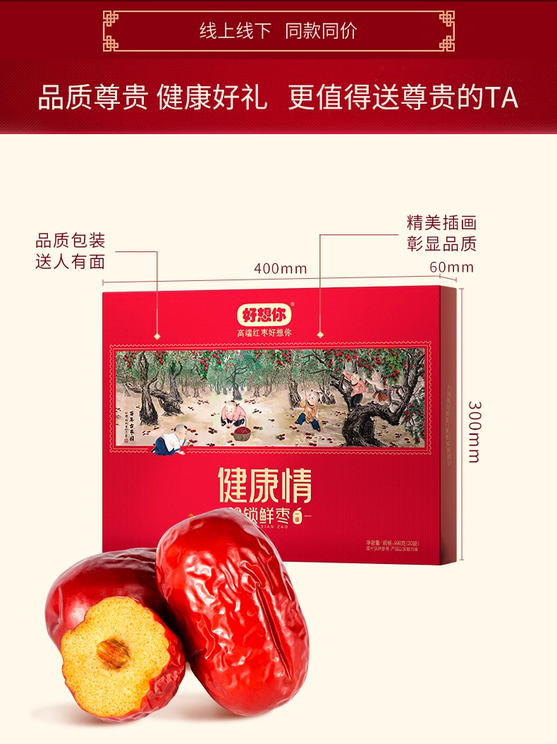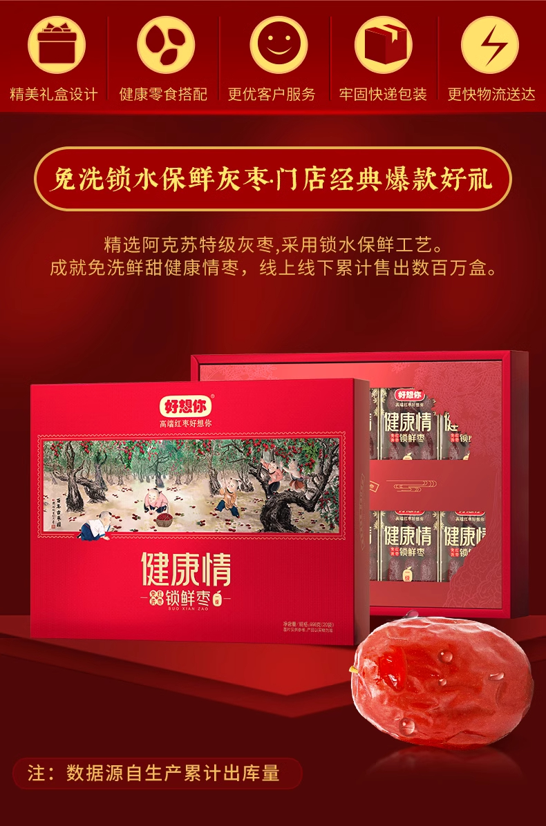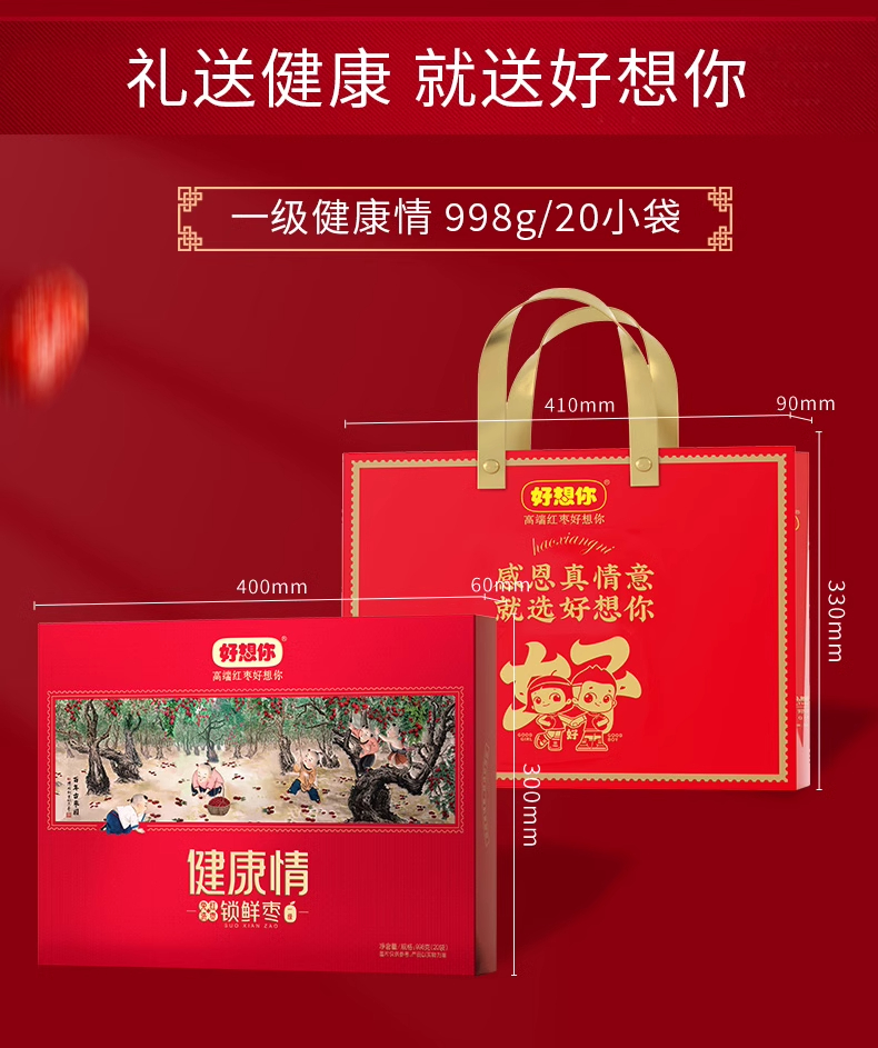 好想你红枣一级998g克健康情枣子锁鲜即食红枣独立包装礼品盒新枣