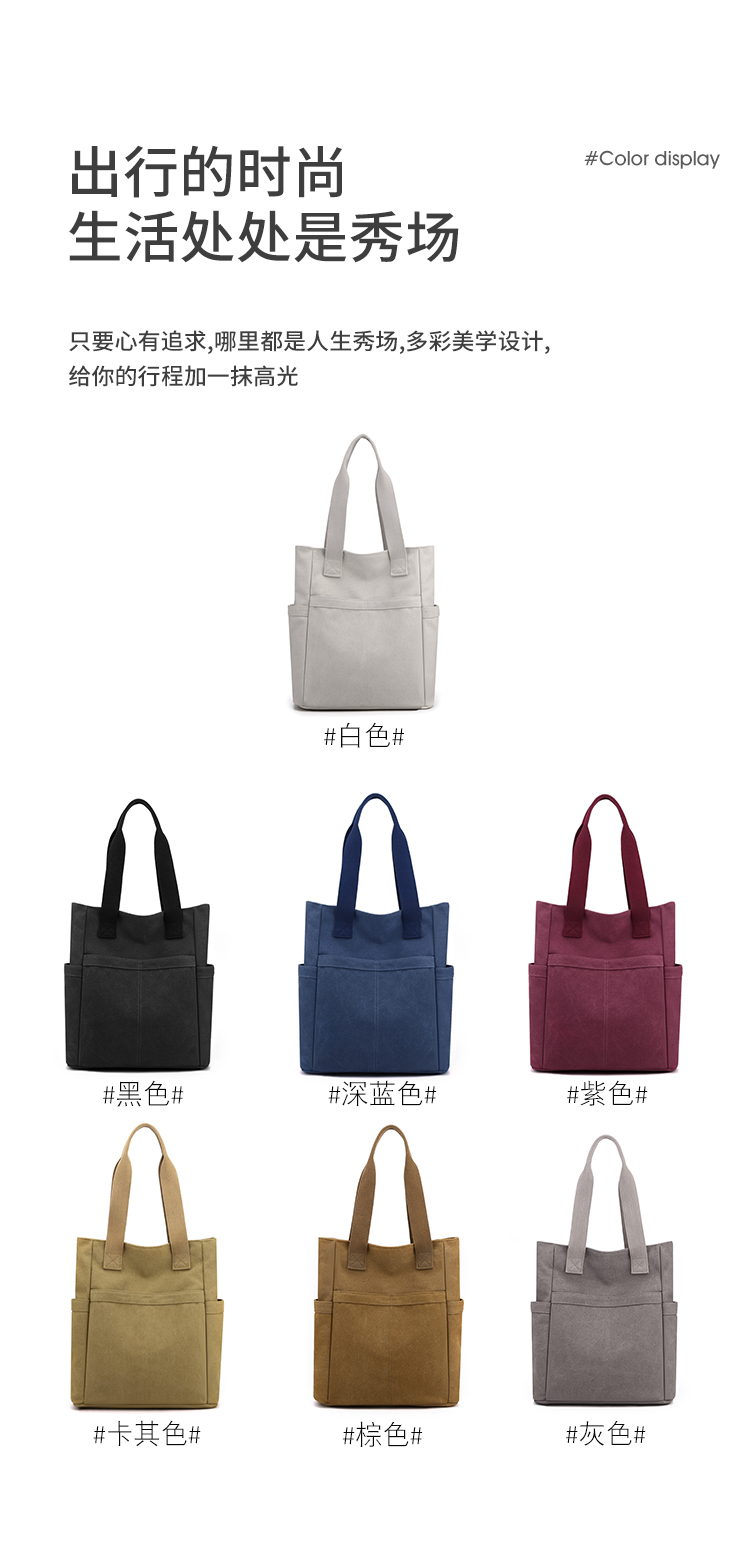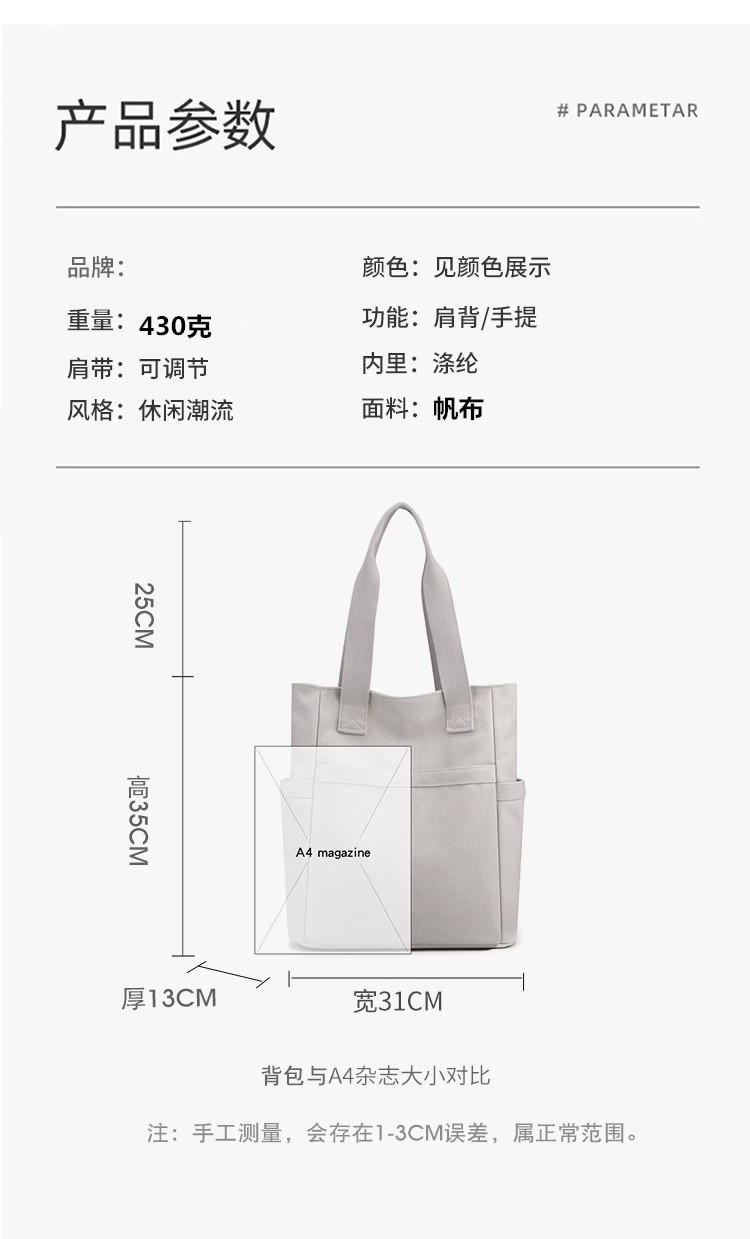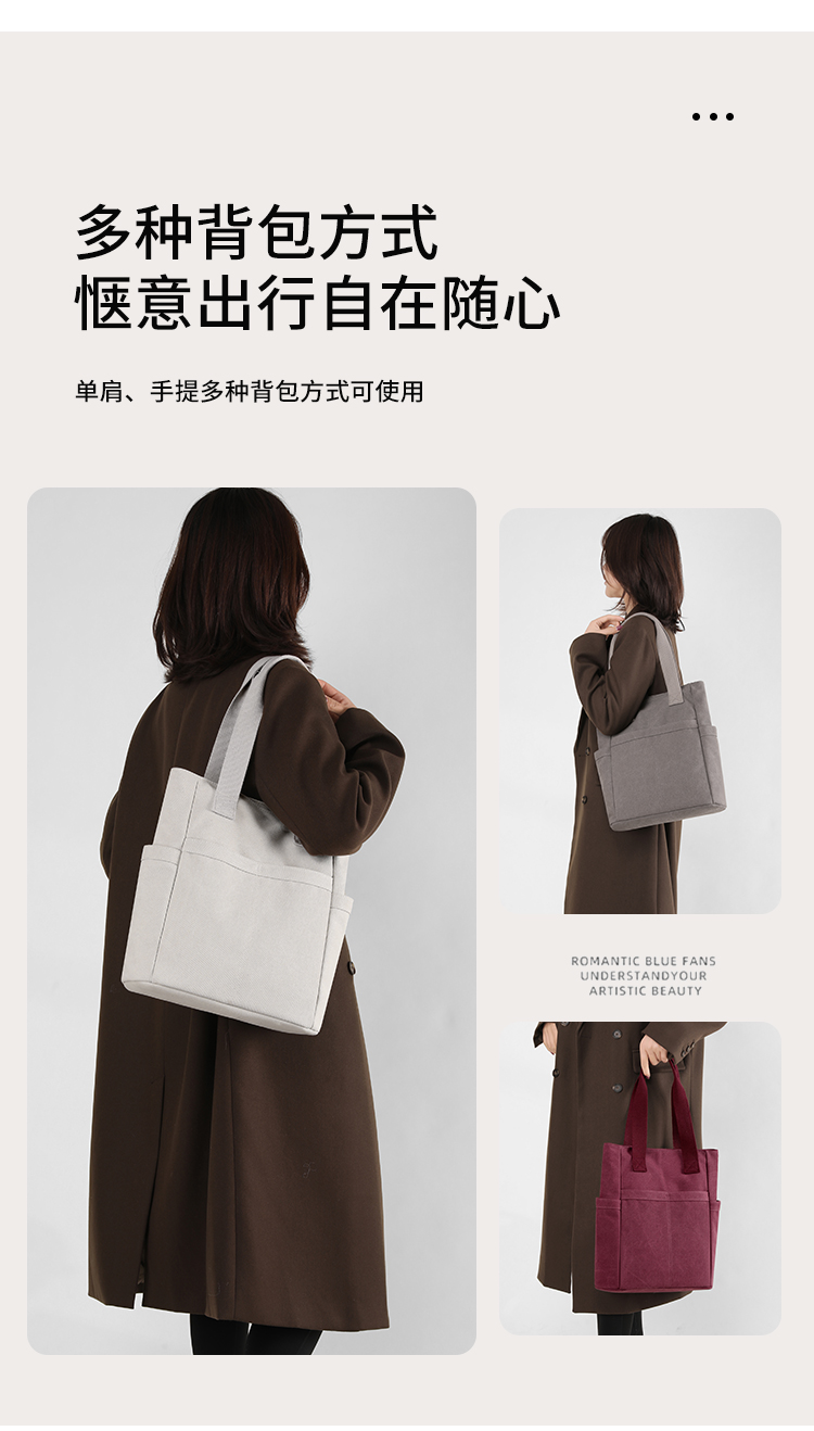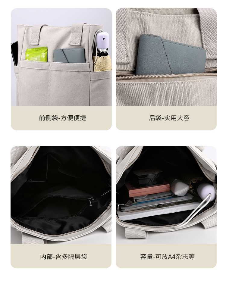 多隔层托特包女士电脑百搭休闲单肩包手提大容量上班通勤帆布包