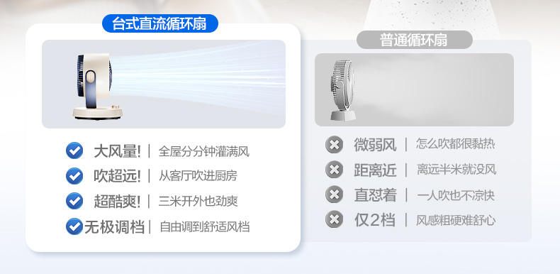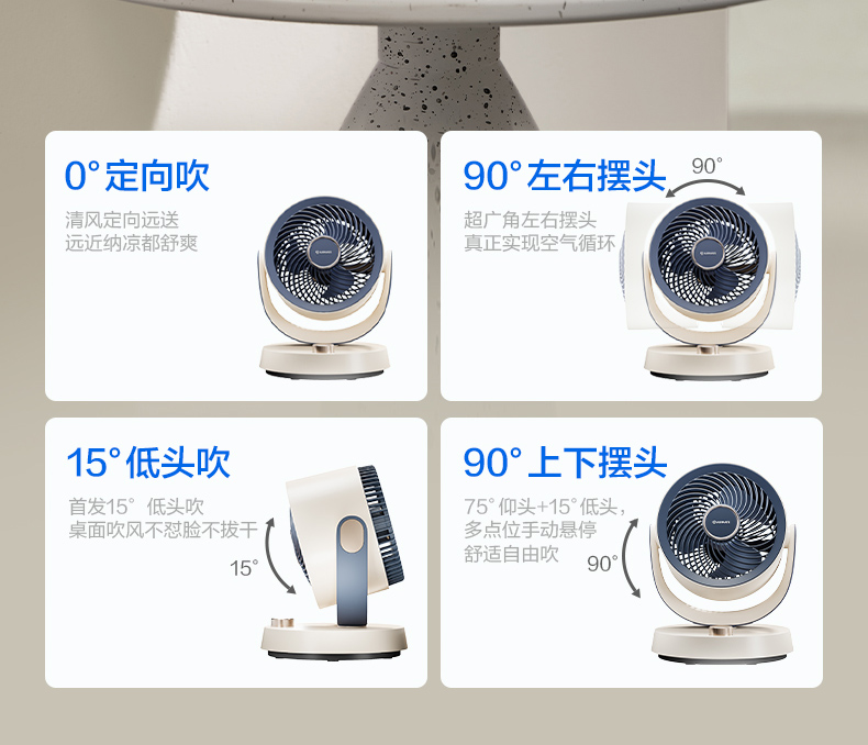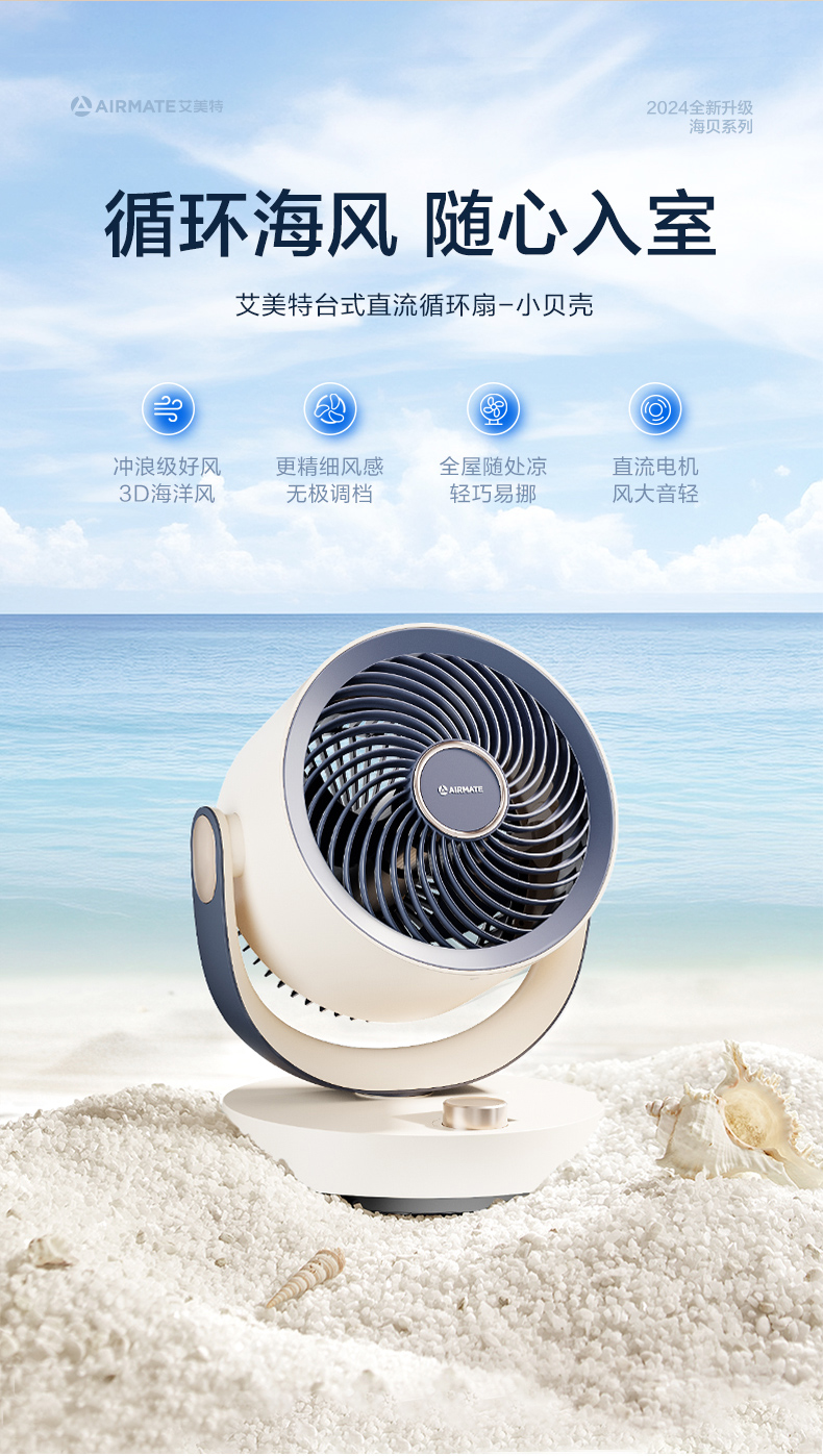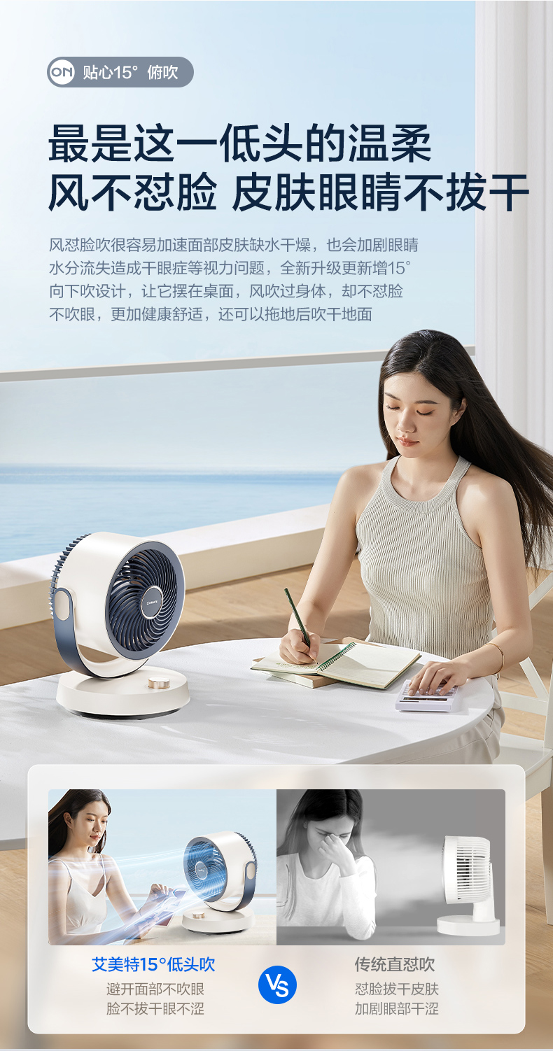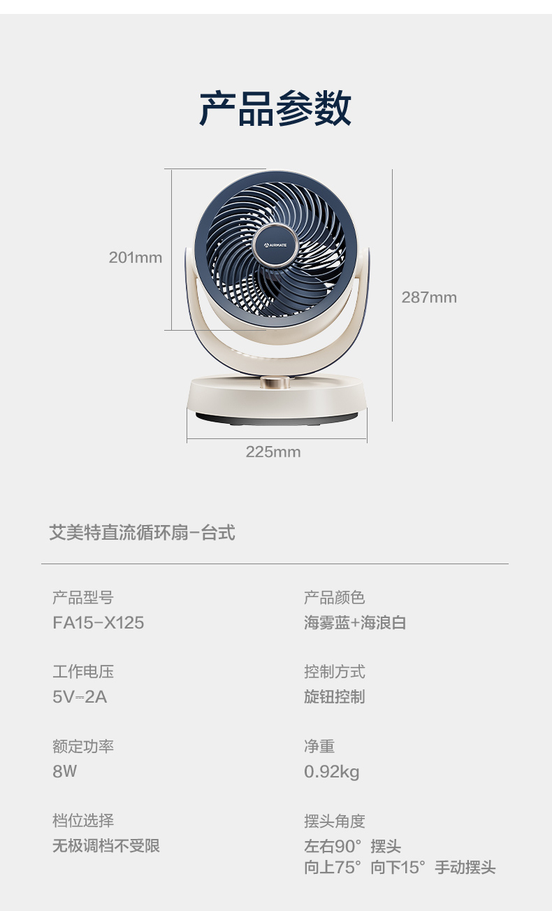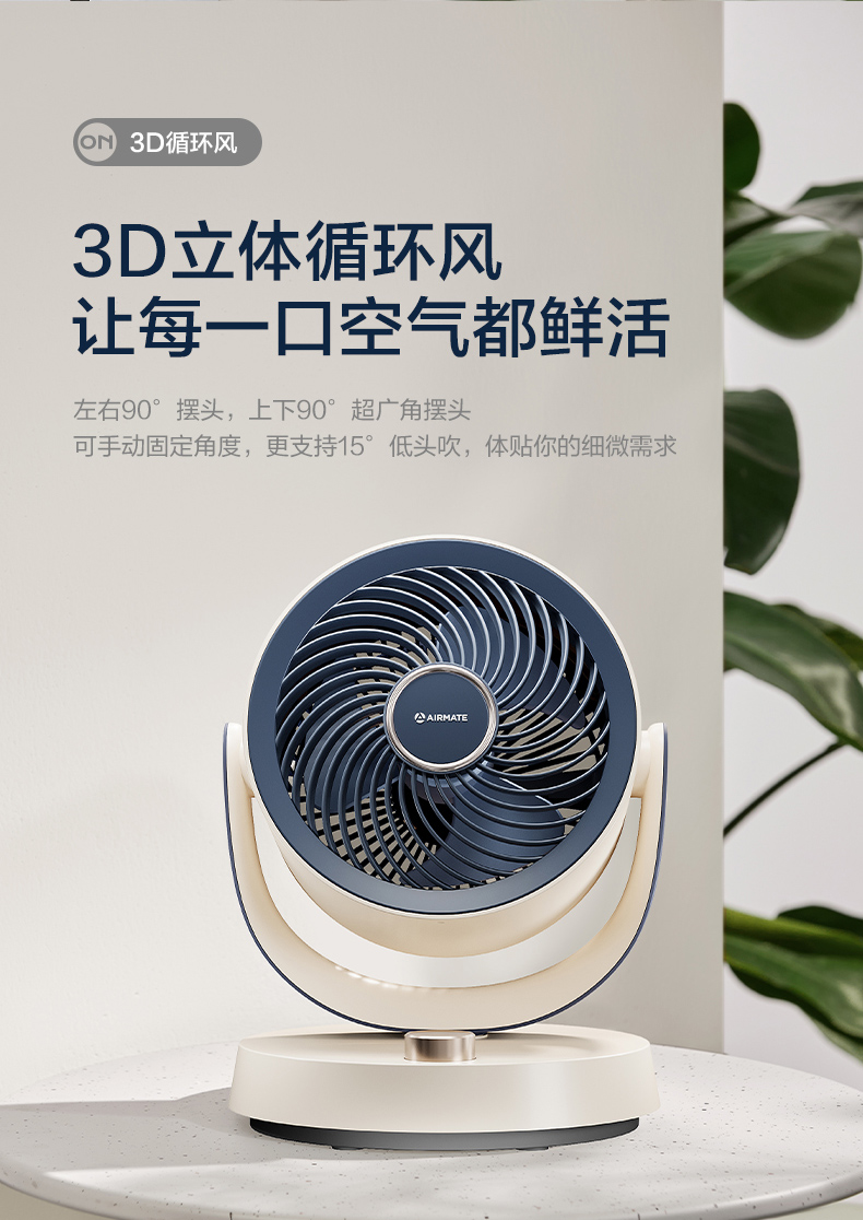 艾美特空气循环扇电风扇家用卧室风扇涡轮桌面小型扇可旋转办公室