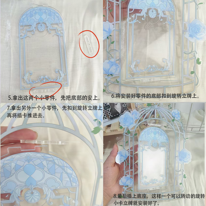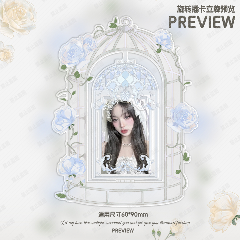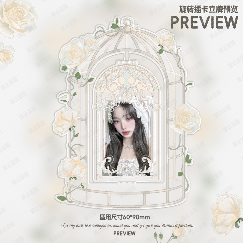 原创亚克力旋转插卡立牌ins爱豆拍立得展示架装饰相框摆件鲜花