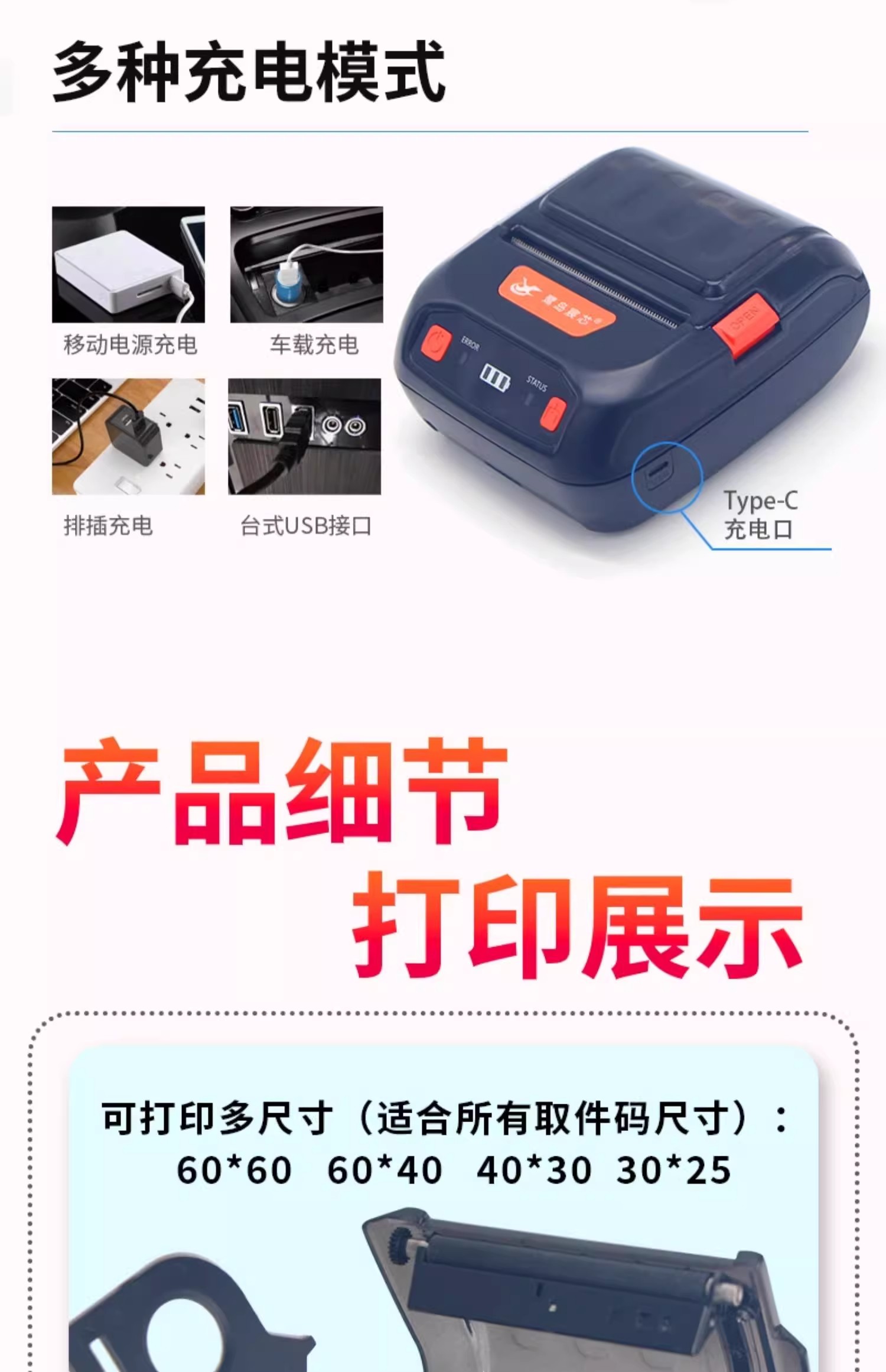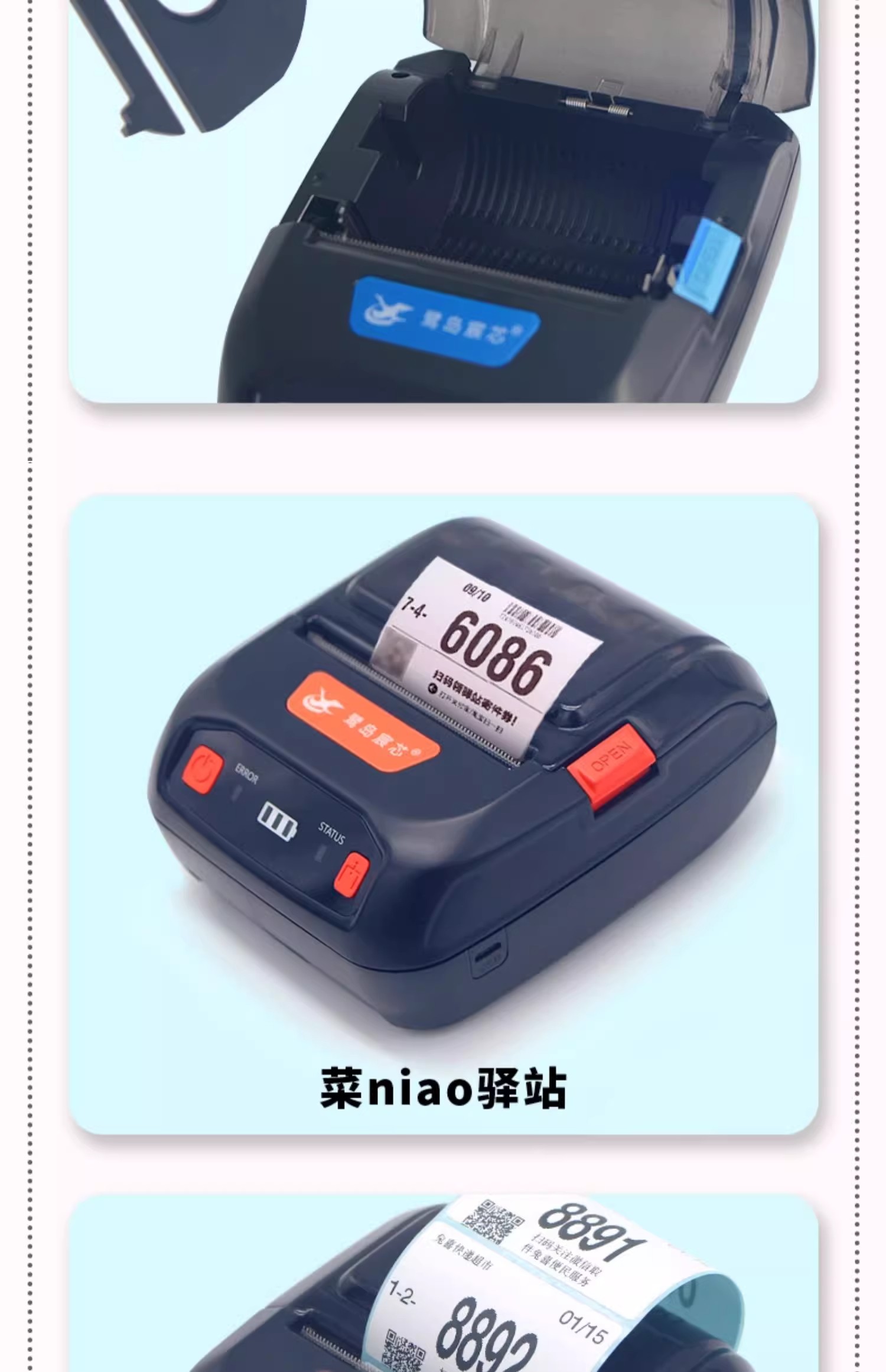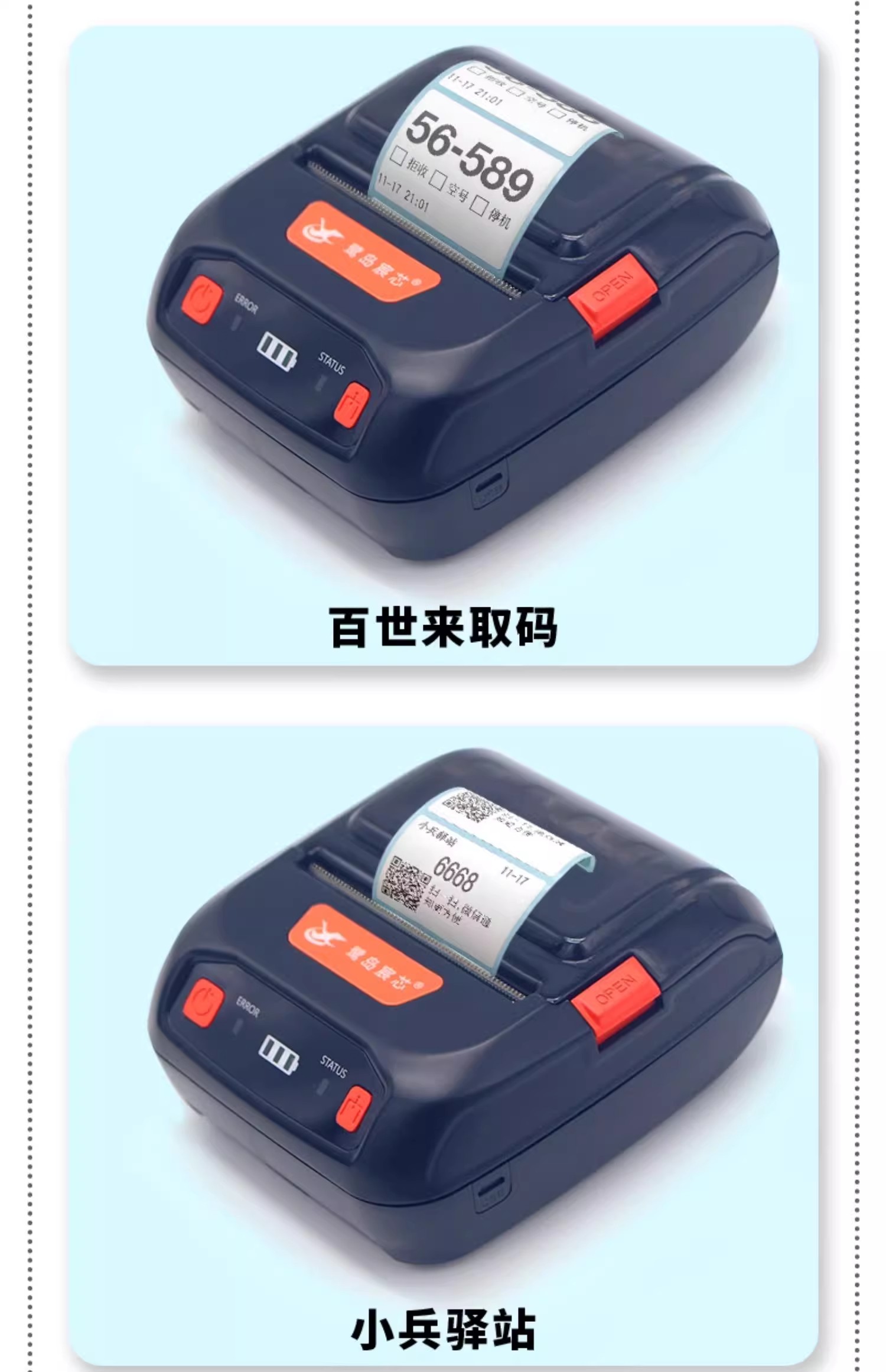 便携式蓝牙打单机快递站韵达中通顺丰圆通申通菜鸟驿站多多买菜邮政妈妈驿站快宝兔喜入库取件码打印机标签机