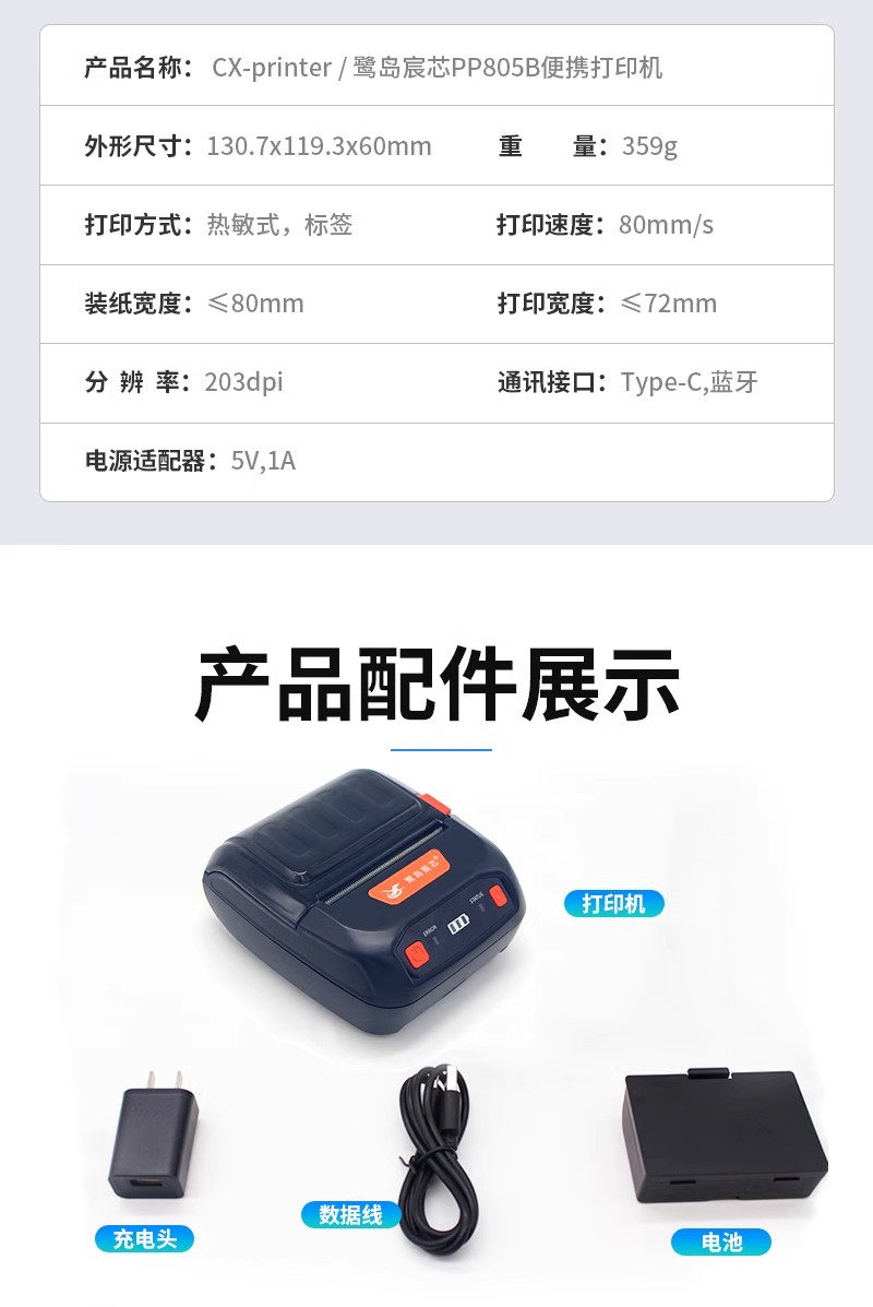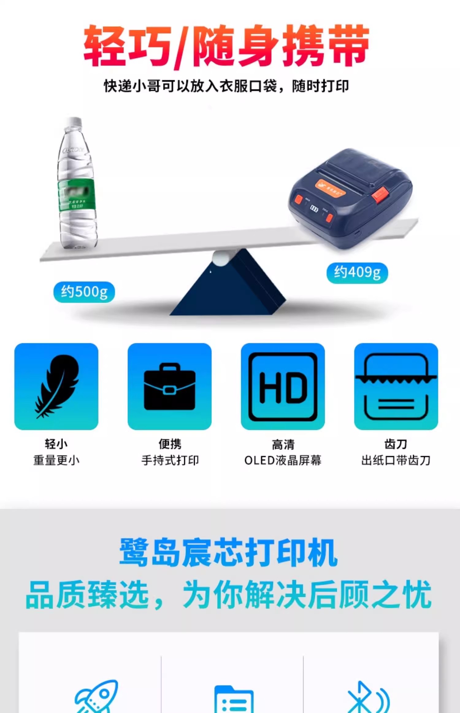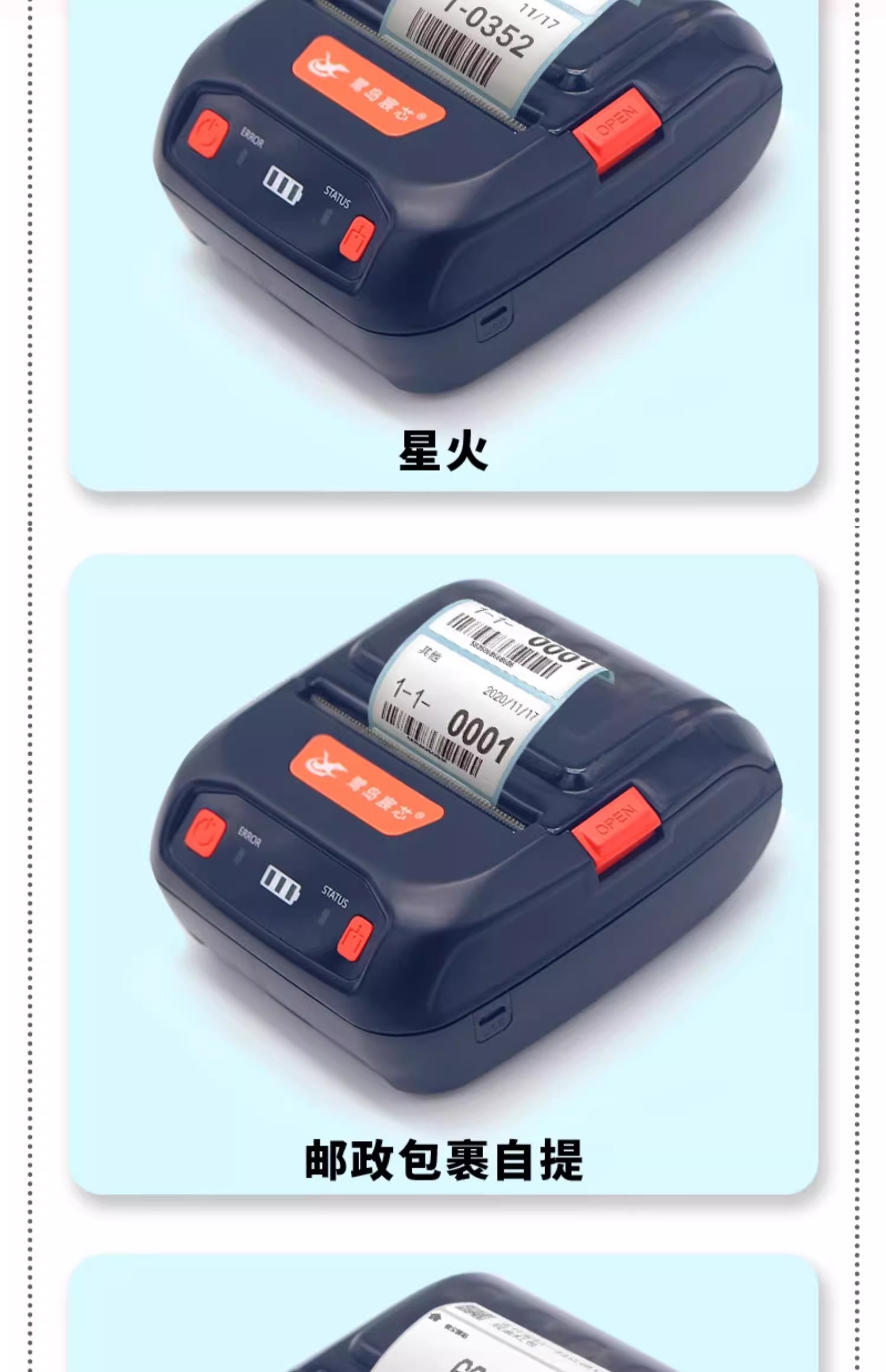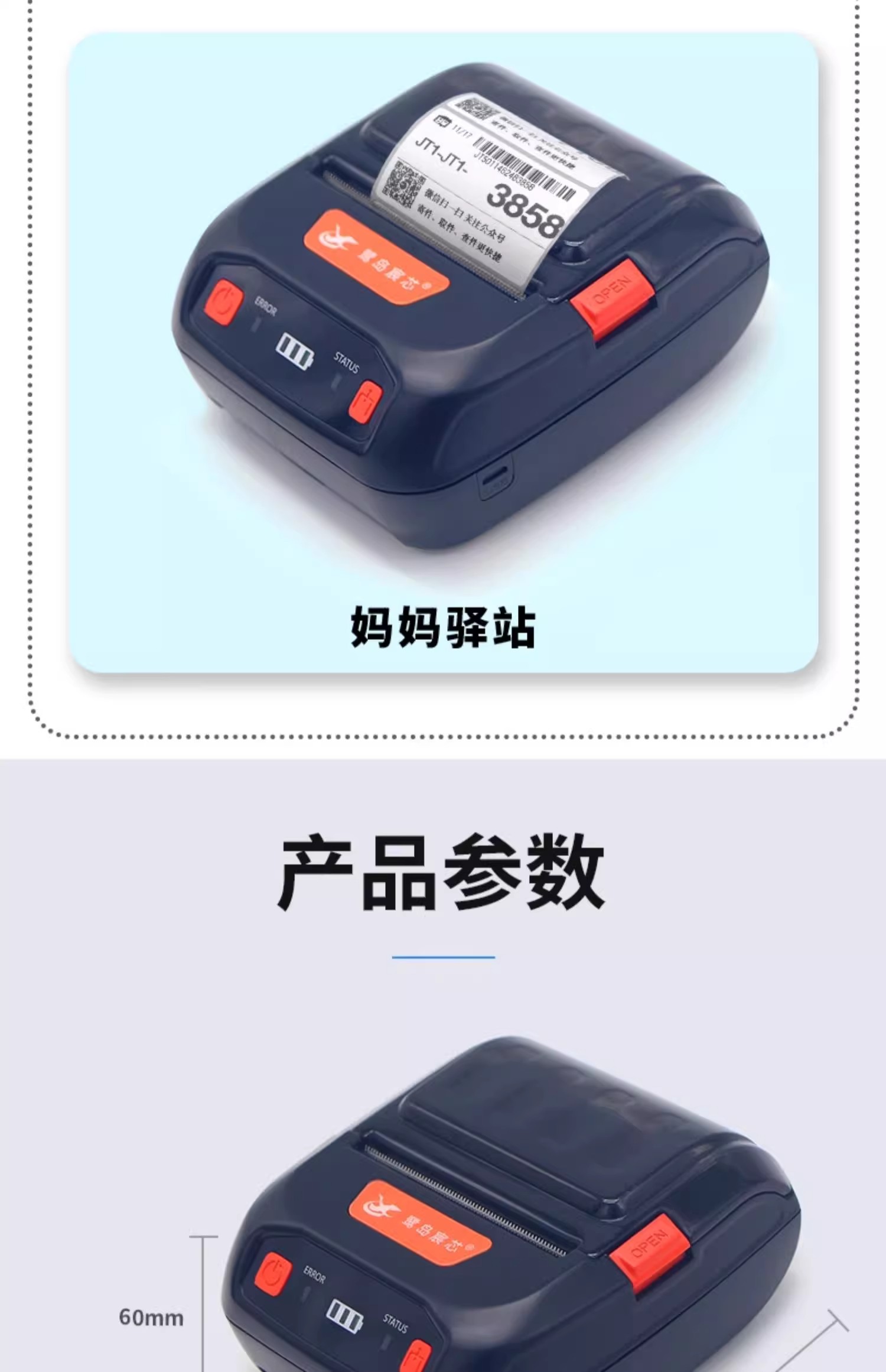 便携式蓝牙打单机快递站韵达中通顺丰圆通申通菜鸟驿站多多买菜邮政妈妈驿站快宝兔喜入库取件码打印机标签机
