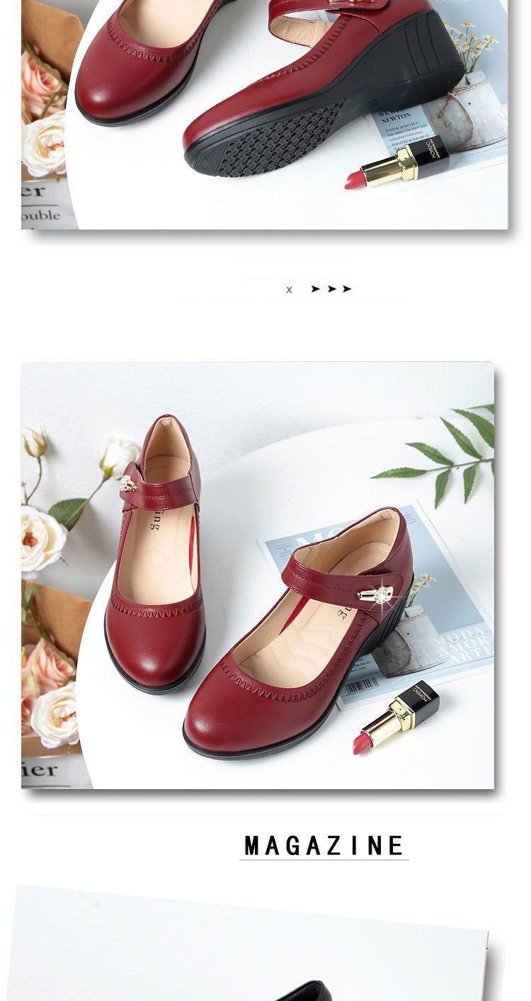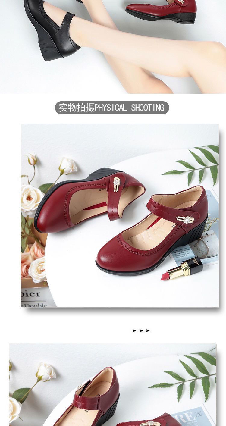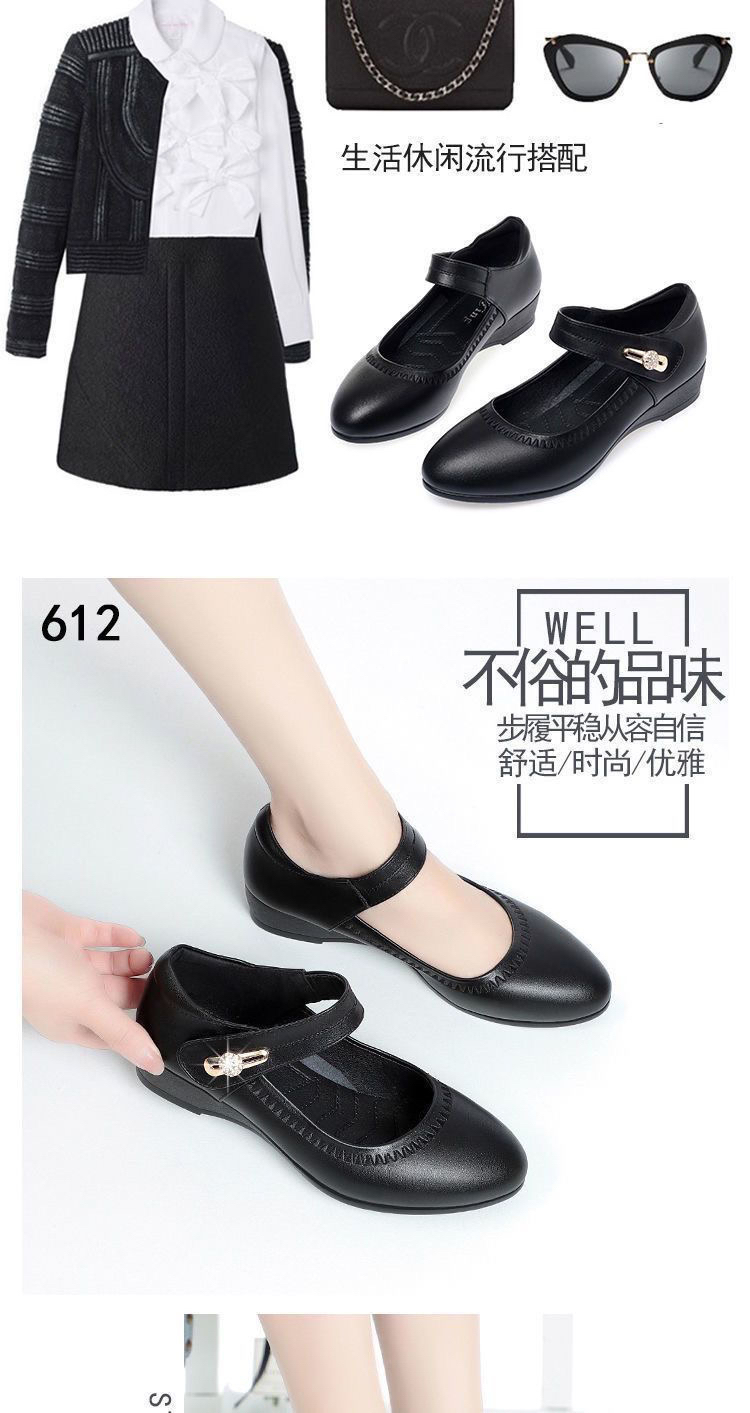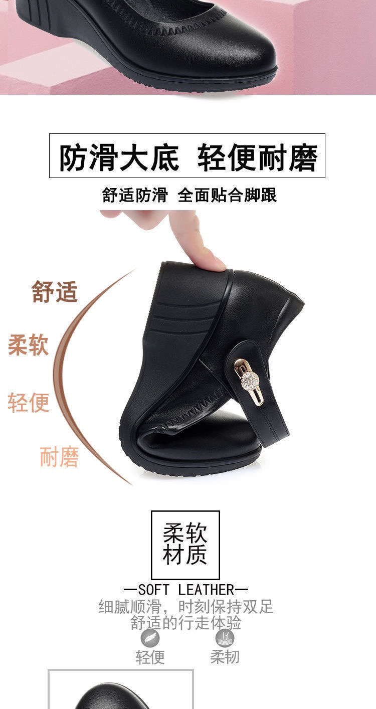 红青蜓妈妈鞋舒适坡跟软底真皮春秋中老年单鞋大码魔术贴女士皮鞋
