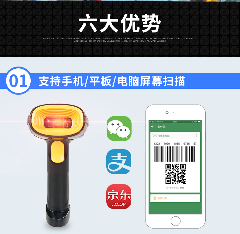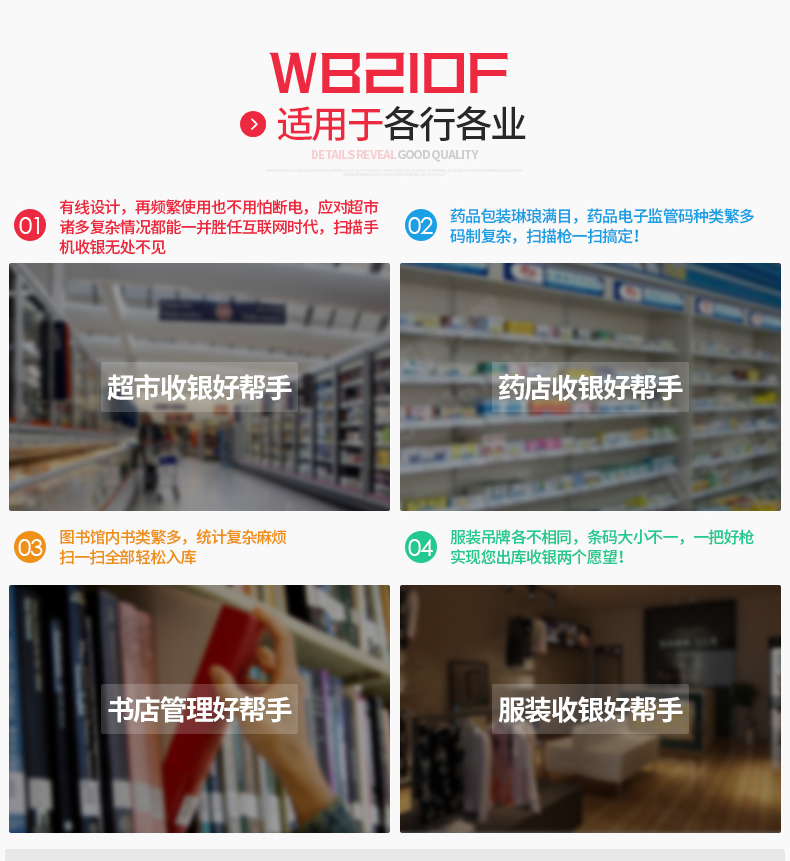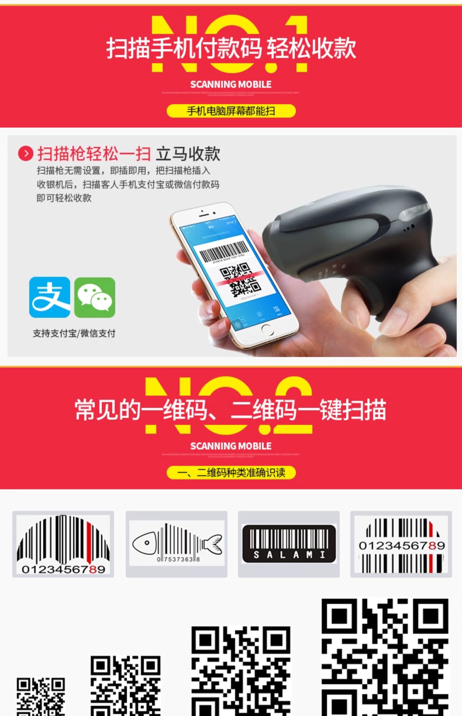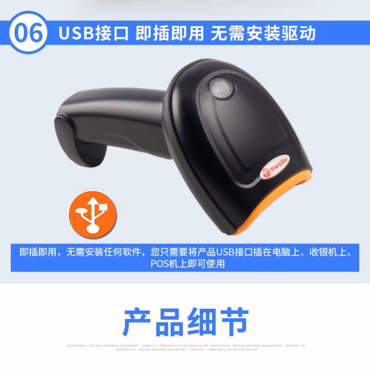 网百WB230扫描枪微小芯片点阵二维码微信开票中文有线农资兽药店2015a追塑码扫码枪超市医保卡手机支付扫码器