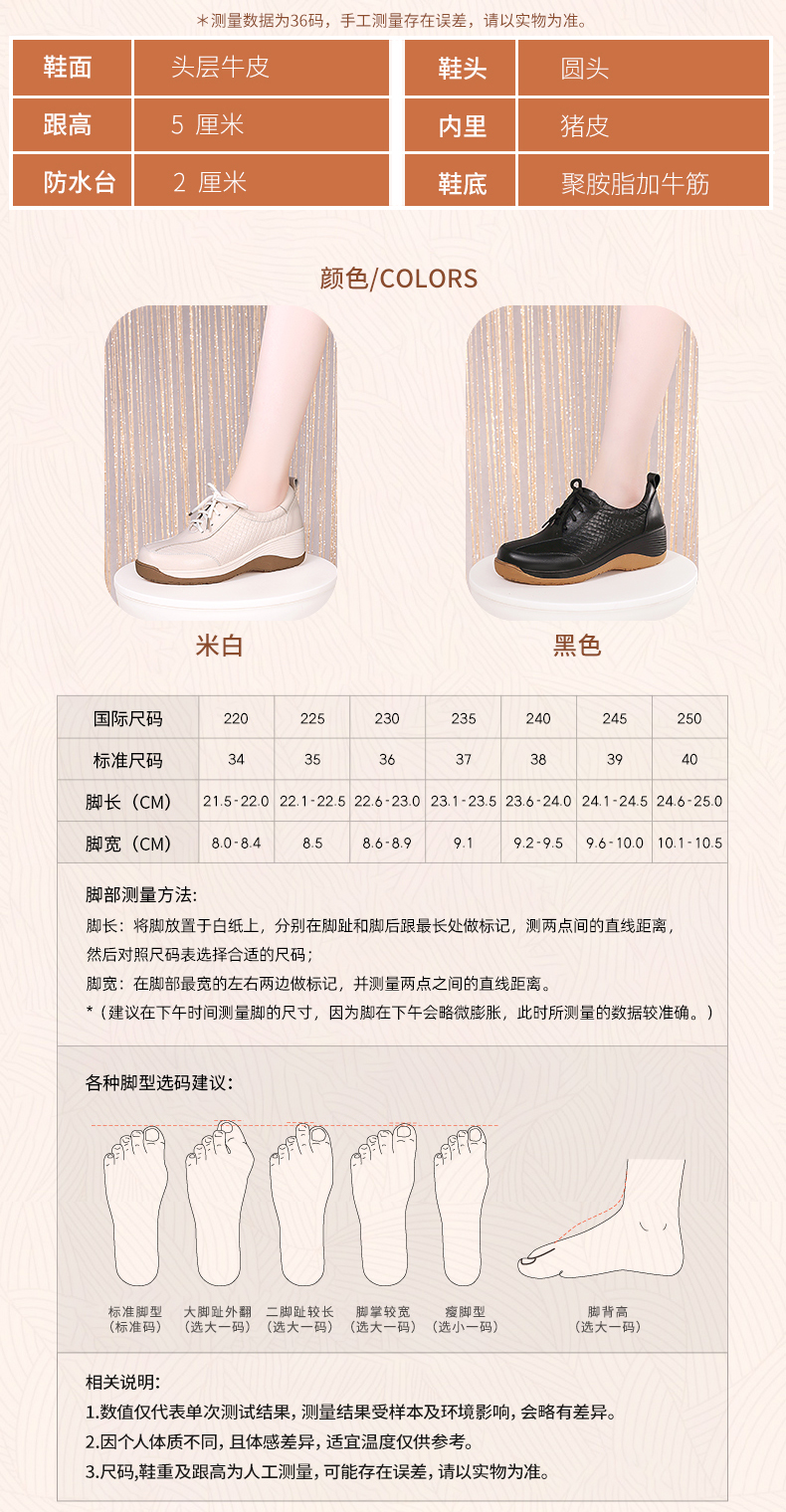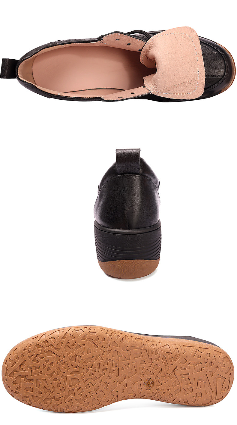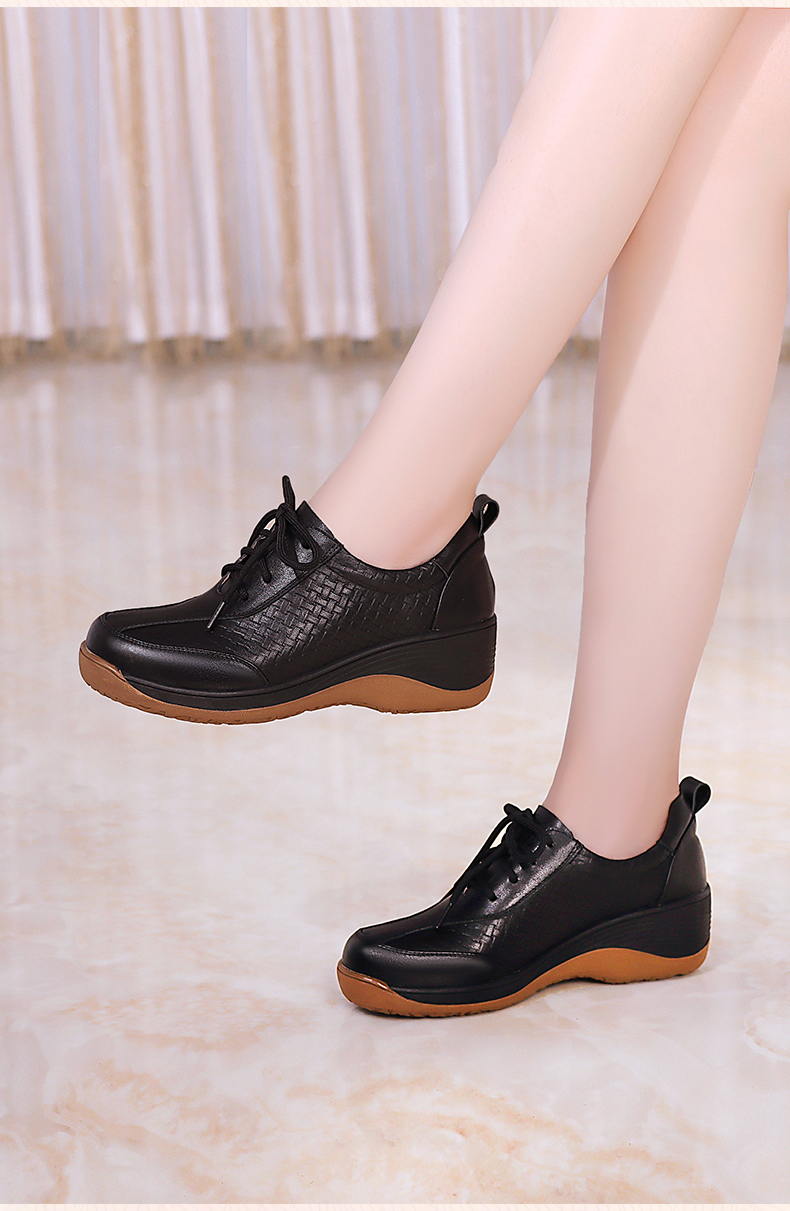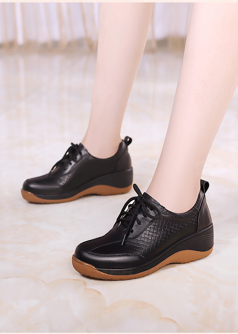 头层牛皮坡跟时尚休闲单鞋深口防水台防滑女鞋内外真皮系带圆头鞋