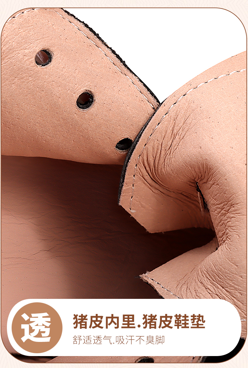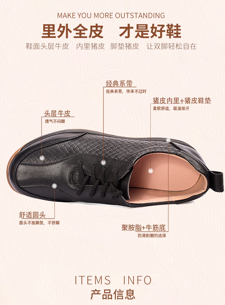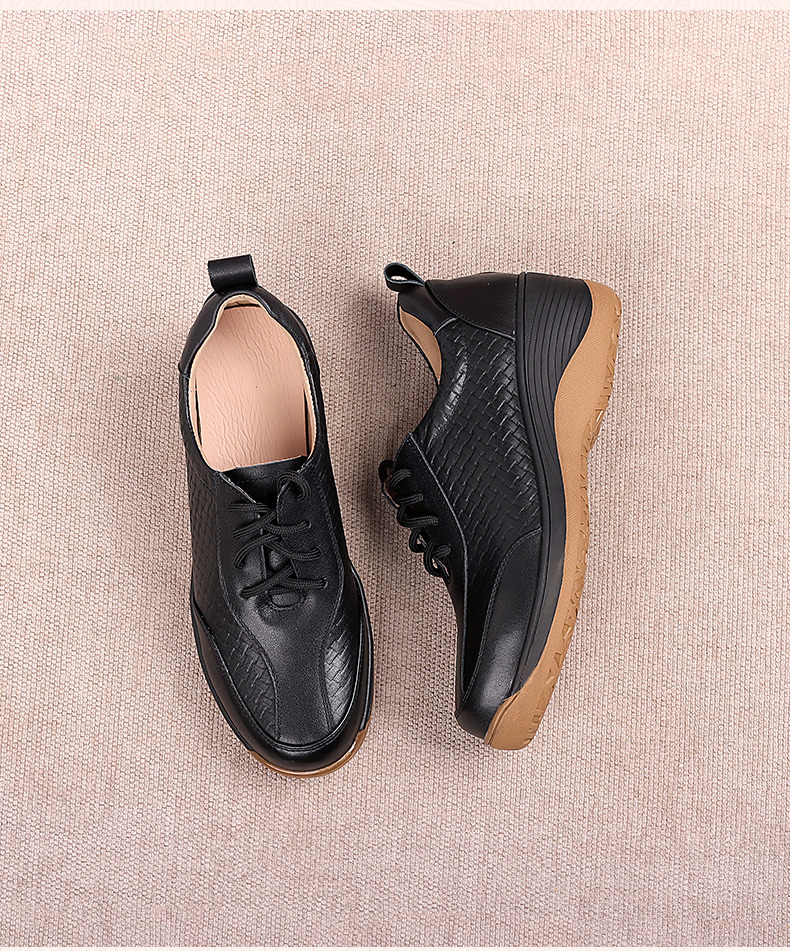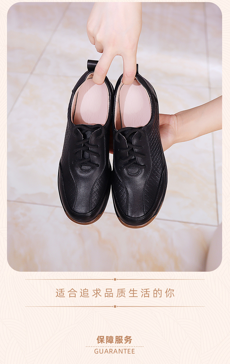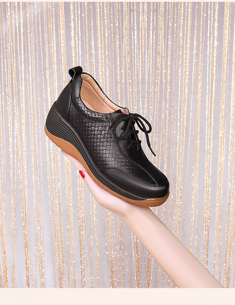 头层牛皮坡跟时尚休闲单鞋深口防水台防滑女鞋内外真皮系带圆头鞋