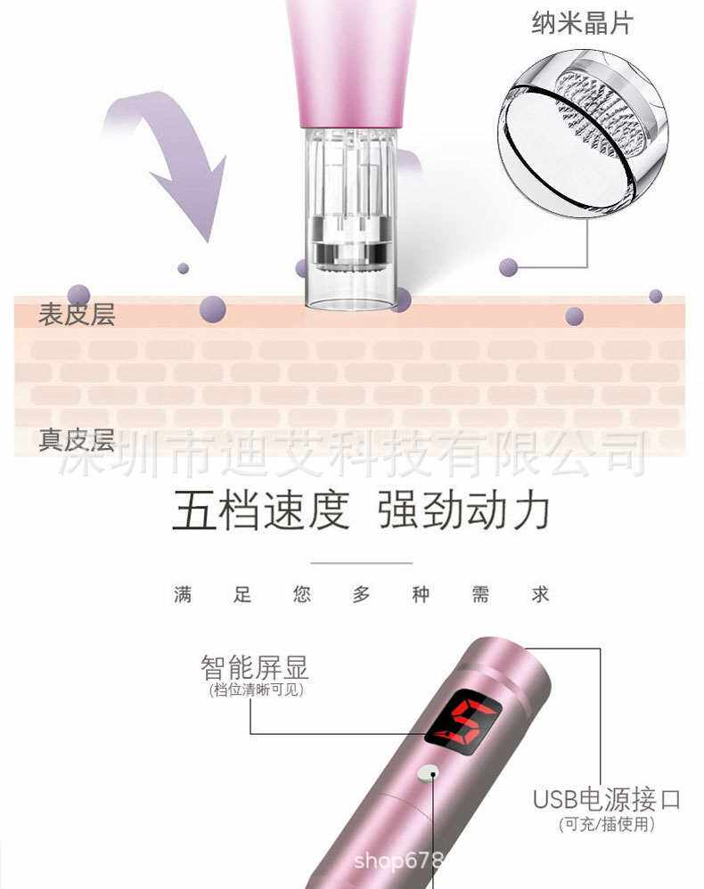 新款电动纳米微针导入仪护肤头美容院冻干粉精华微晶笔水光针祛斑