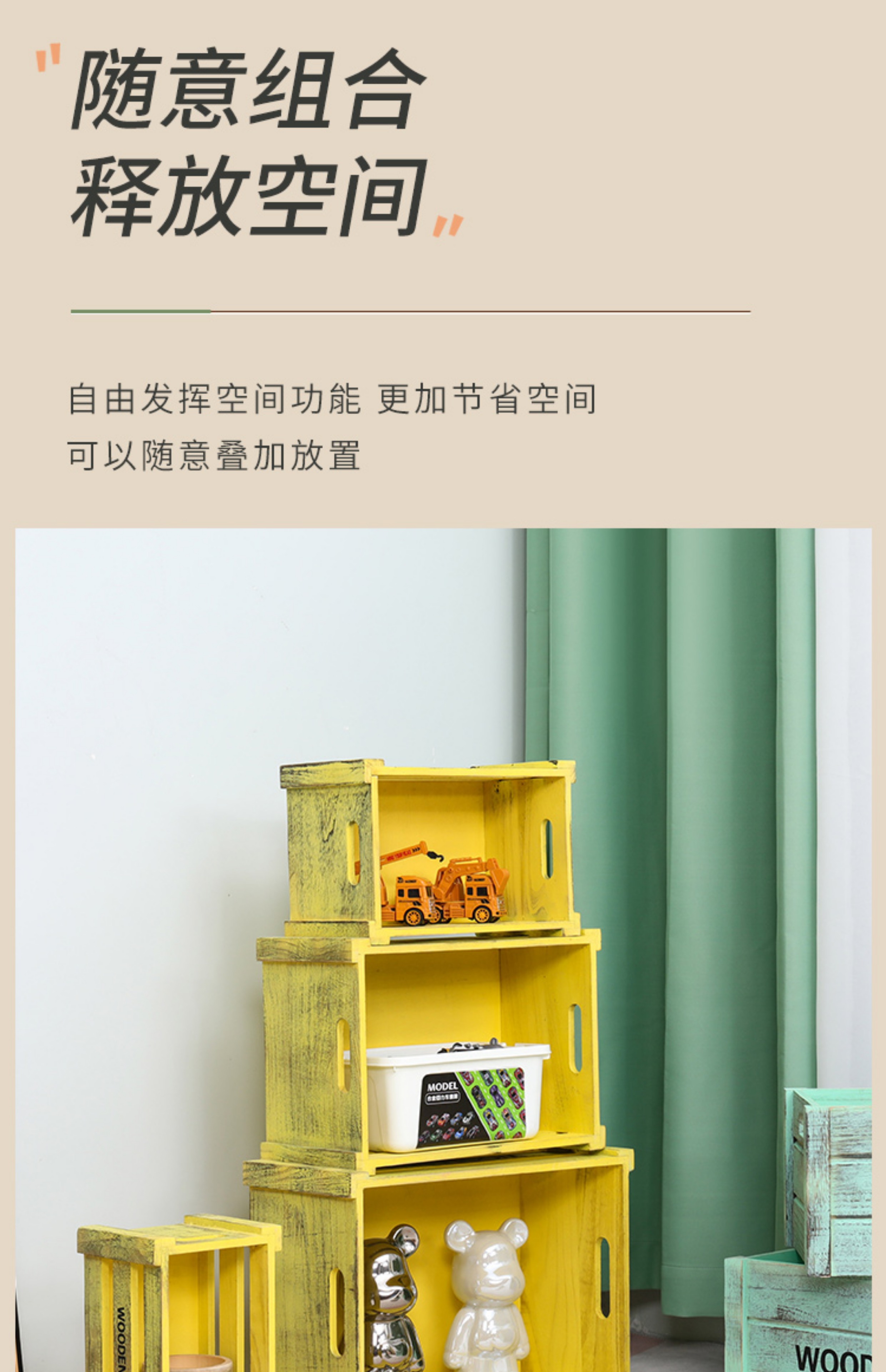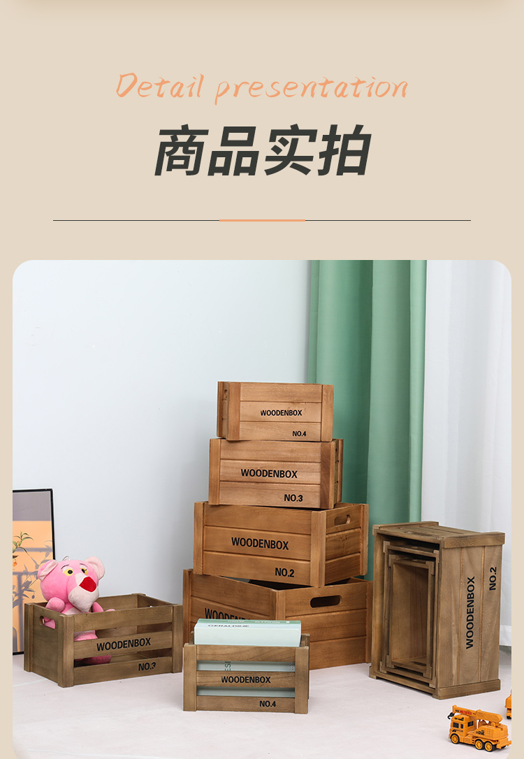 实木木框箱储物收纳木条箱子超市陈列道具长方形木箱装饰木筐定制