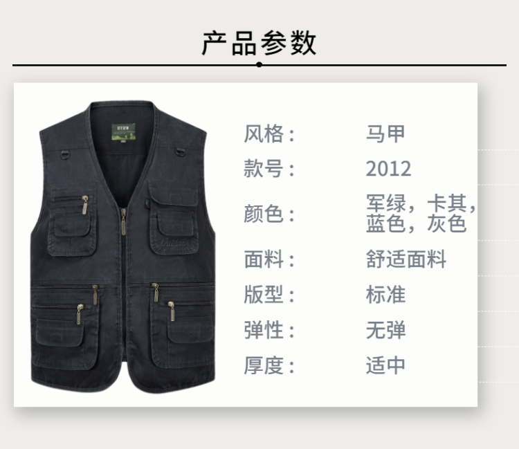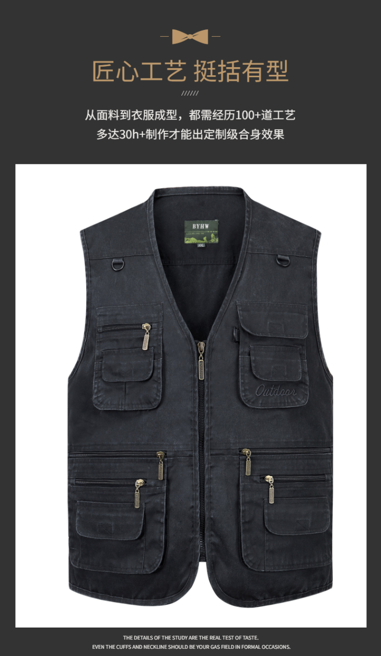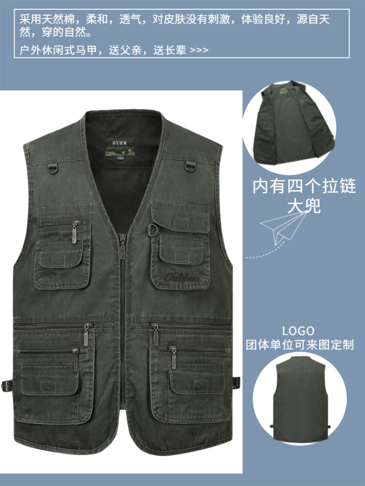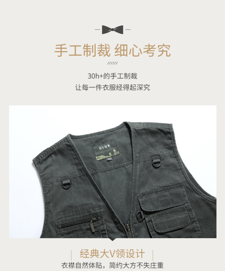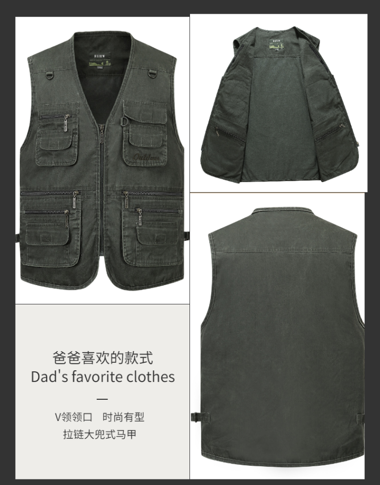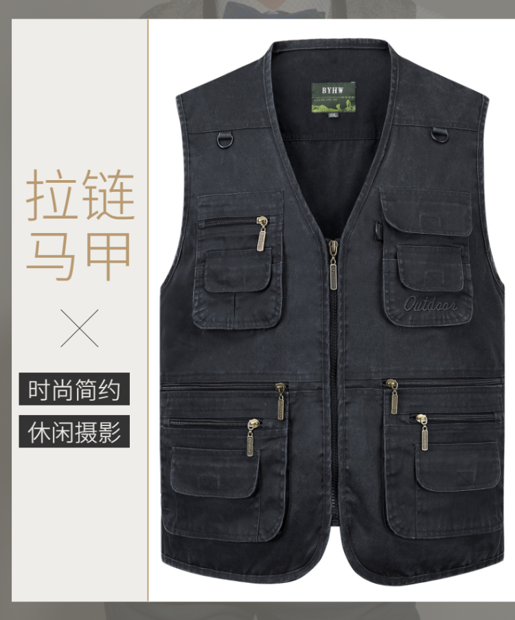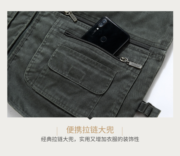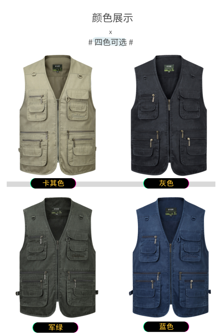 马甲男士春秋季薄款中老年纯棉大码多口袋外套牛仔背心爸爸装坎肩