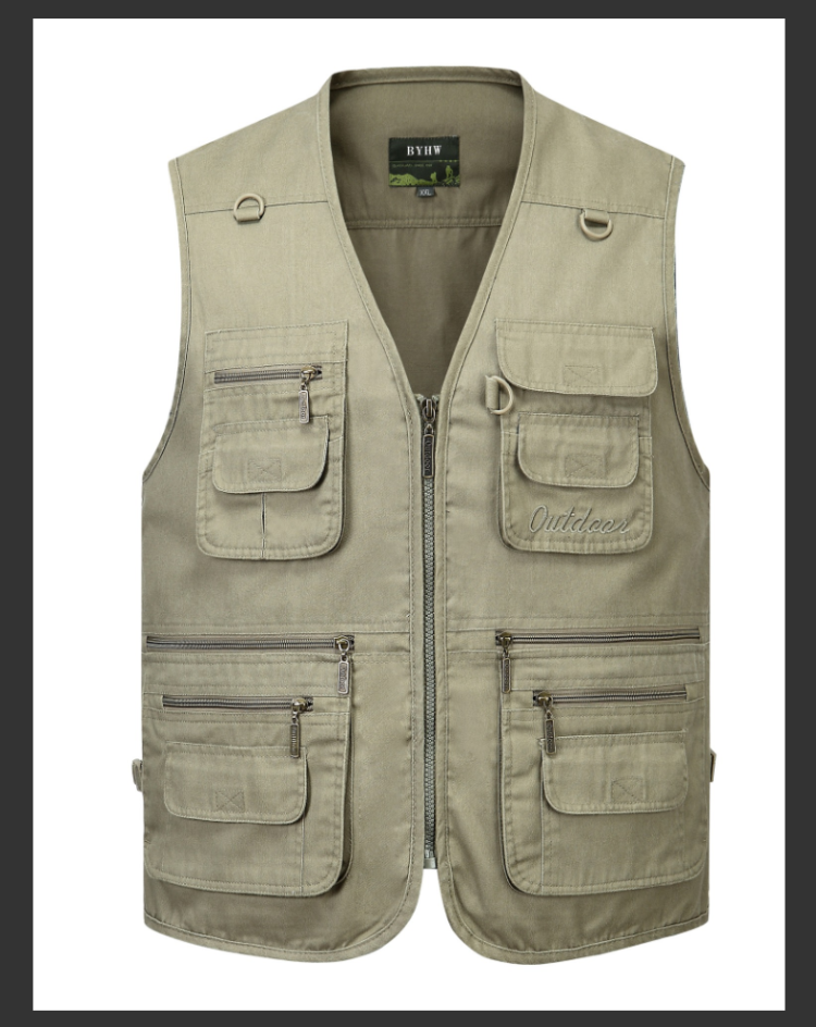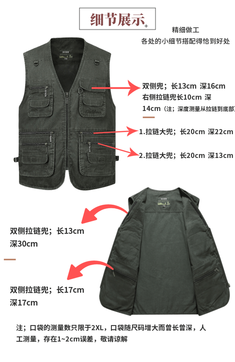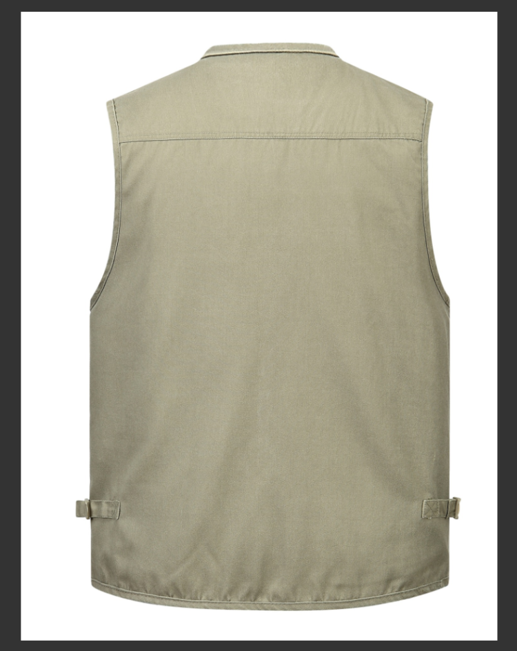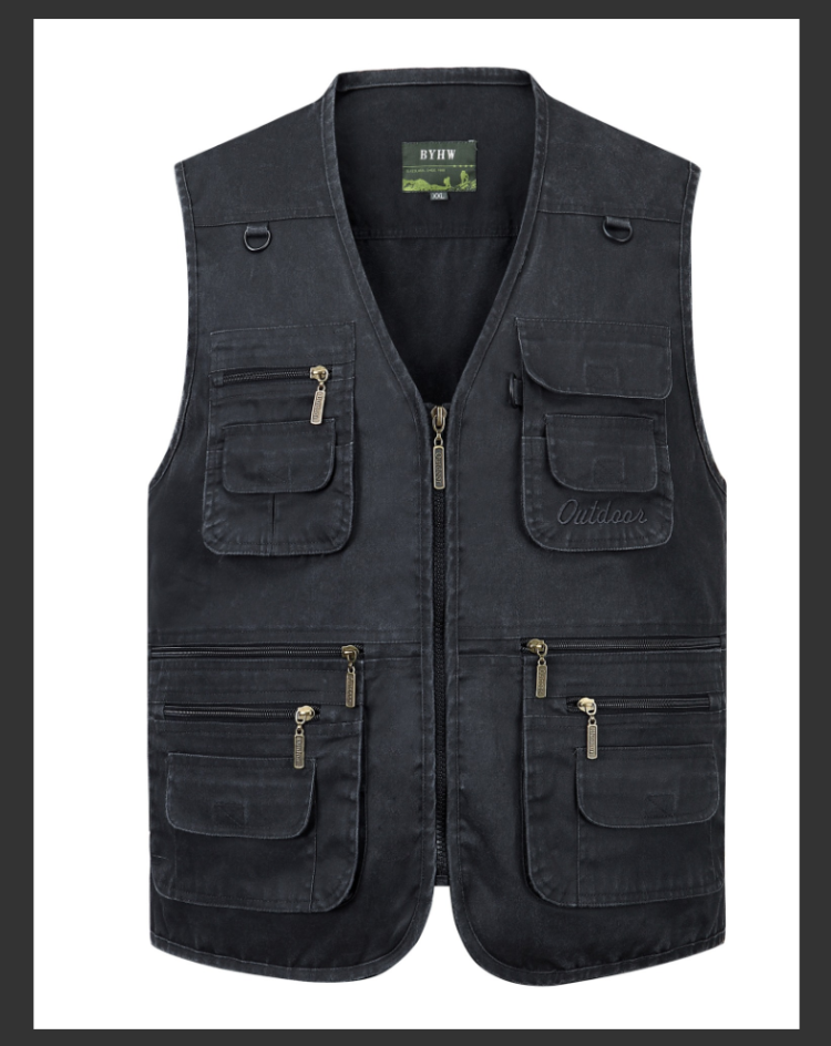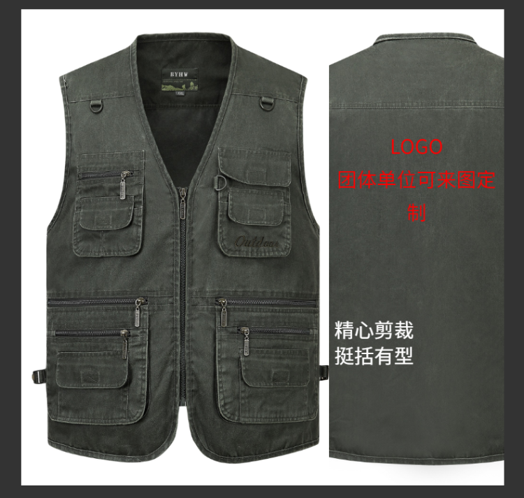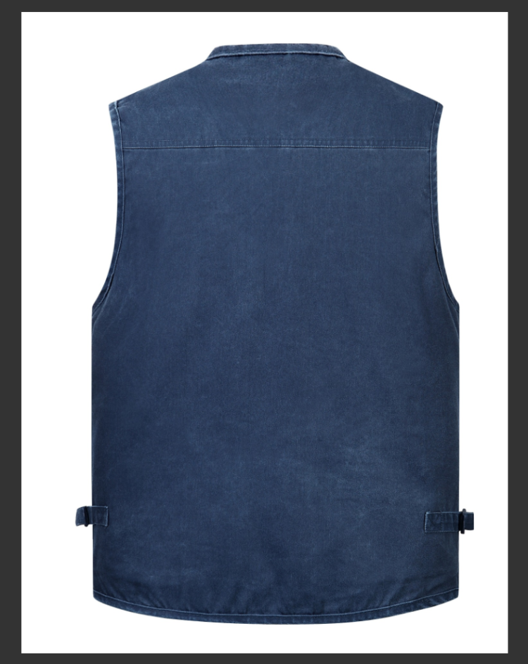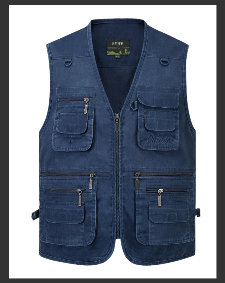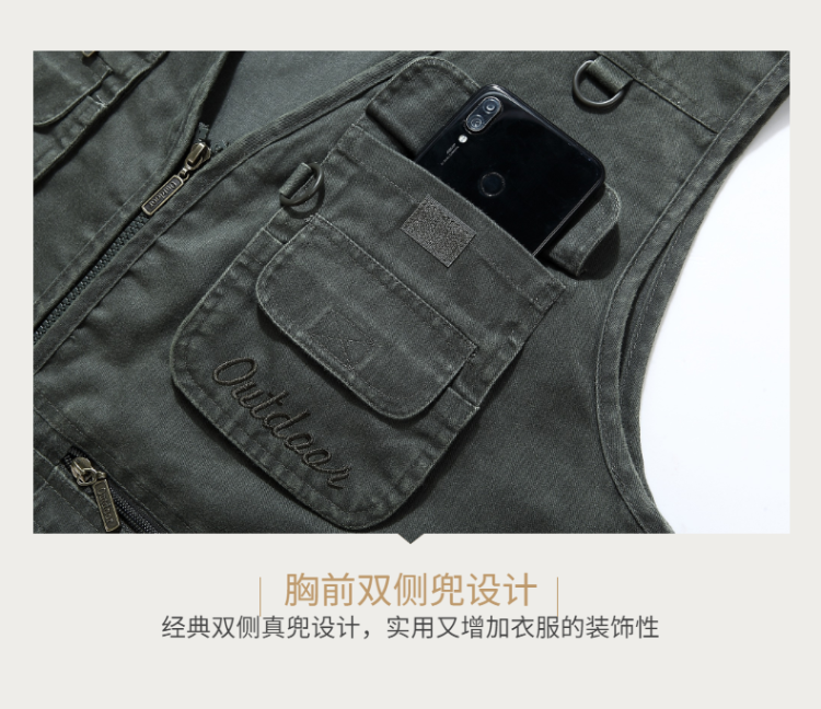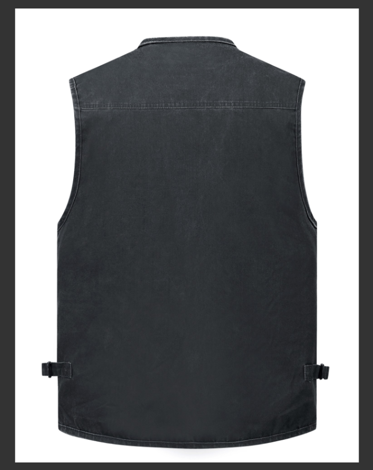马甲男士春秋季薄款中老年纯棉大码多口袋外套牛仔背心爸爸装坎肩