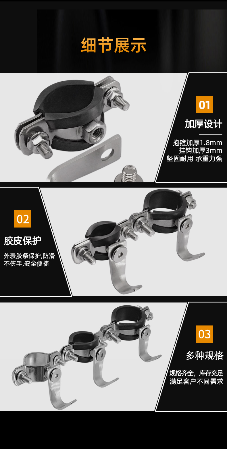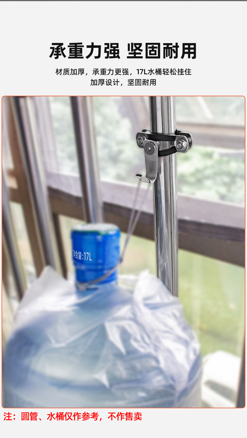 304不锈钢圆管挂钩承重晾衣杆防风钩免打孔旋转挂衣帽钩