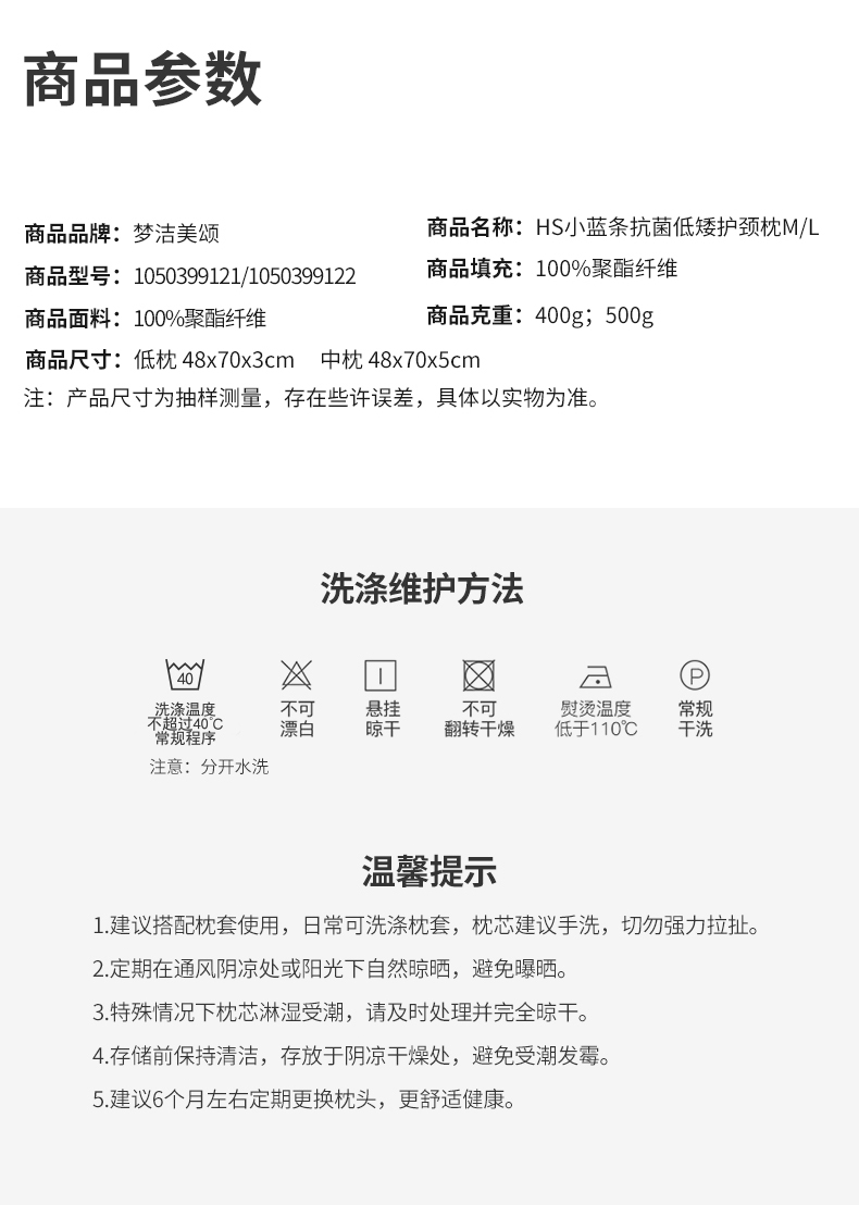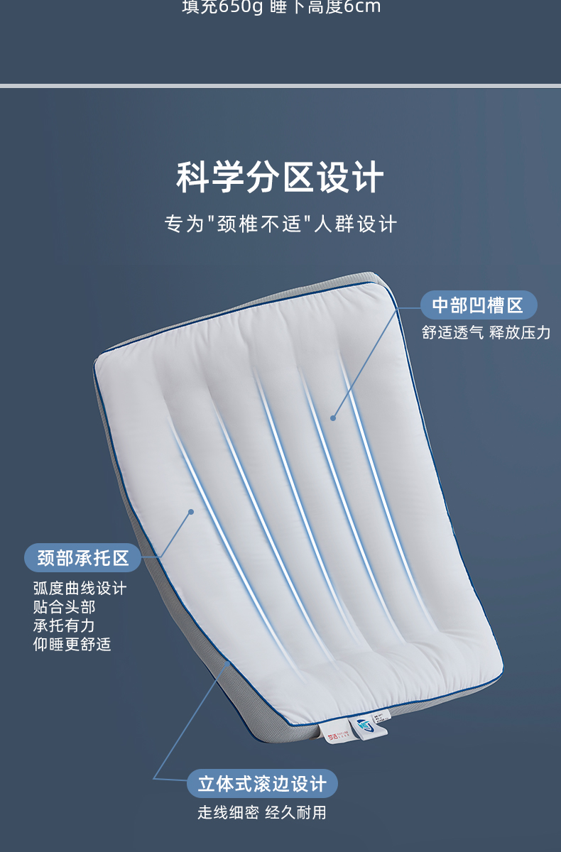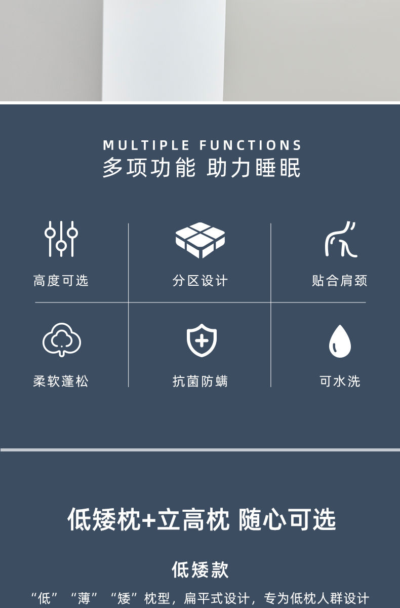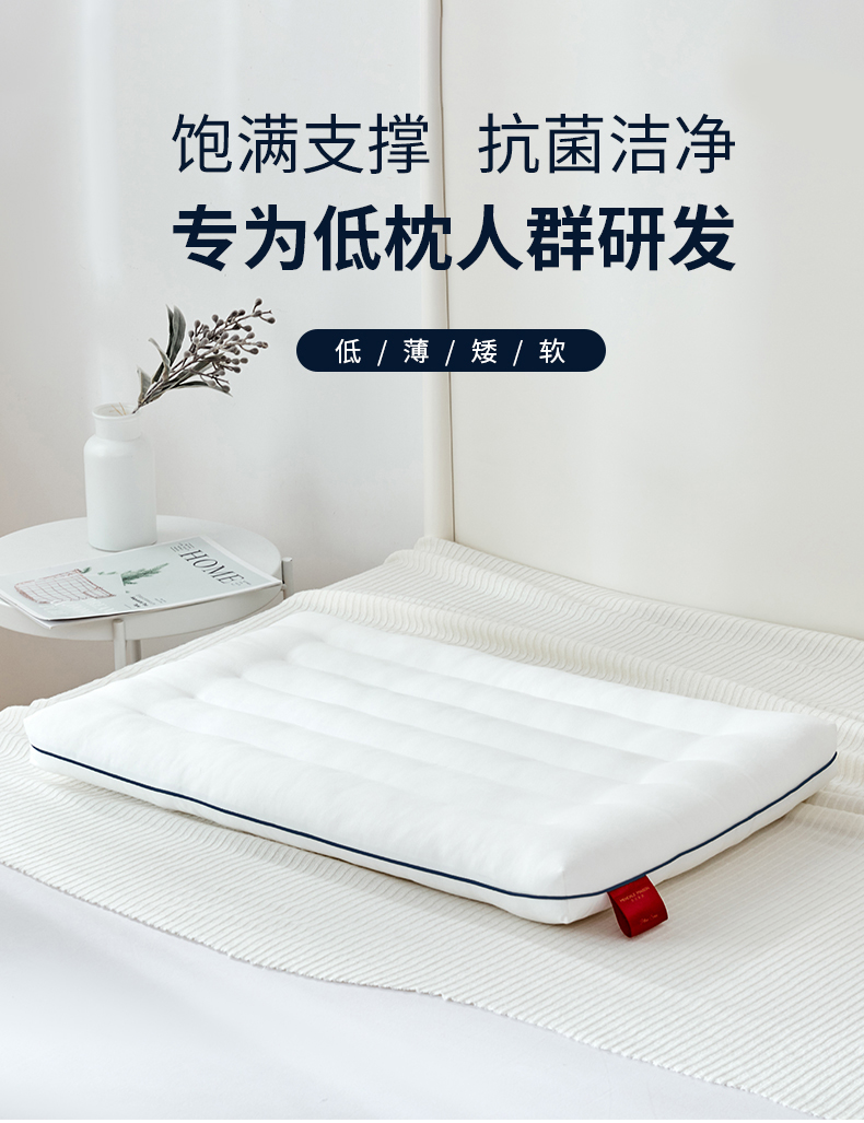 梦洁家纺低枕头薄枕抗菌纤维矮枕软枕芯护颈椎助睡眠家用儿童平枕
