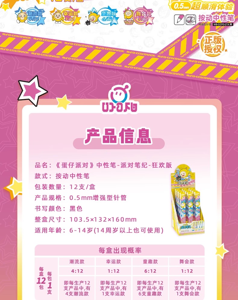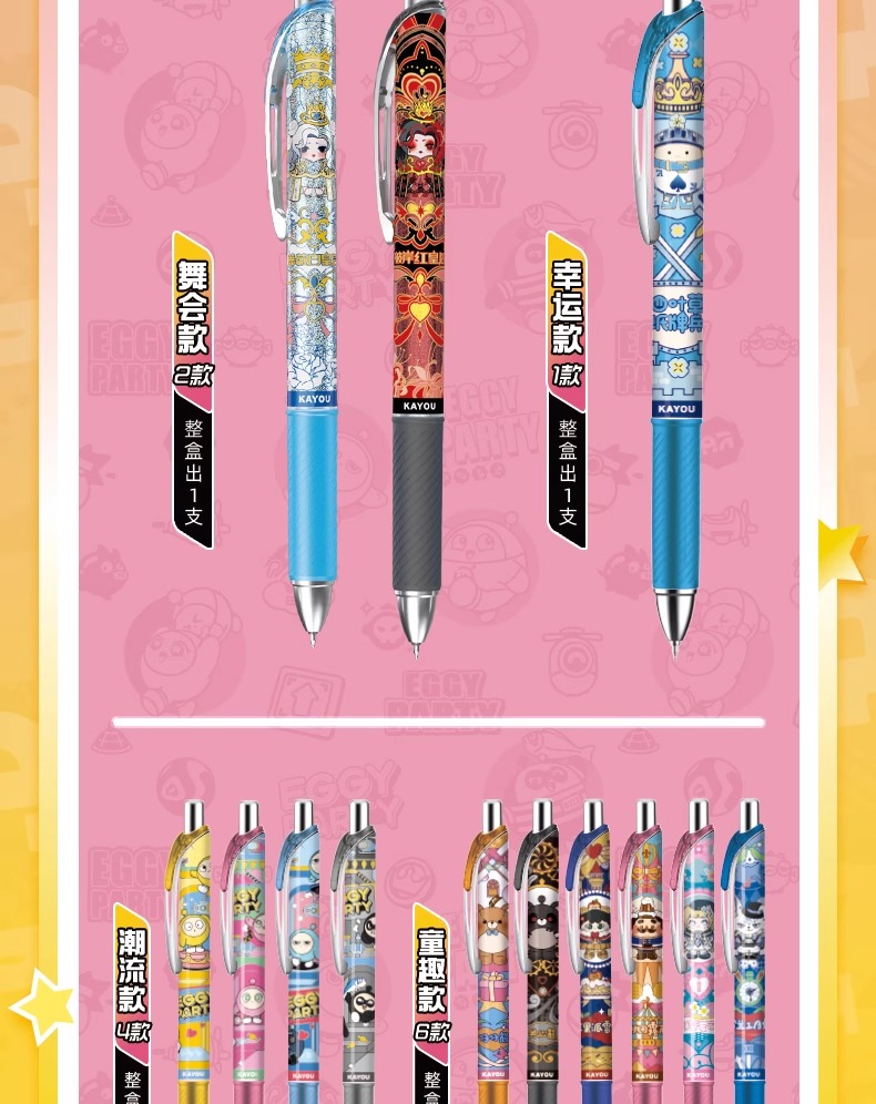 卡游蛋仔派对中性笔文具周边盲盒初中专用学习用品小学生黑圆珠笔