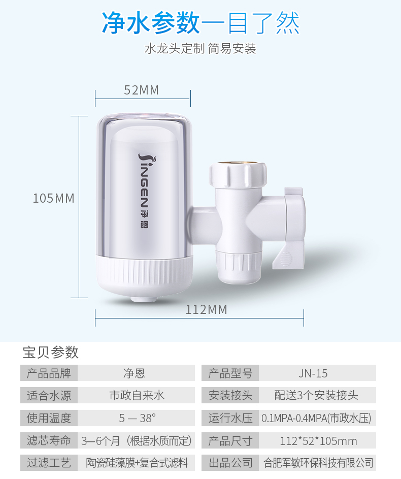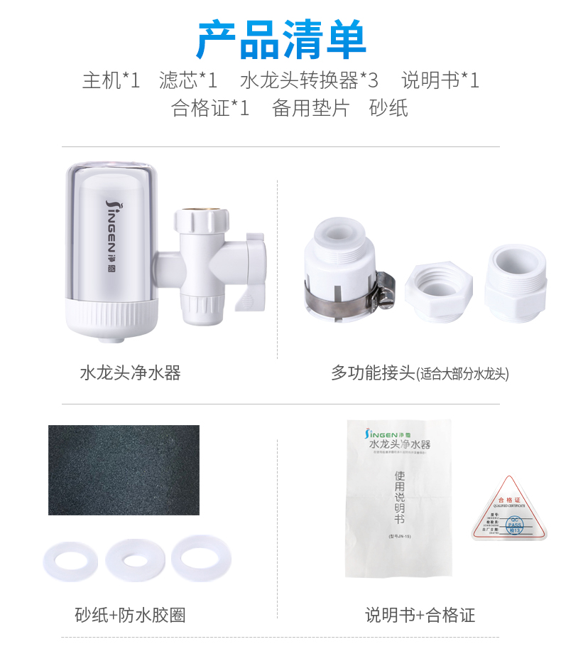 净恩JN-15 水龙头过滤器自来水净水器家用厨房前置净化器滤水器具
