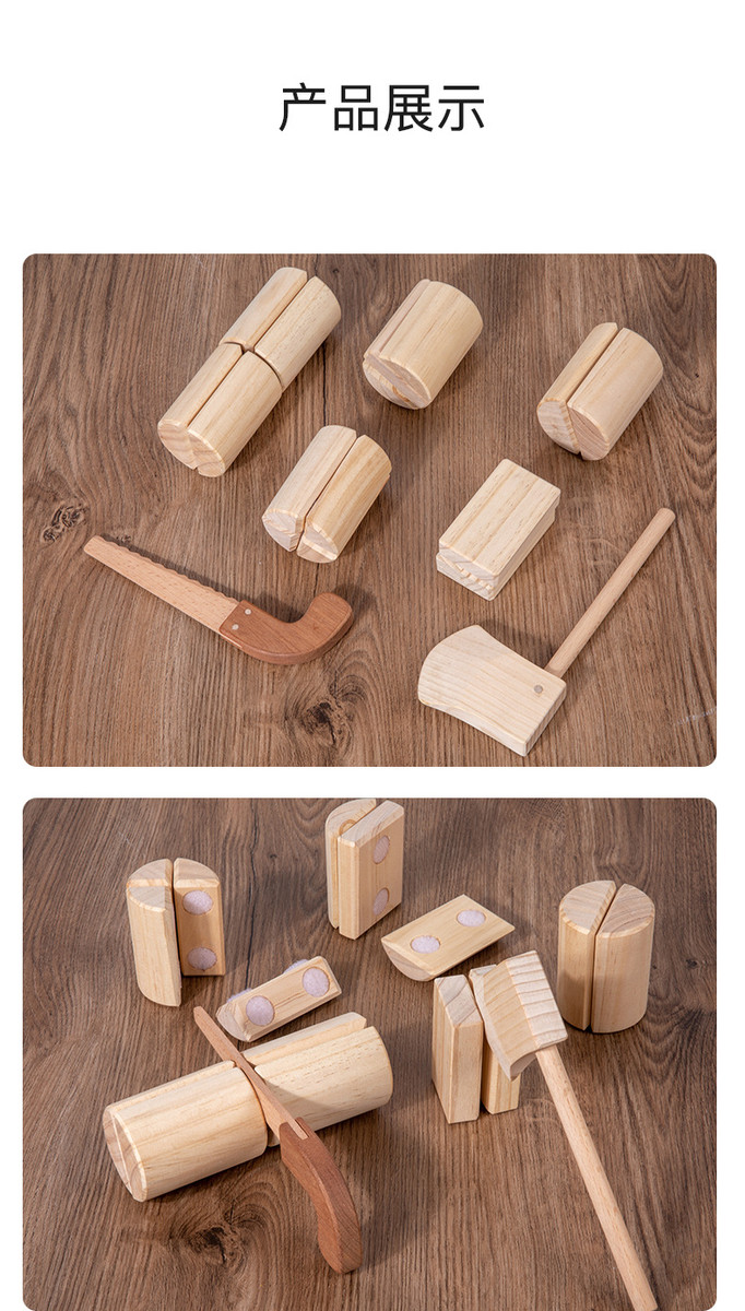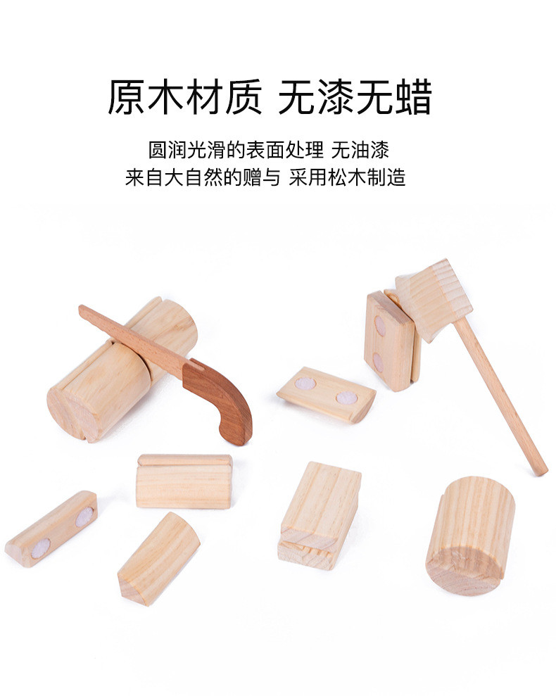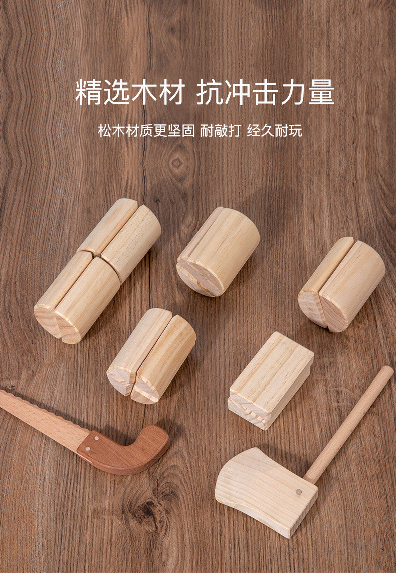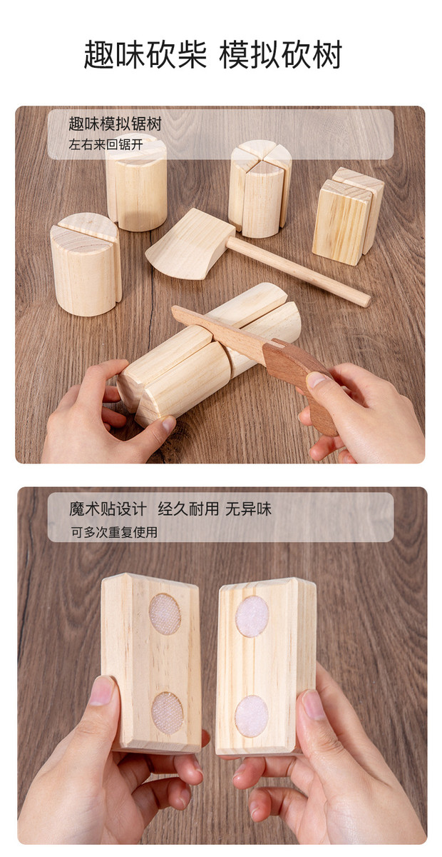 儿童仿真劈柴游戏早教宝宝模拟砍柴木制过家家切切看魔术贴玩具