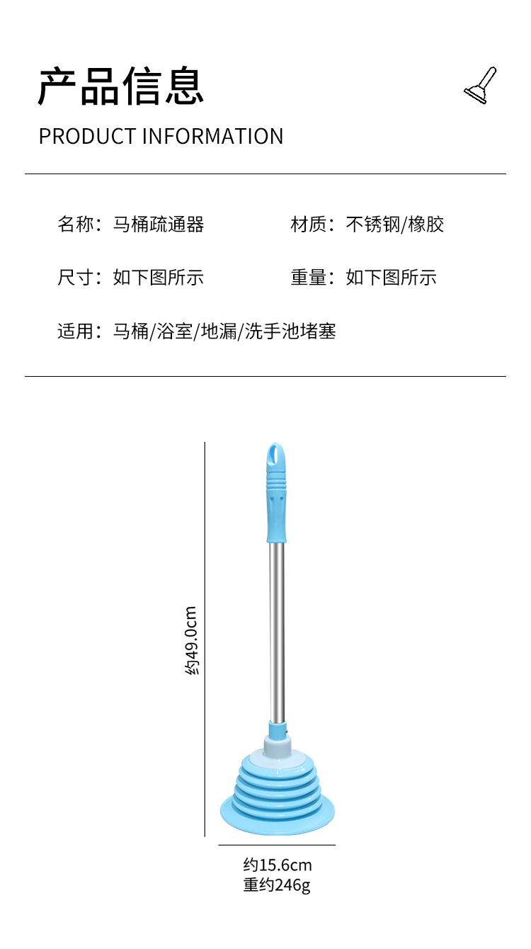 通马桶疏通器皮搋子吸马桶塞堵了神器家用下水管道管道地漏堵塞