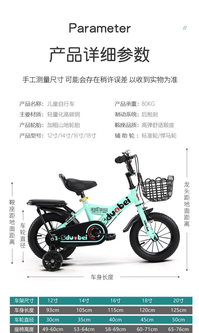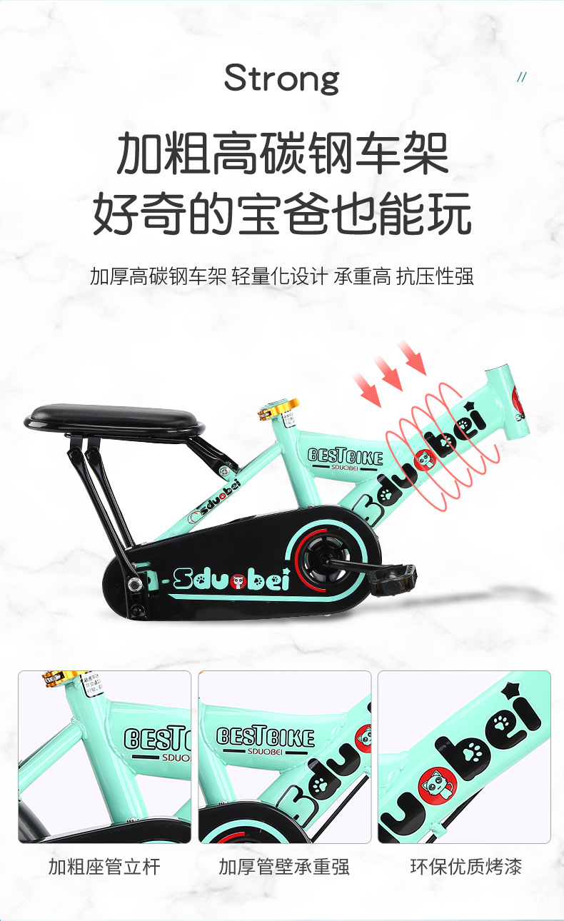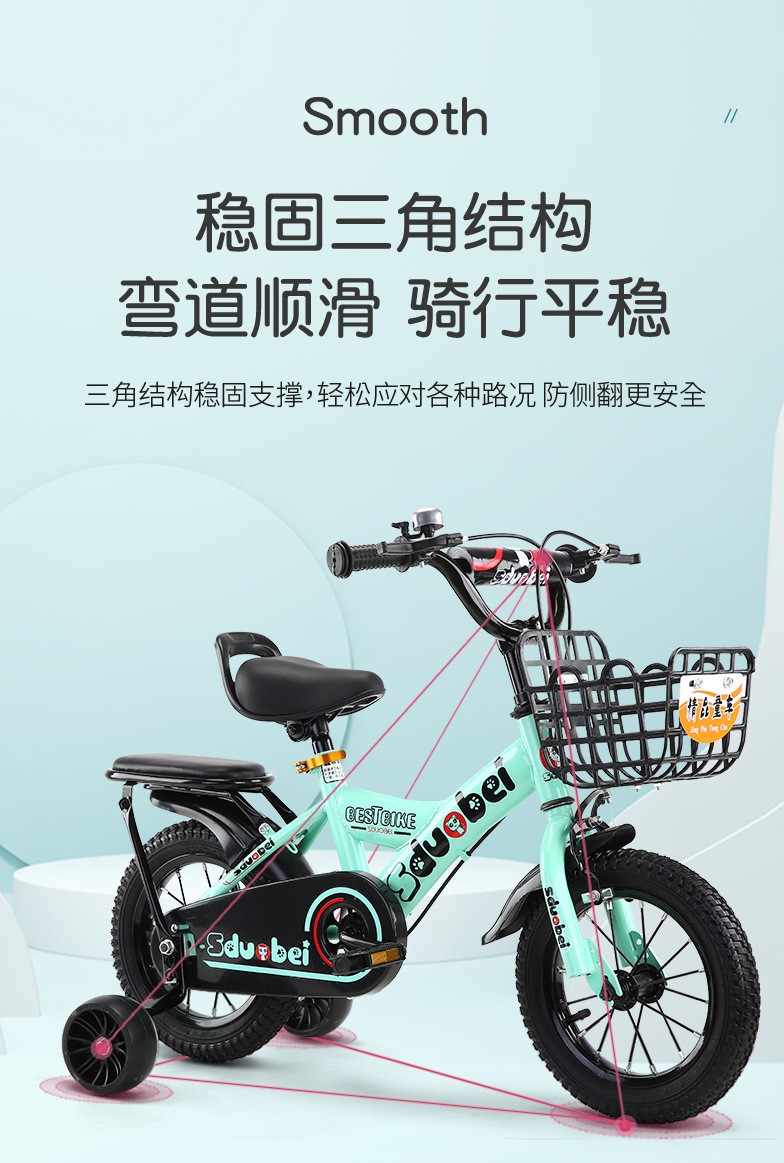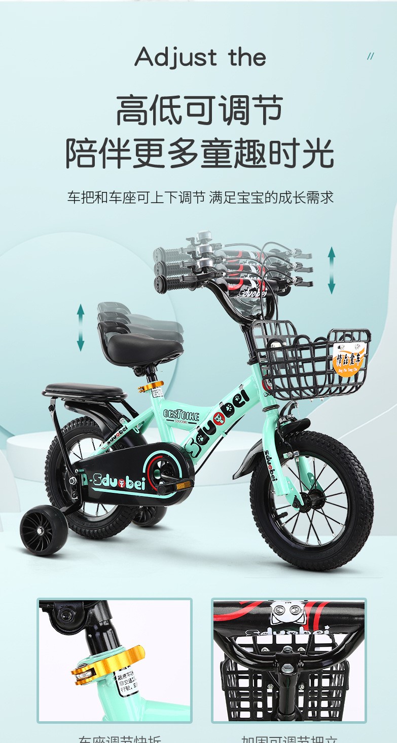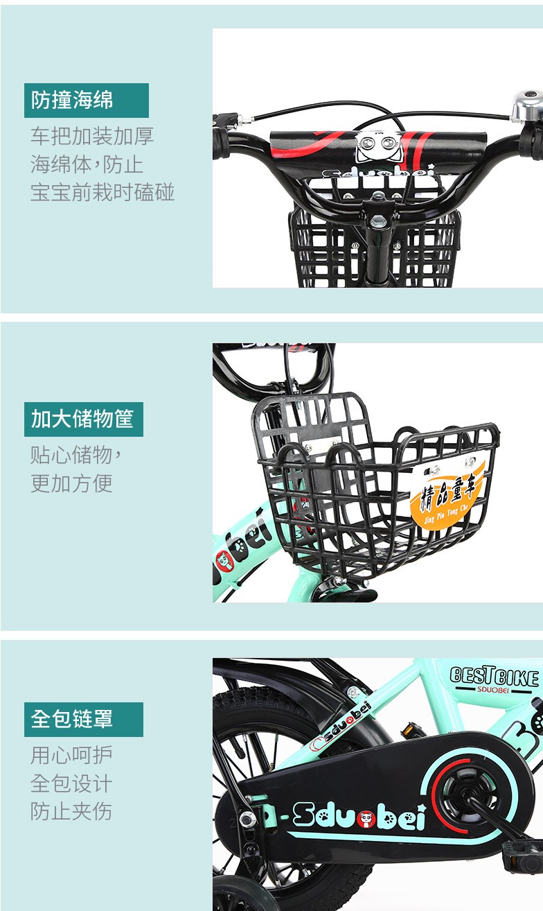 新款一体轮童车公主粉色女童自行车儿童单车小女孩折叠脚踏车20寸