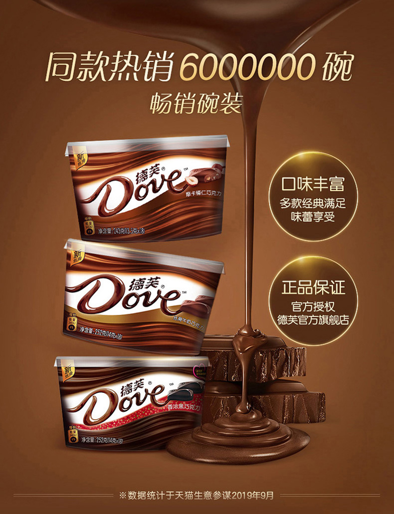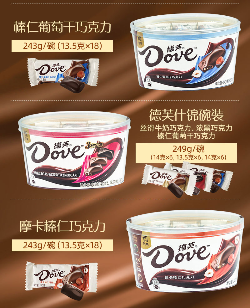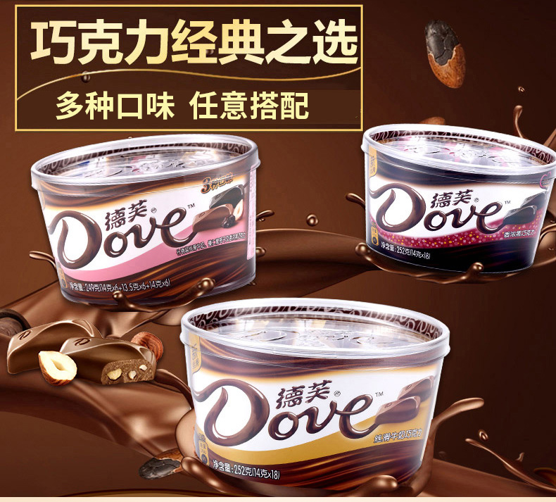 德芙巧克力252g碗装桶装礼盒装黑白巧榛仁丝滑牛奶喜糖休闲零食