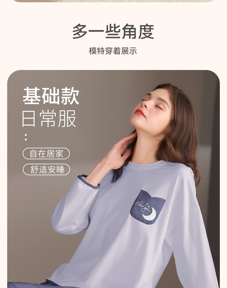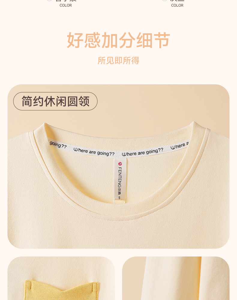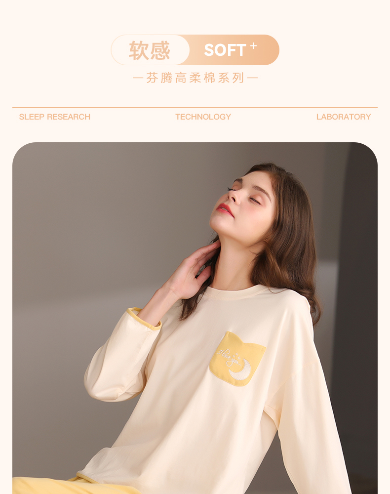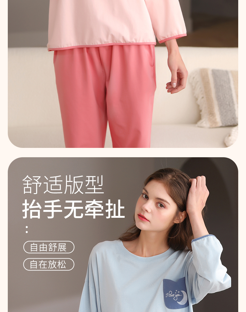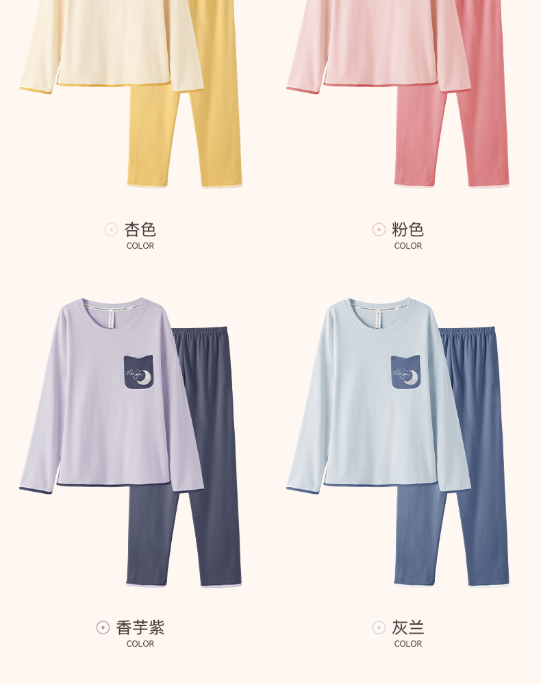 芬腾春秋季长袖睡衣女款纯棉套头宽松大码女士春季全棉家居服套装