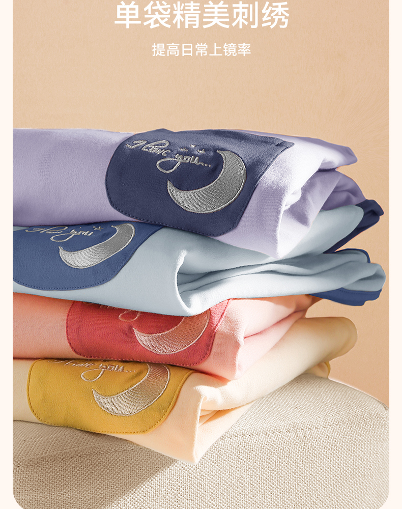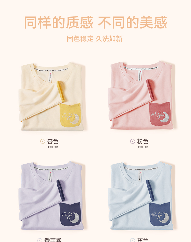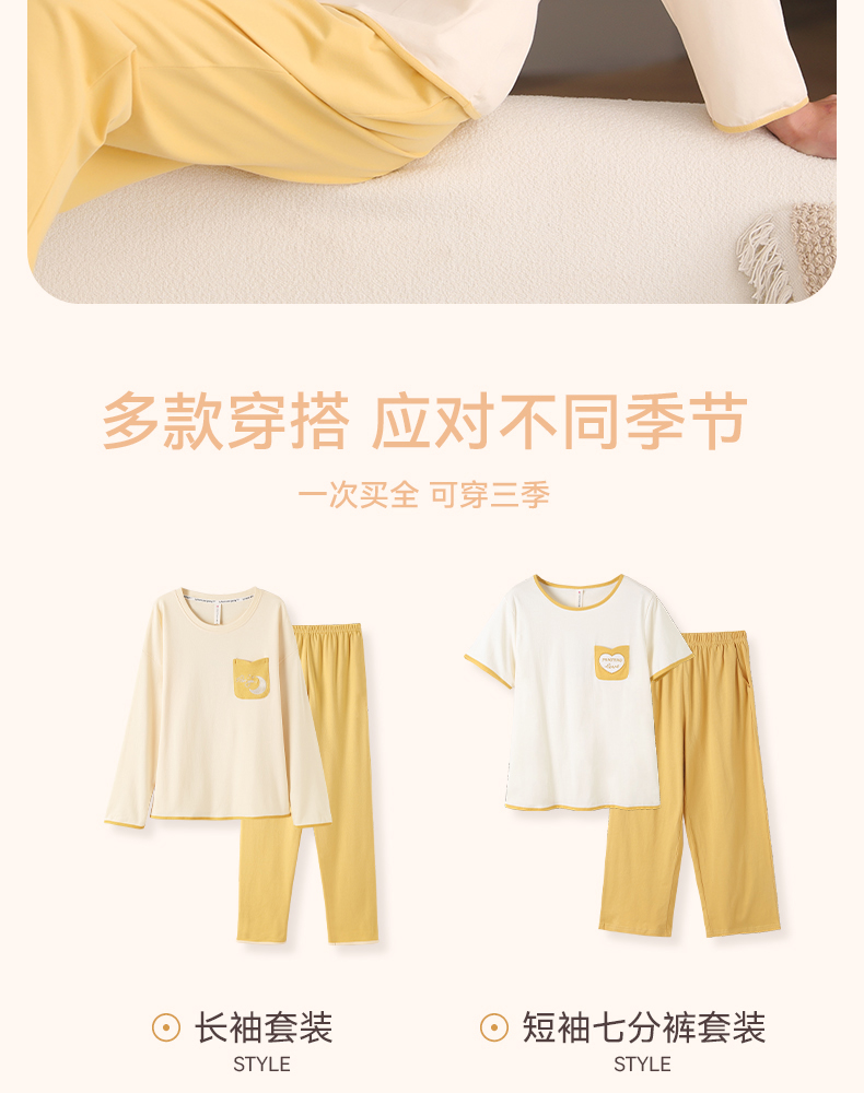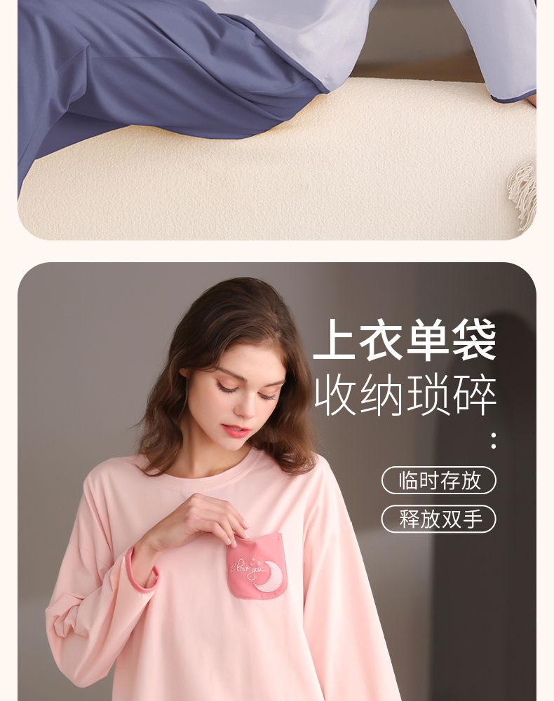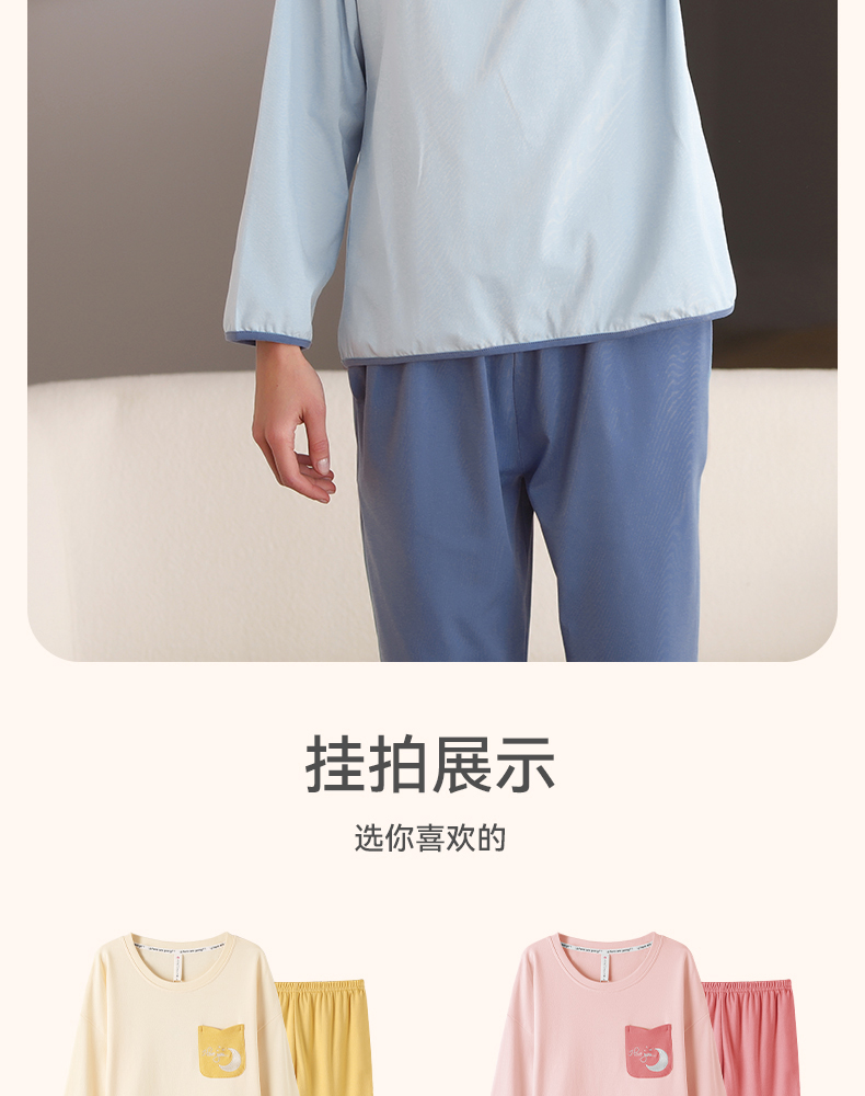 芬腾春秋季长袖睡衣女款纯棉套头宽松大码女士春季全棉家居服套装