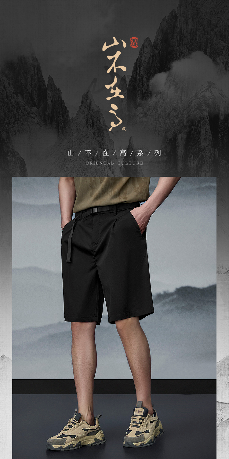 HLA/海澜之家山不在高系列休闲中裤25春夏新织唛梭织透气短裤男