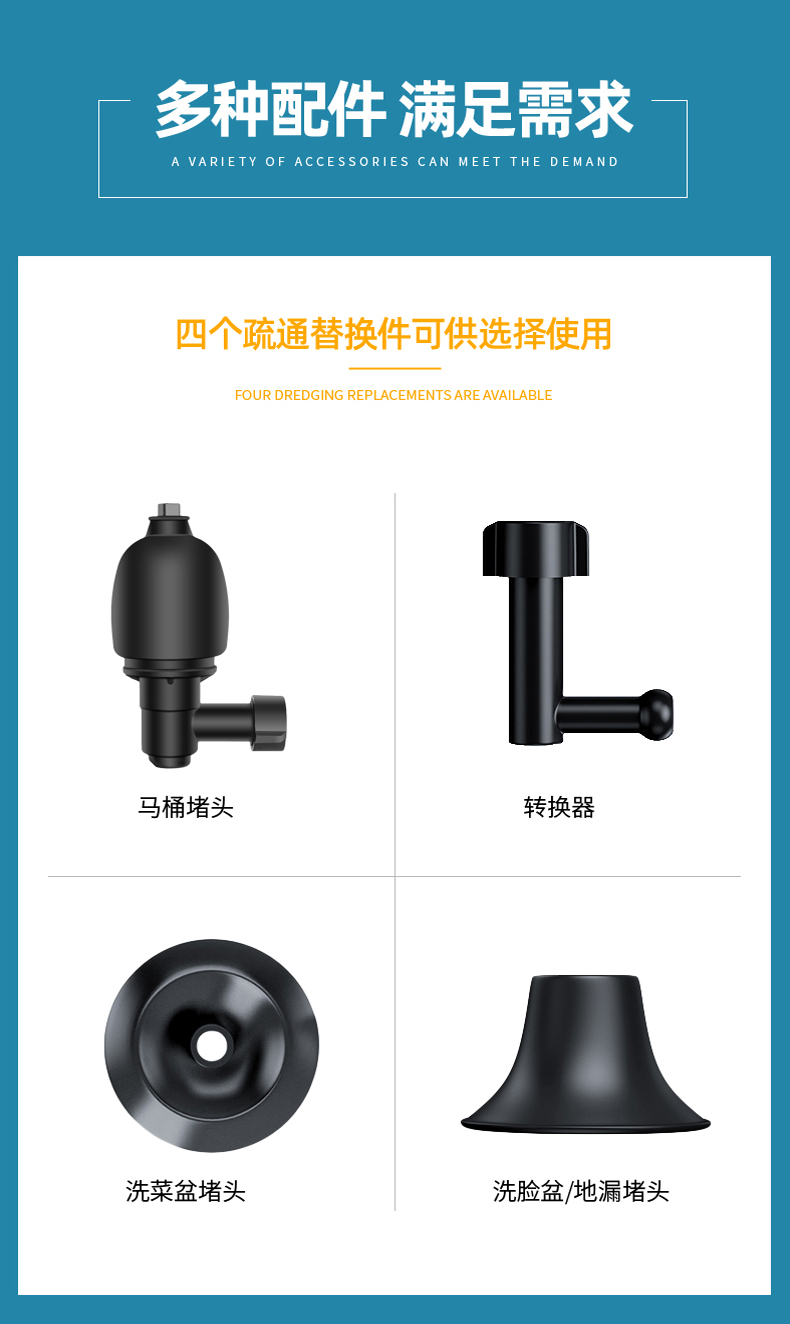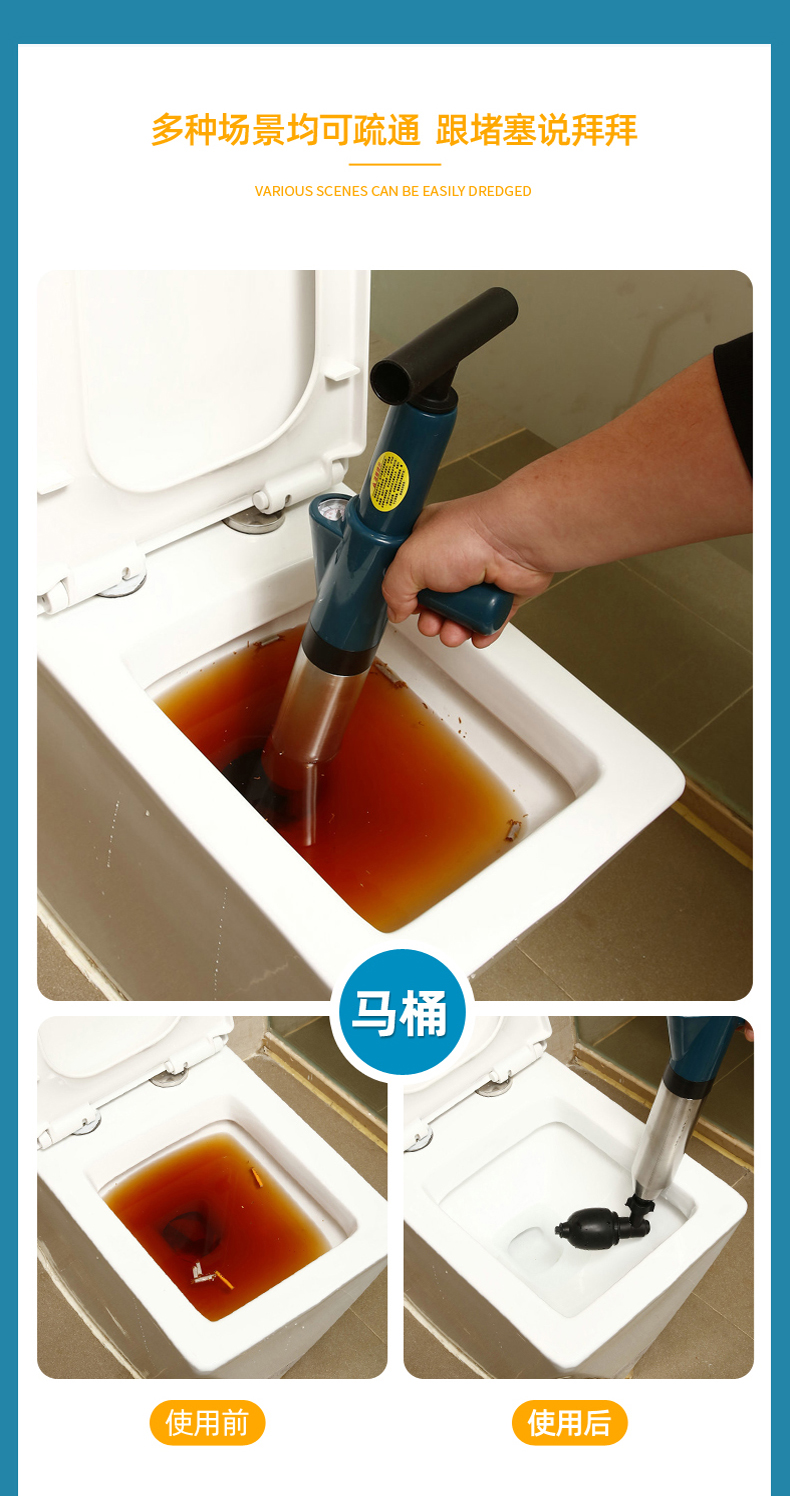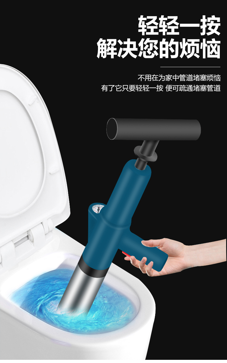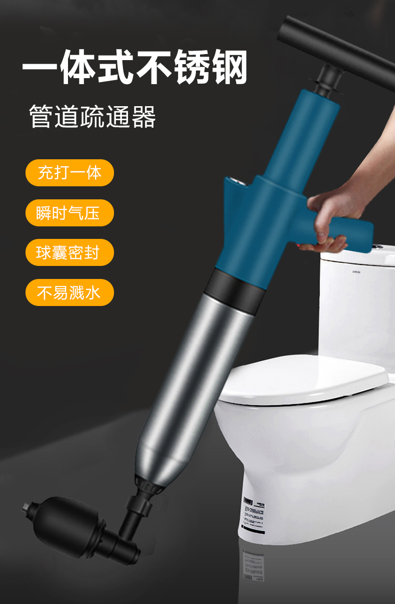 Edo管道疏通器下水道疏通器疏通管道神器不锈钢马桶疏通器一炮通