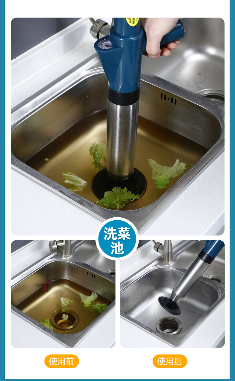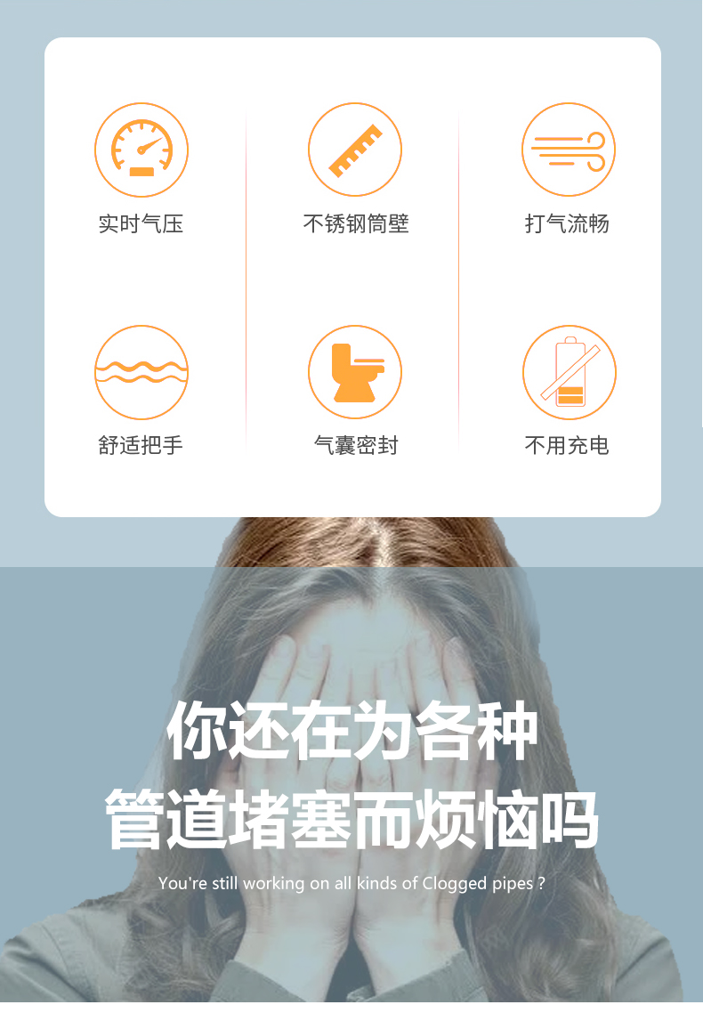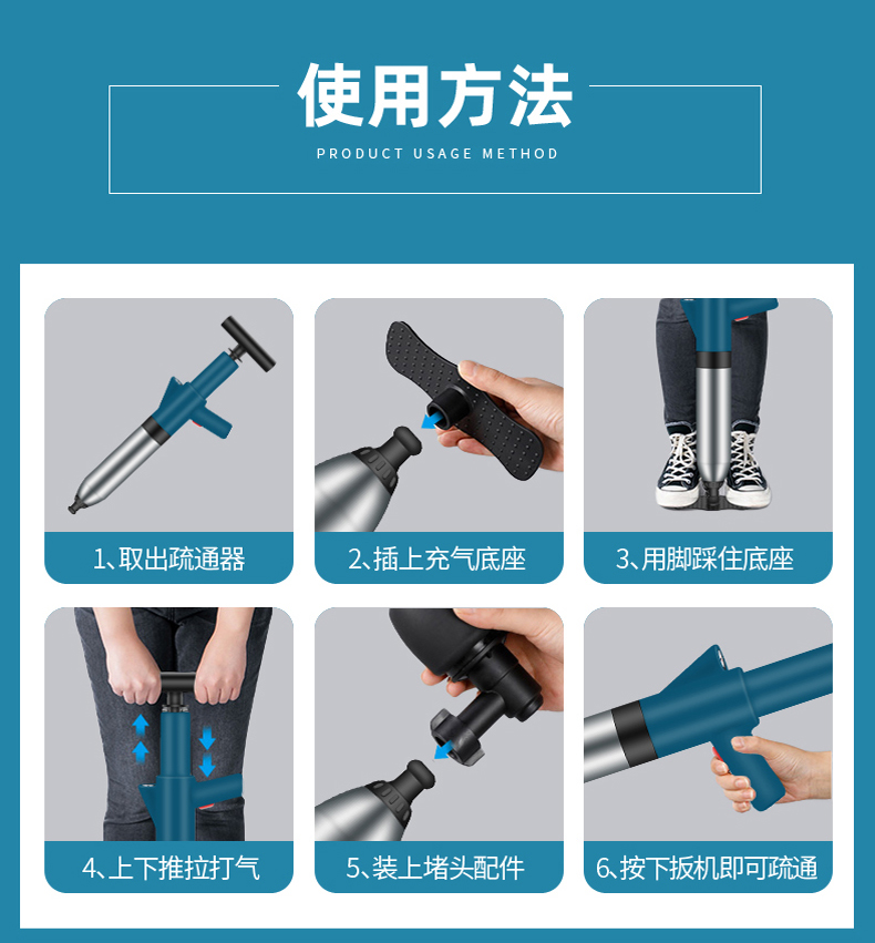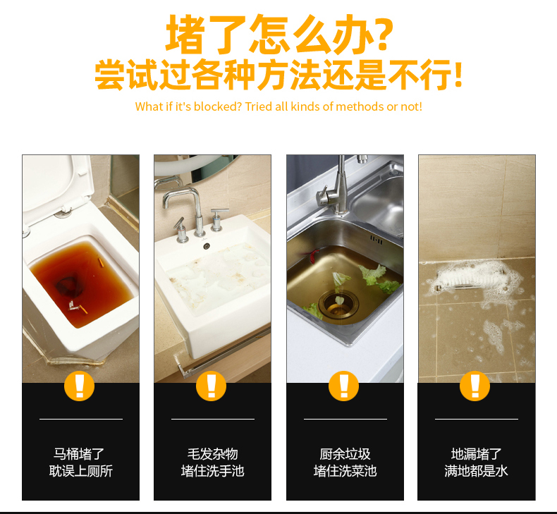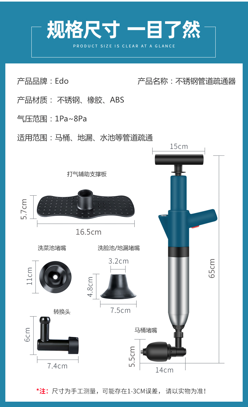 Edo管道疏通器下水道疏通器疏通管道神器不锈钢马桶疏通器一炮通