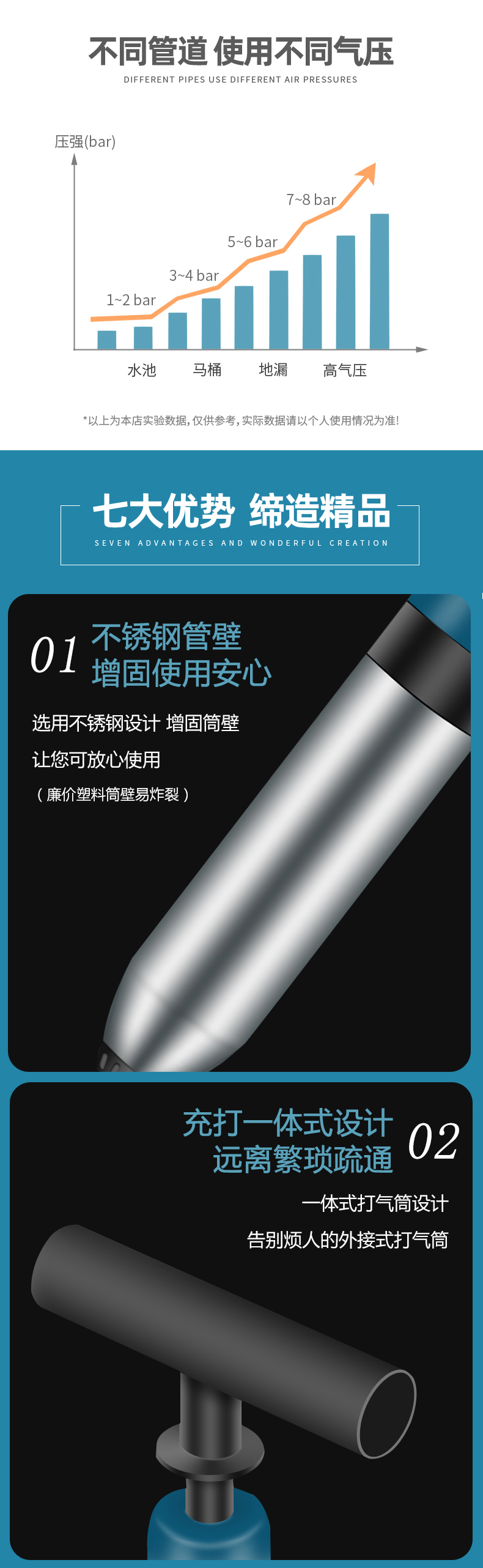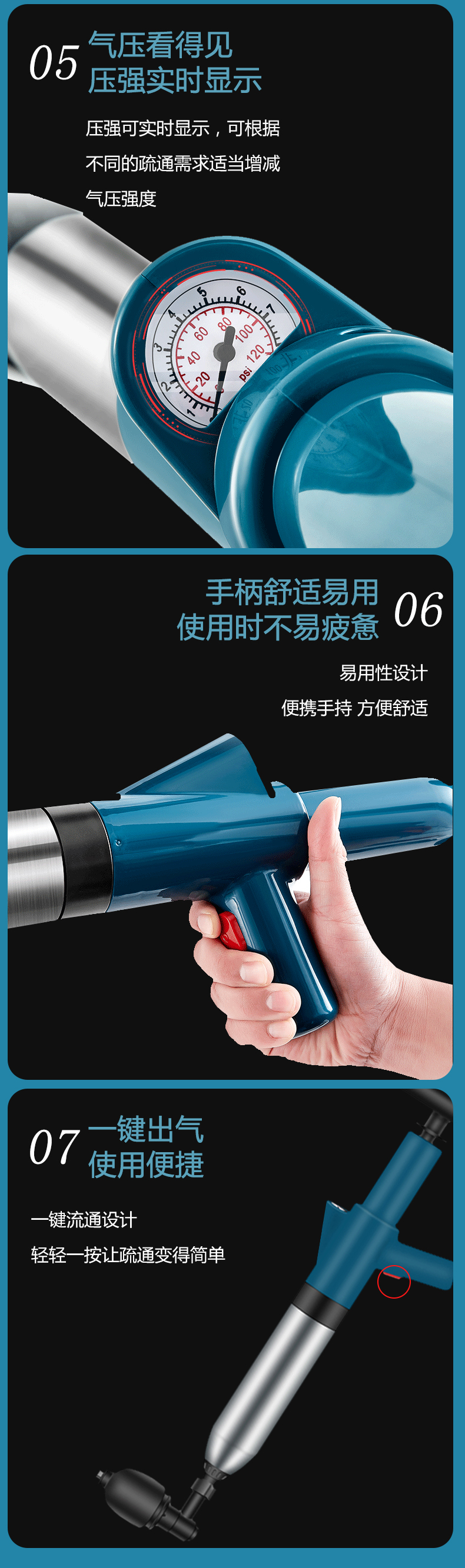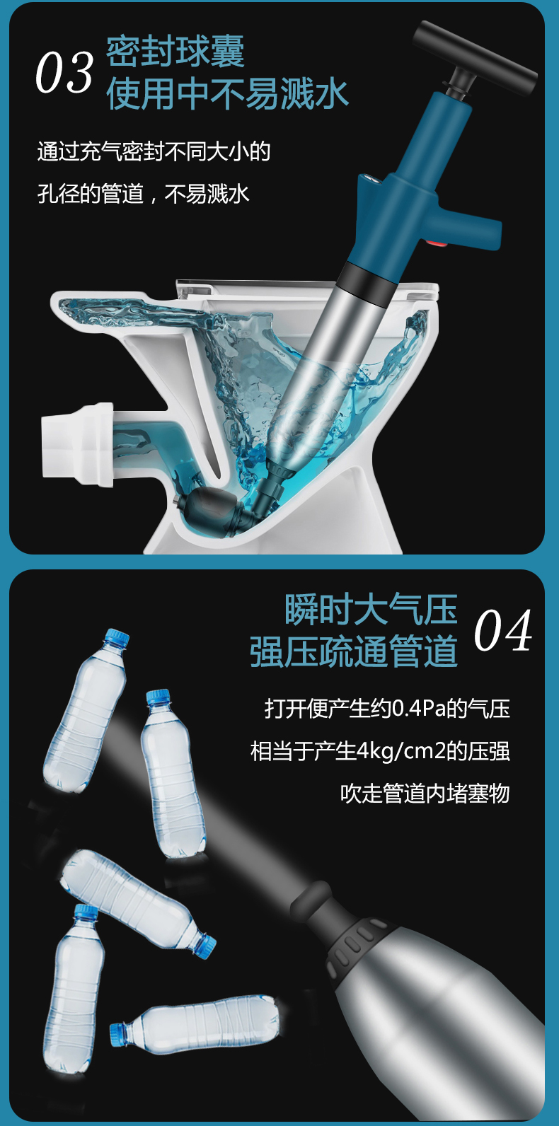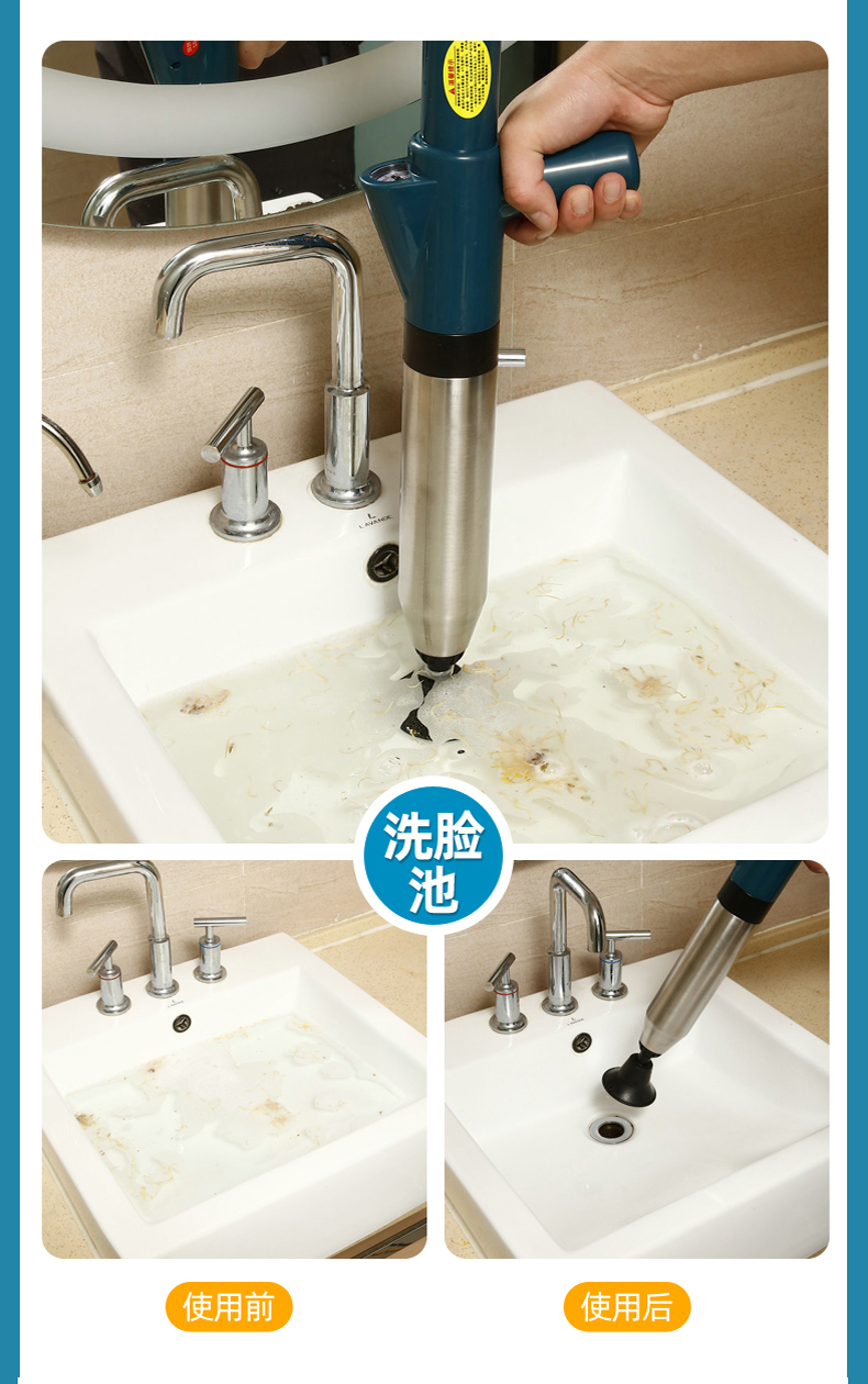 Edo管道疏通器下水道疏通器疏通管道神器不锈钢马桶疏通器一炮通