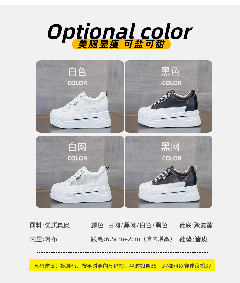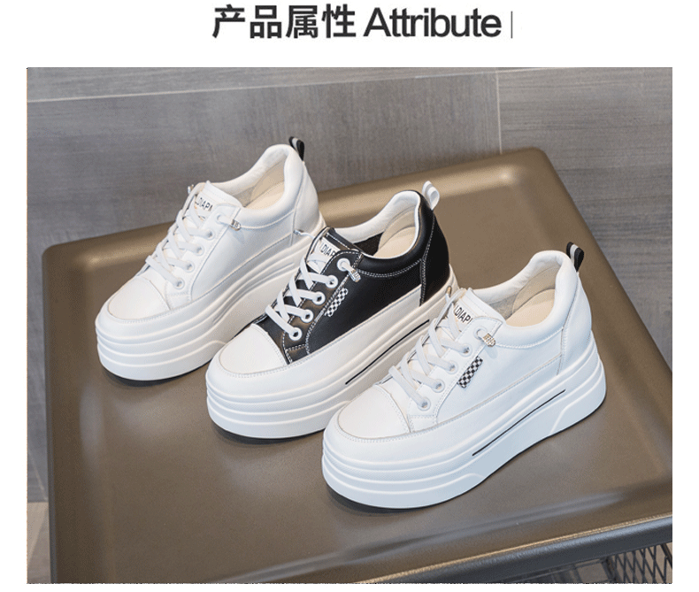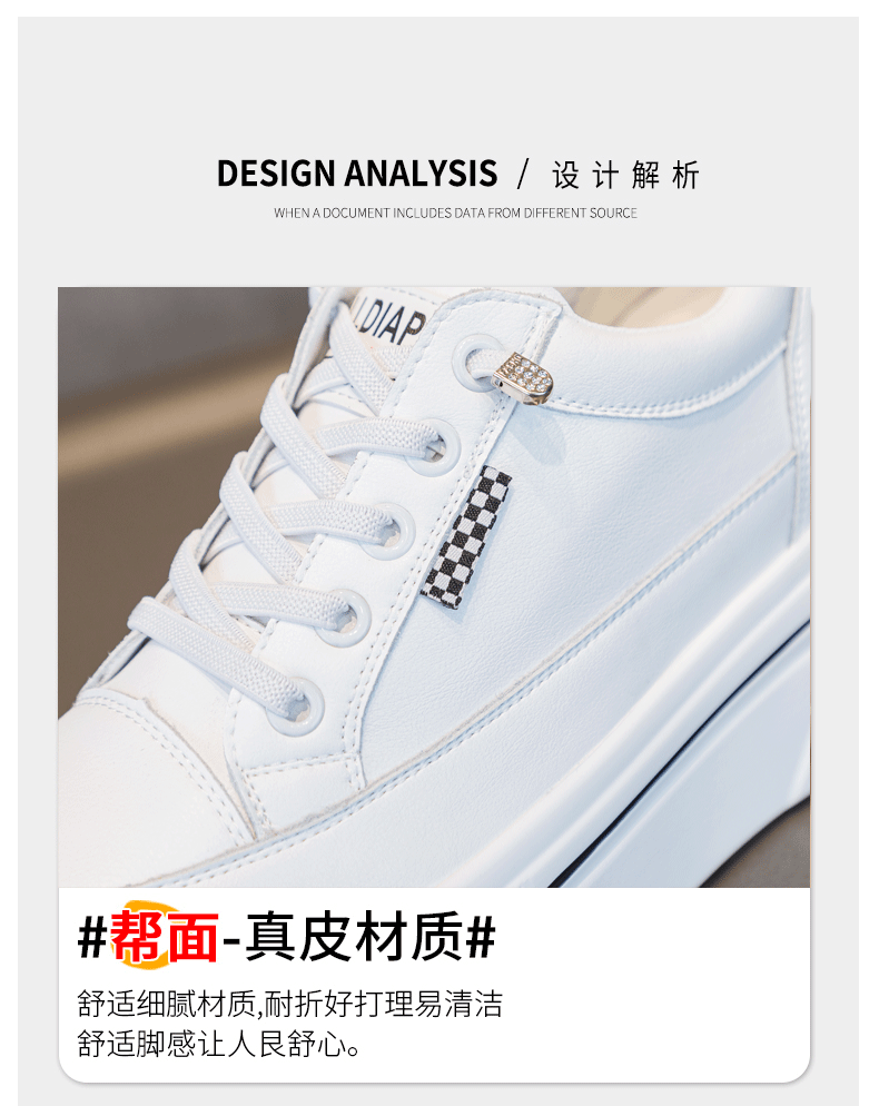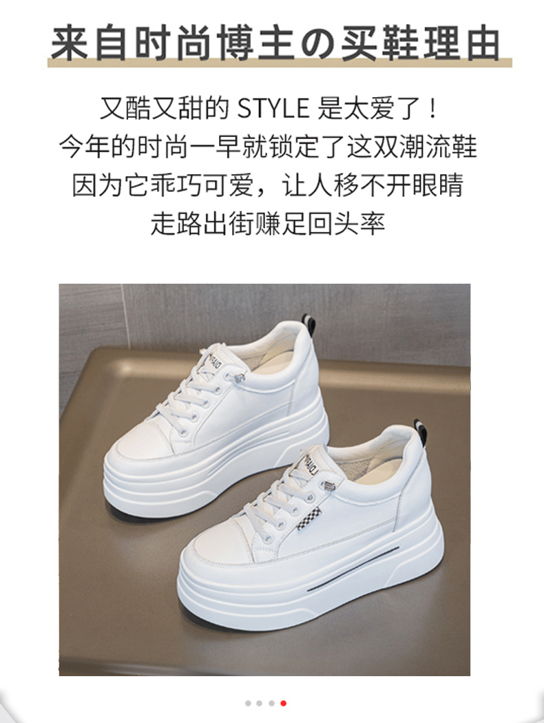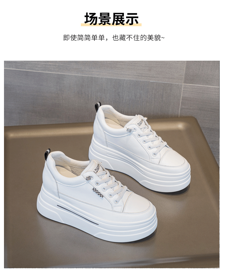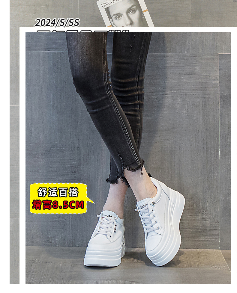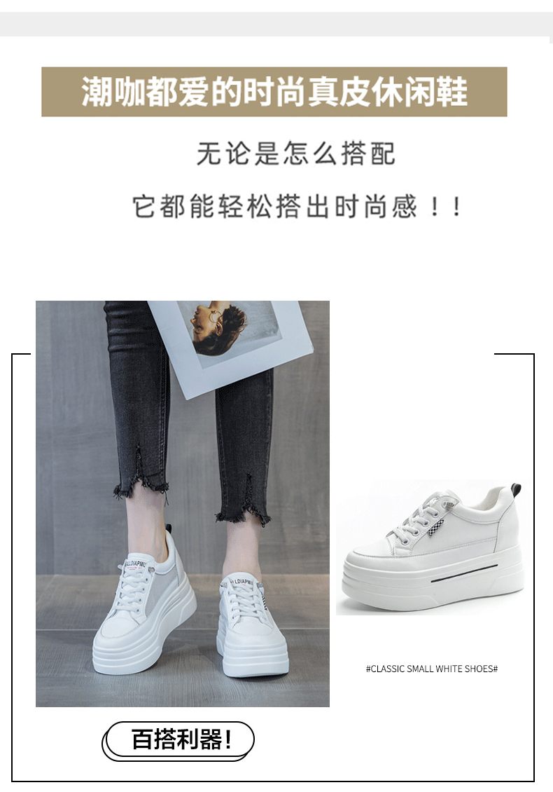 8公分内增高真皮小白鞋女爆款松糕厚底休闲板鞋小码百搭坡跟单鞋