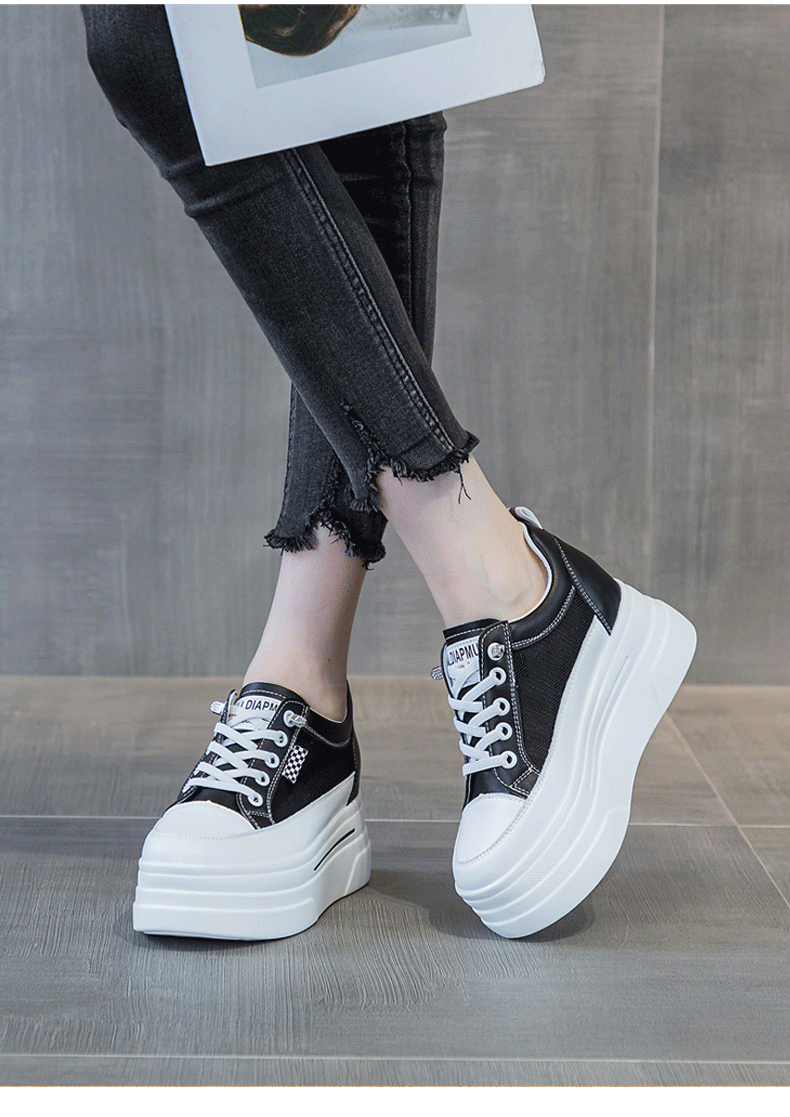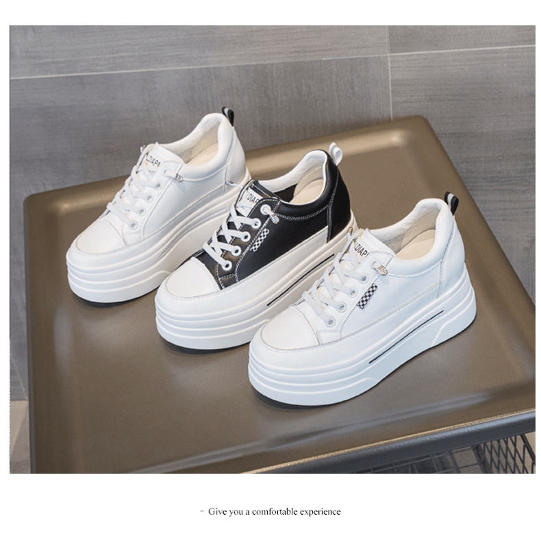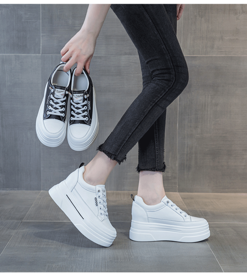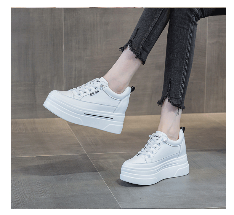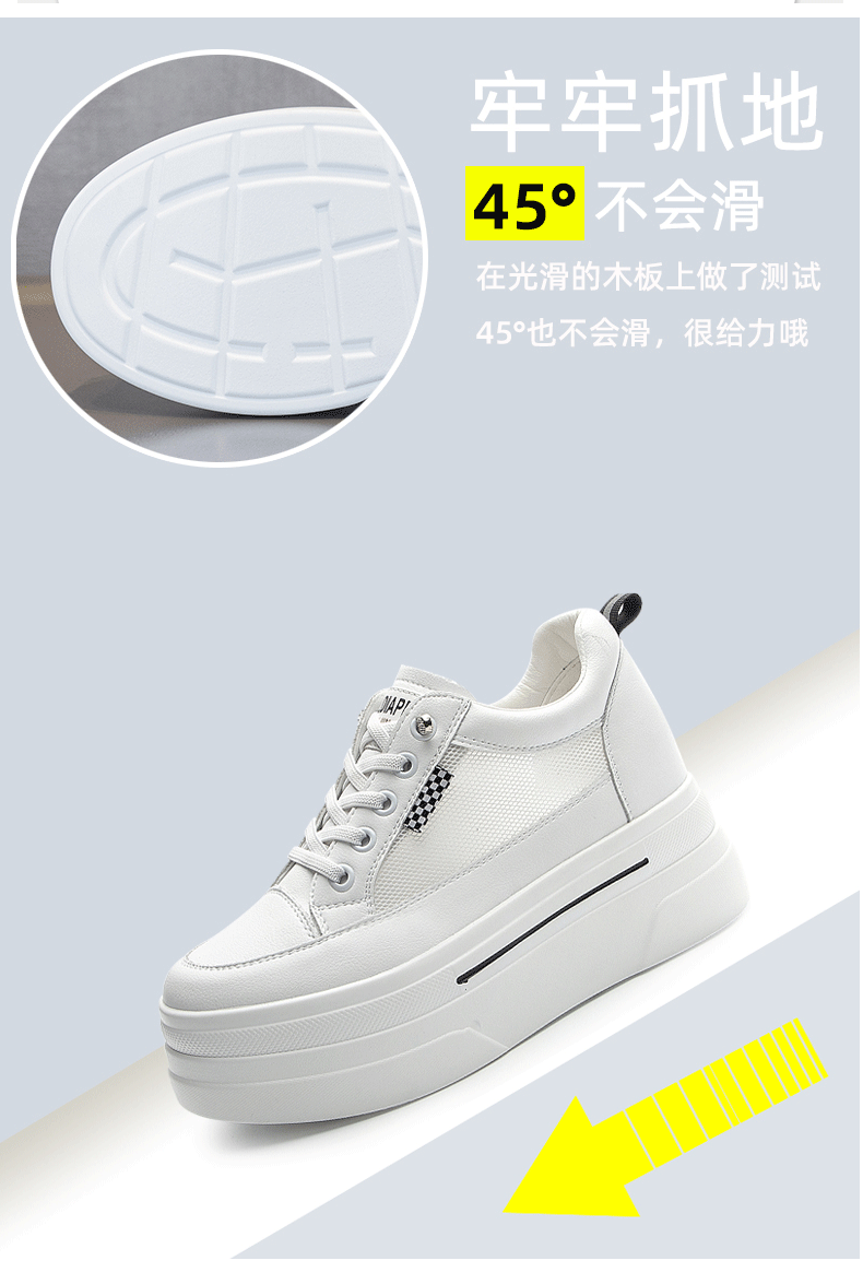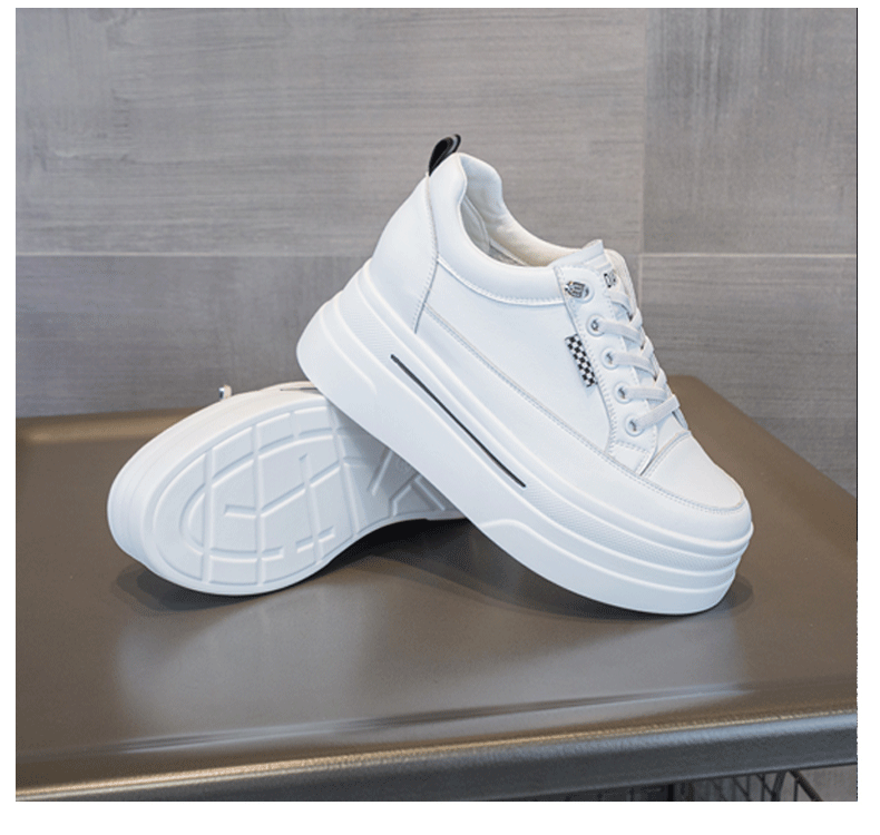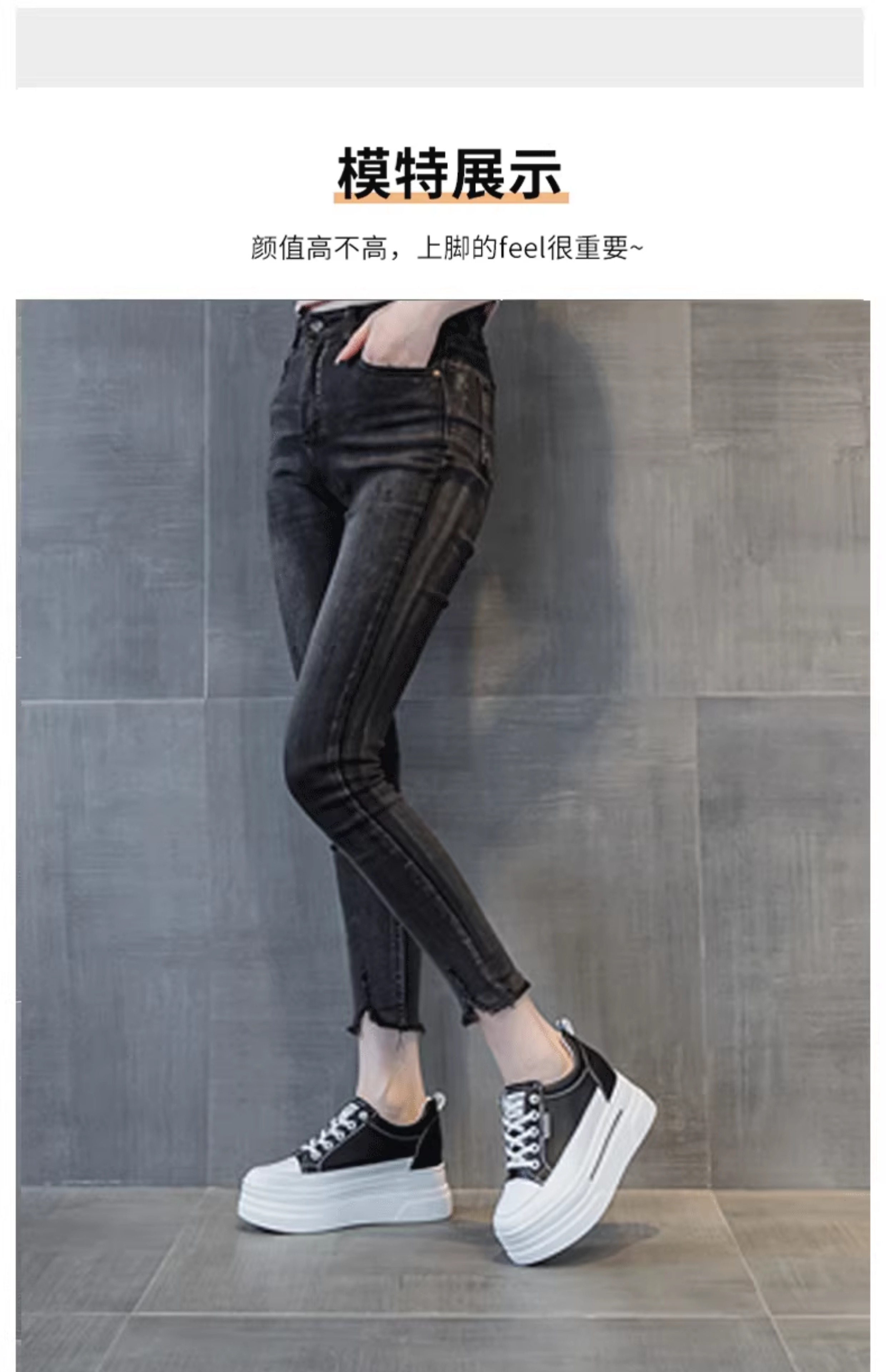 8公分内增高真皮小白鞋女爆款松糕厚底休闲板鞋小码百搭坡跟单鞋
