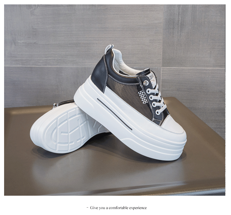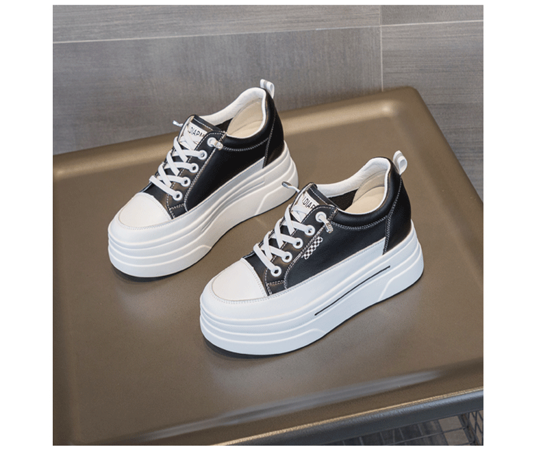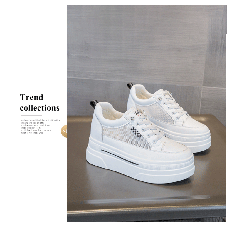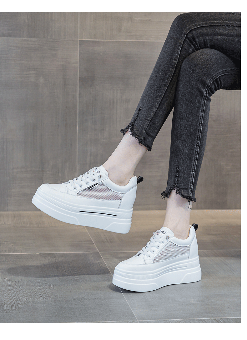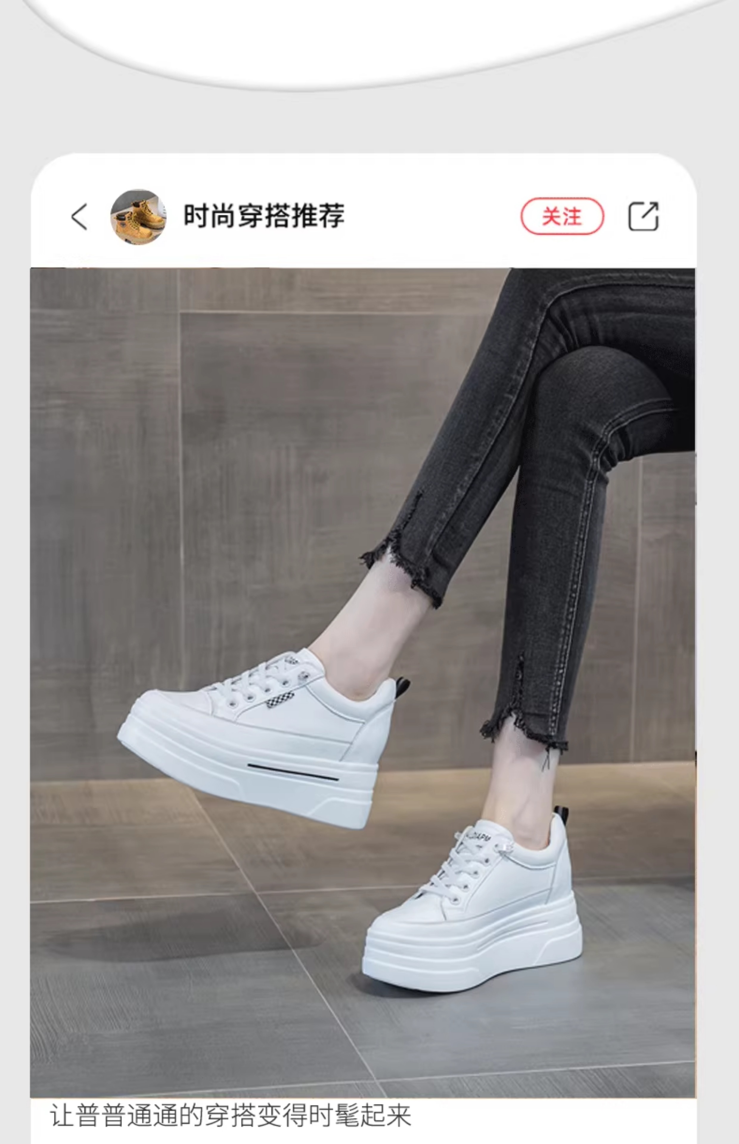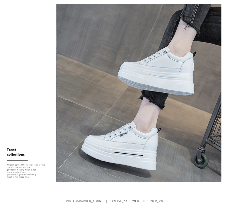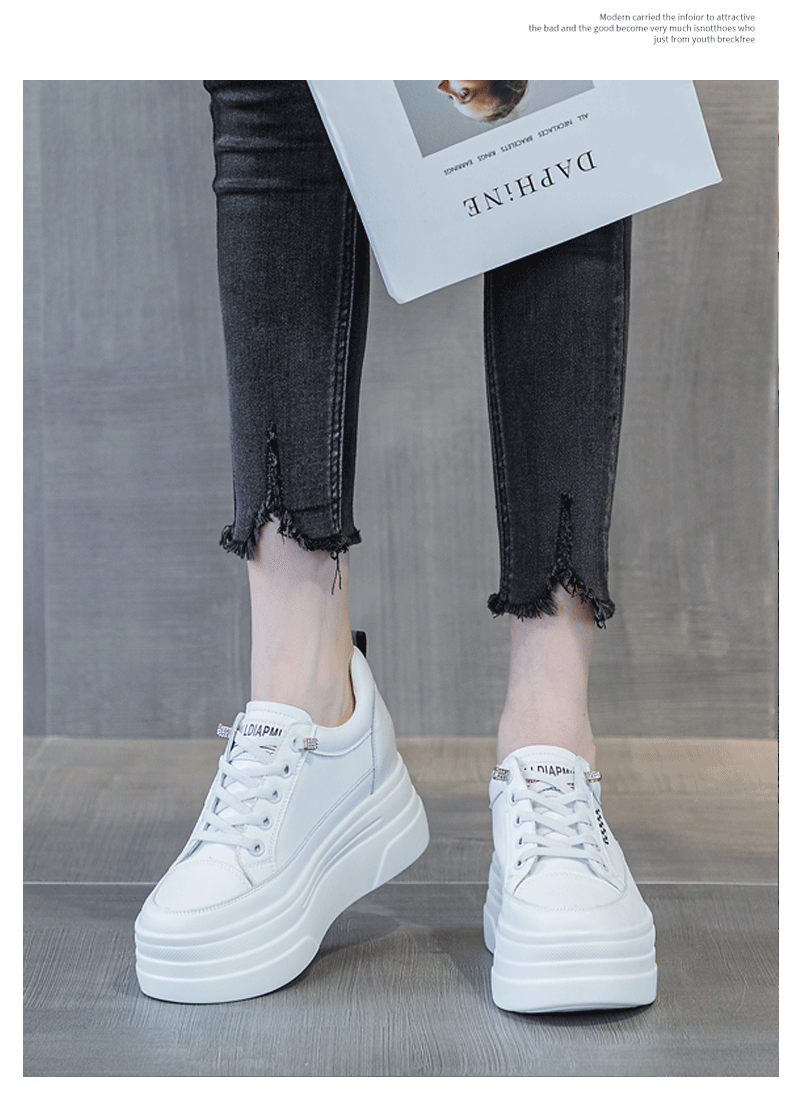 8公分内增高真皮小白鞋女爆款松糕厚底休闲板鞋小码百搭坡跟单鞋