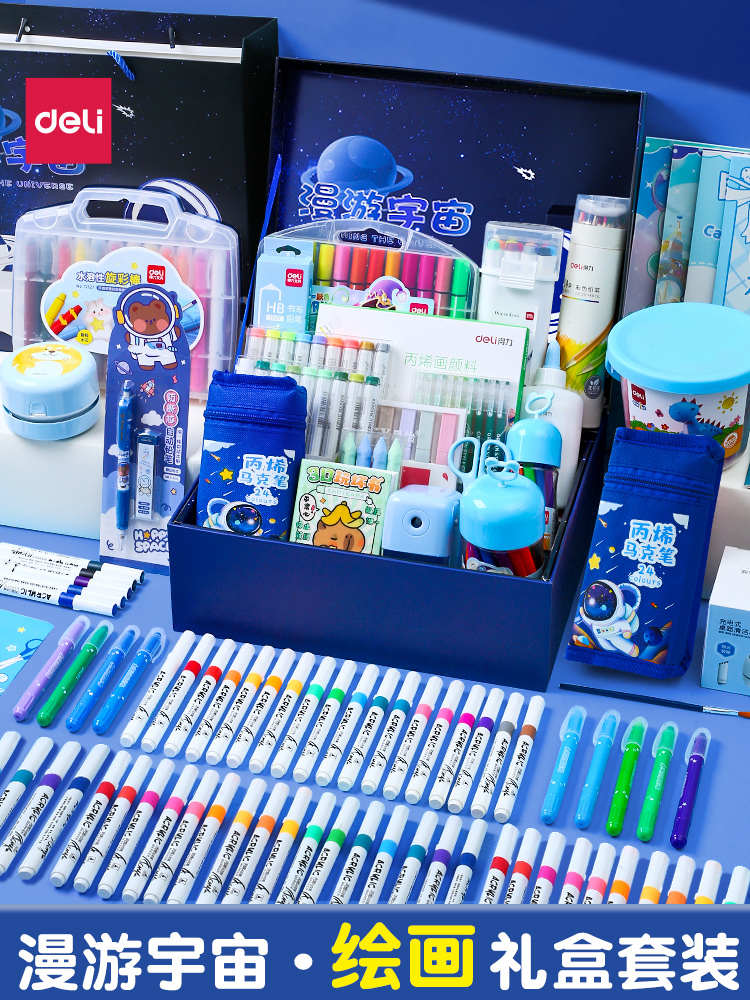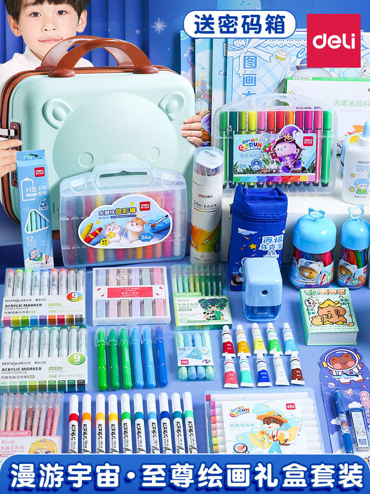 得力绘画礼盒开学大礼包儿童文具套装马克笔美术小学生幼儿园用一