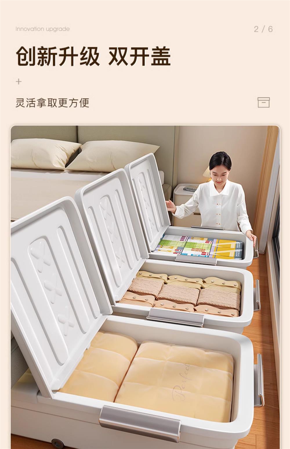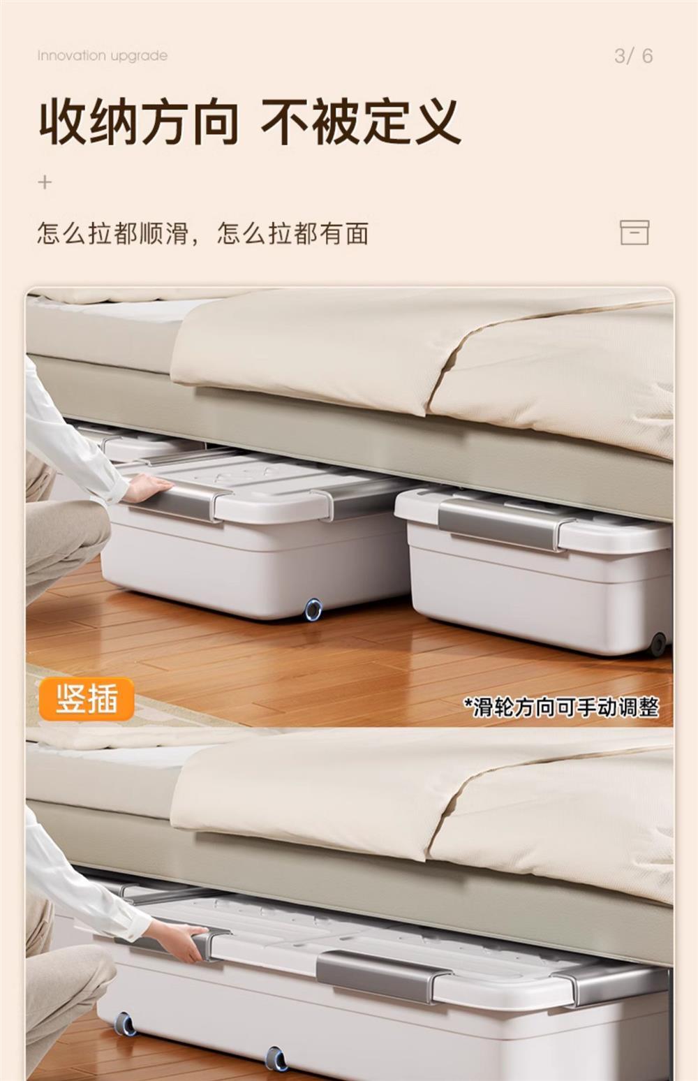 寻淮塑料床底收纳箱扁平带滑轮放床下大容量衣服物整理箱周转箱子