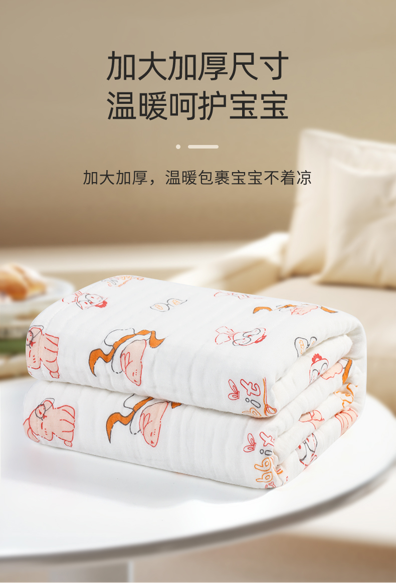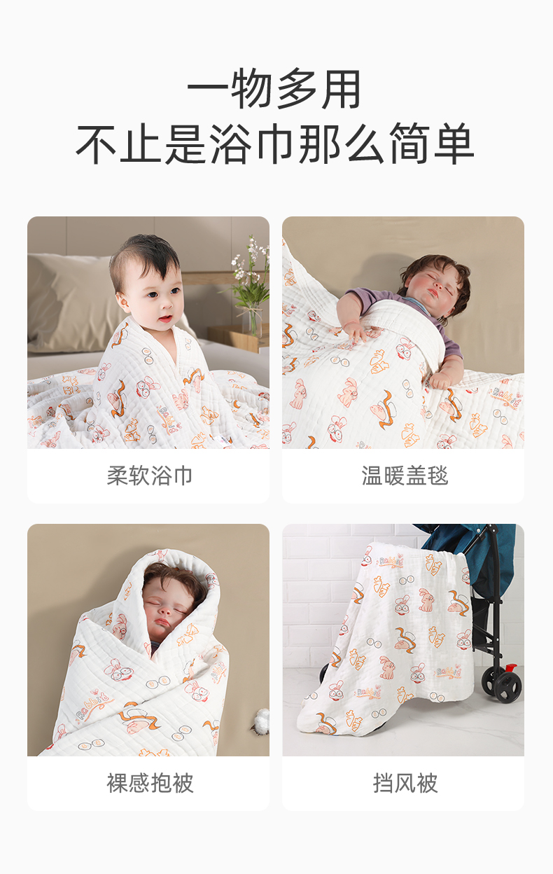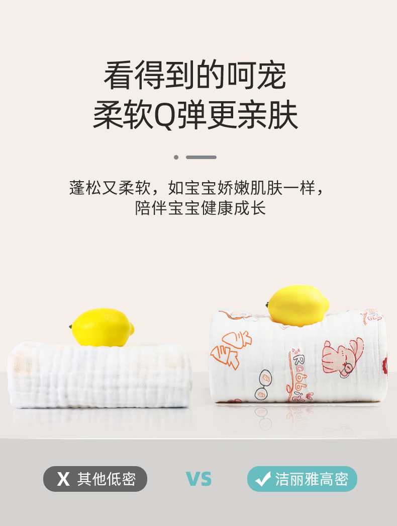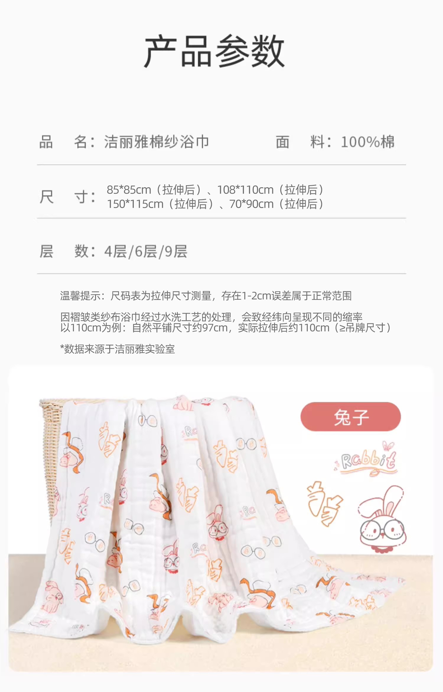 洁丽雅婴儿纱布浴巾秋冬纯棉超柔吸水大毛巾洗澡宝宝新生儿童用品