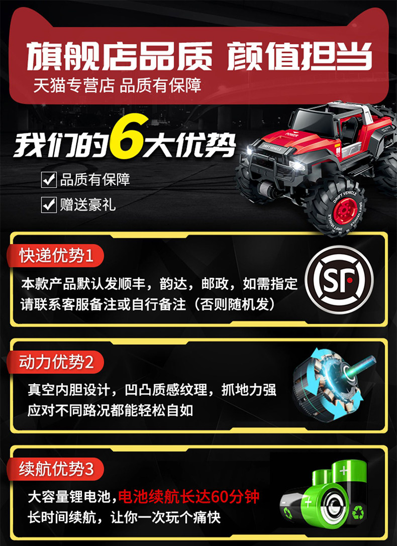 儿童遥控超大越野车四驱攀爬耐摔电动小汽车漂移高速赛车男孩玩具