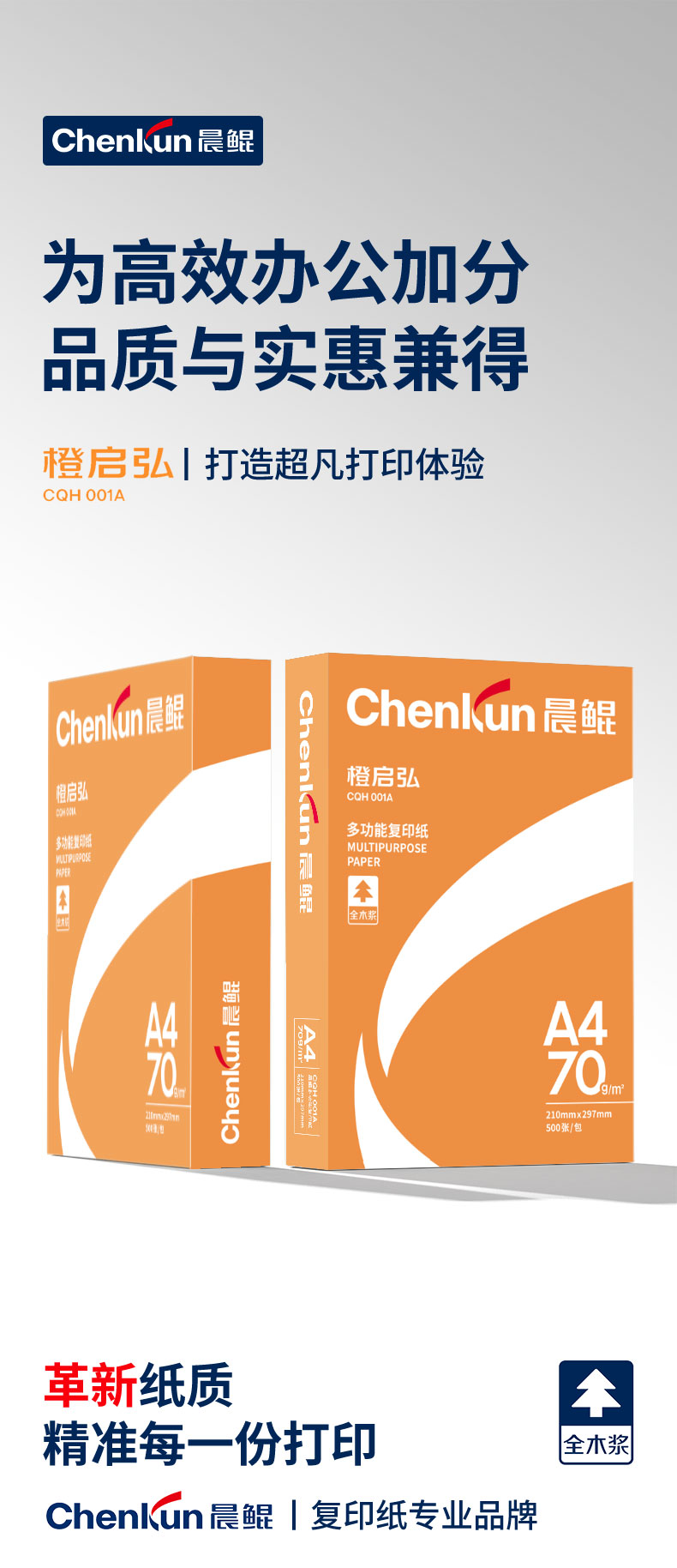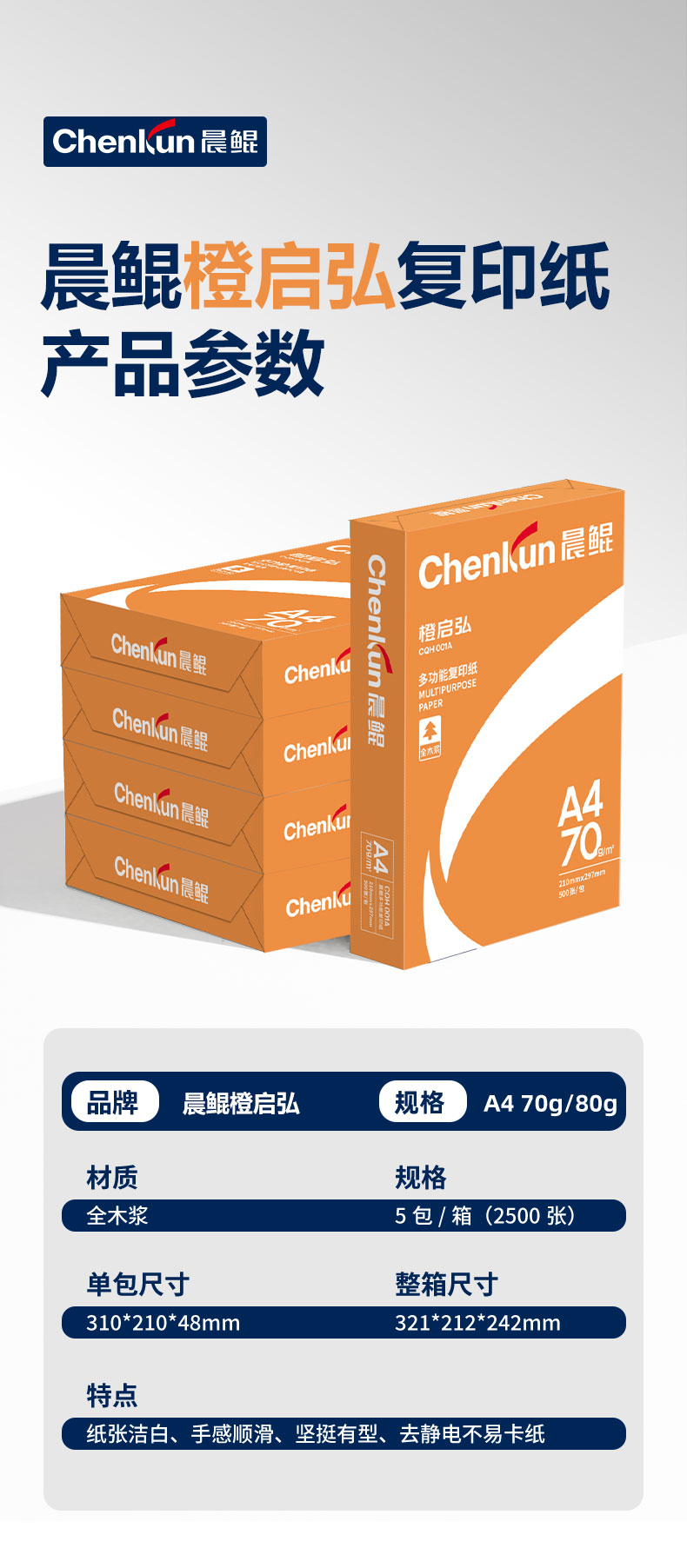 晨鲲A4纸打印复印纸70g单包500张一包办公用品a4打印白纸草稿纸免邮学生用A4打印纸整箱5包装一箱a4纸张批发
