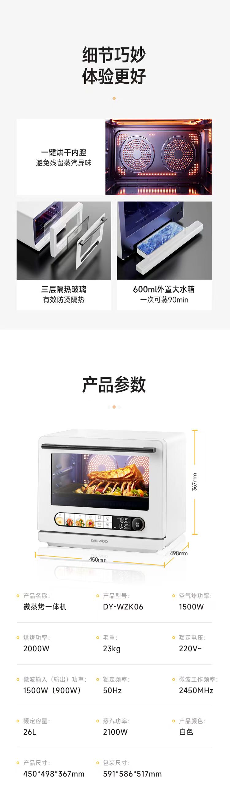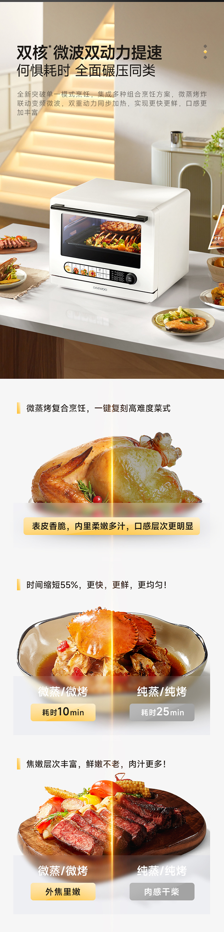 政府补贴大宇双风机微蒸烤炸炖一体机微波炉水波炉台式家用电烤箱
