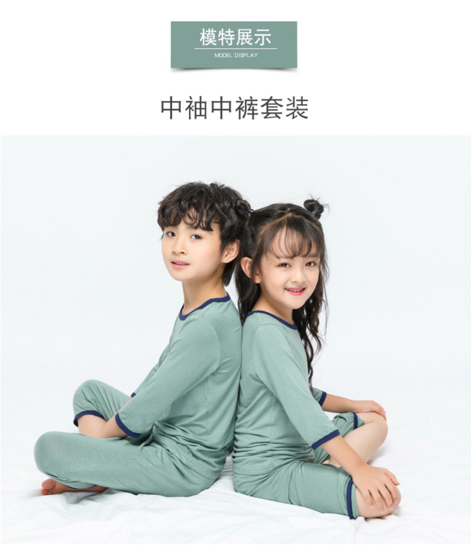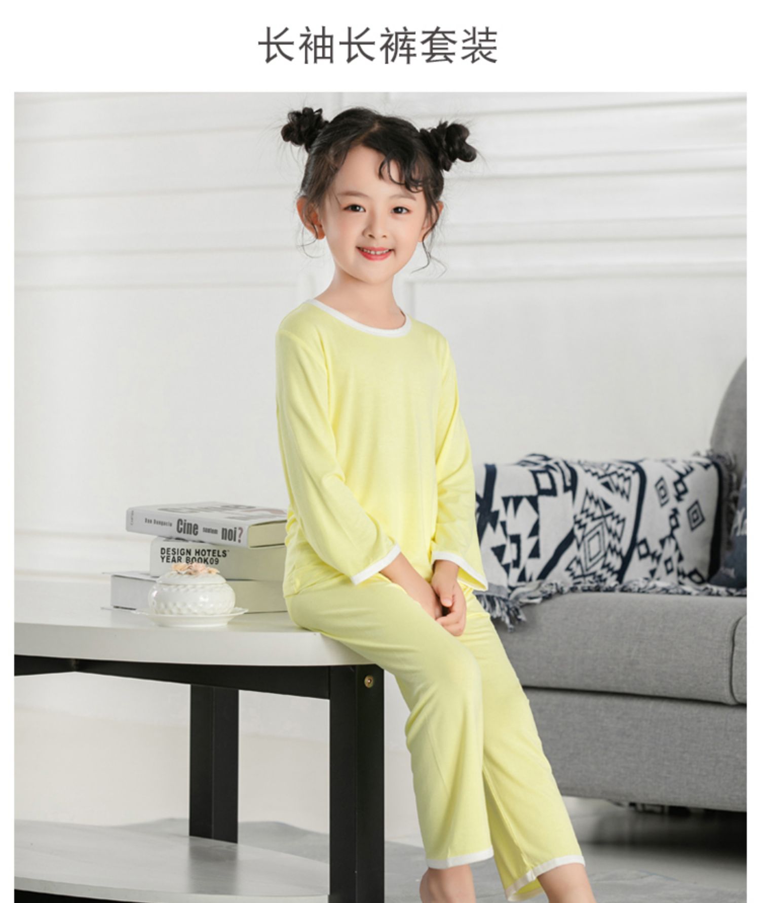 儿童睡衣夏季薄款冰丝莫代尔大童男童棉绸男孩长袖宝宝空调家居服